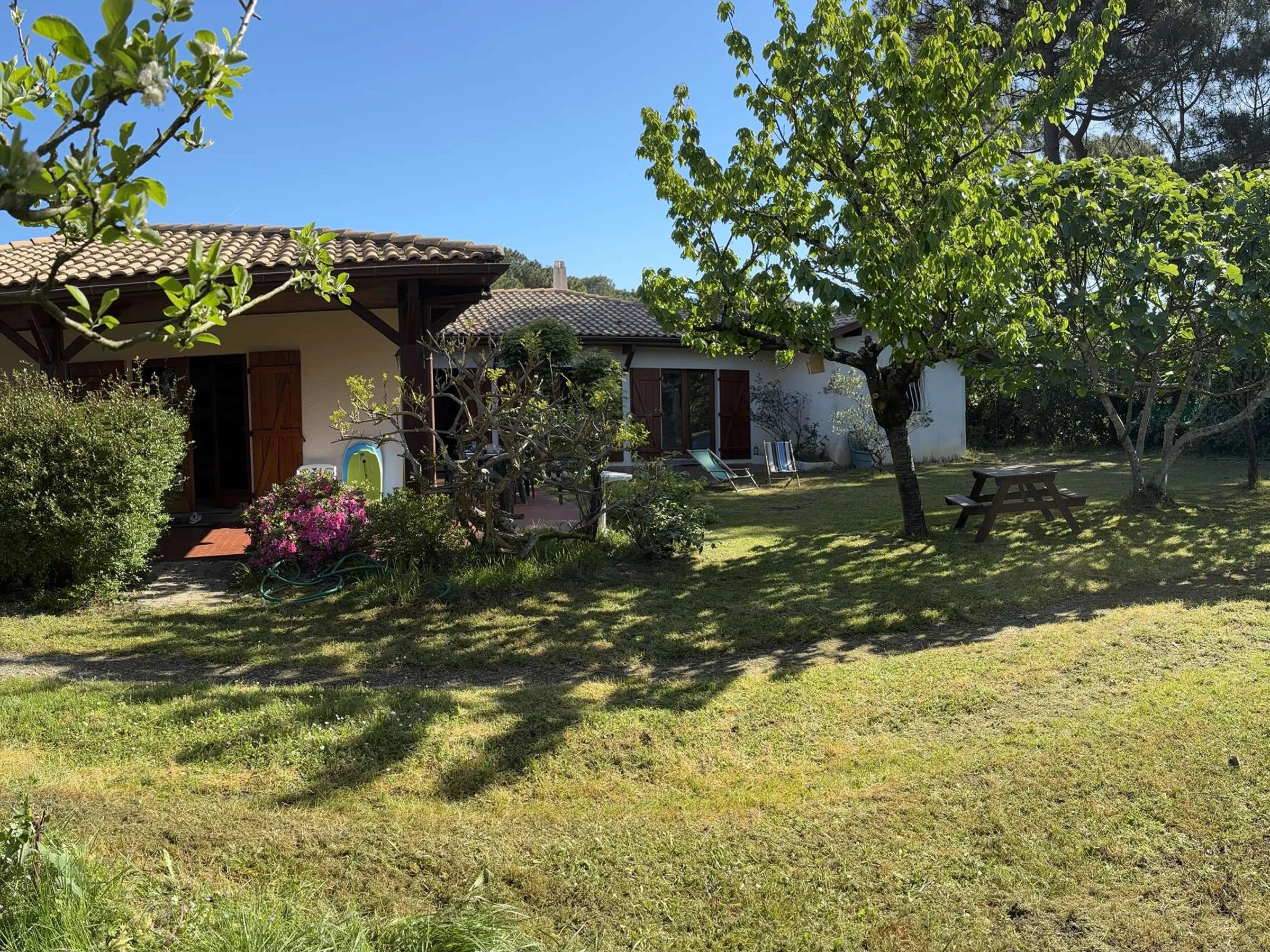 Implantée sur un terrain arboré de 1300 m², elle dispose d’un grand jardin, d’une belle terrasse couverte avec mobilier d’extérieur et barbecue (WEBER), ainsi qu’un espace de stationnement pouvant accueillir deux véhicules et un abri pour vélos.
