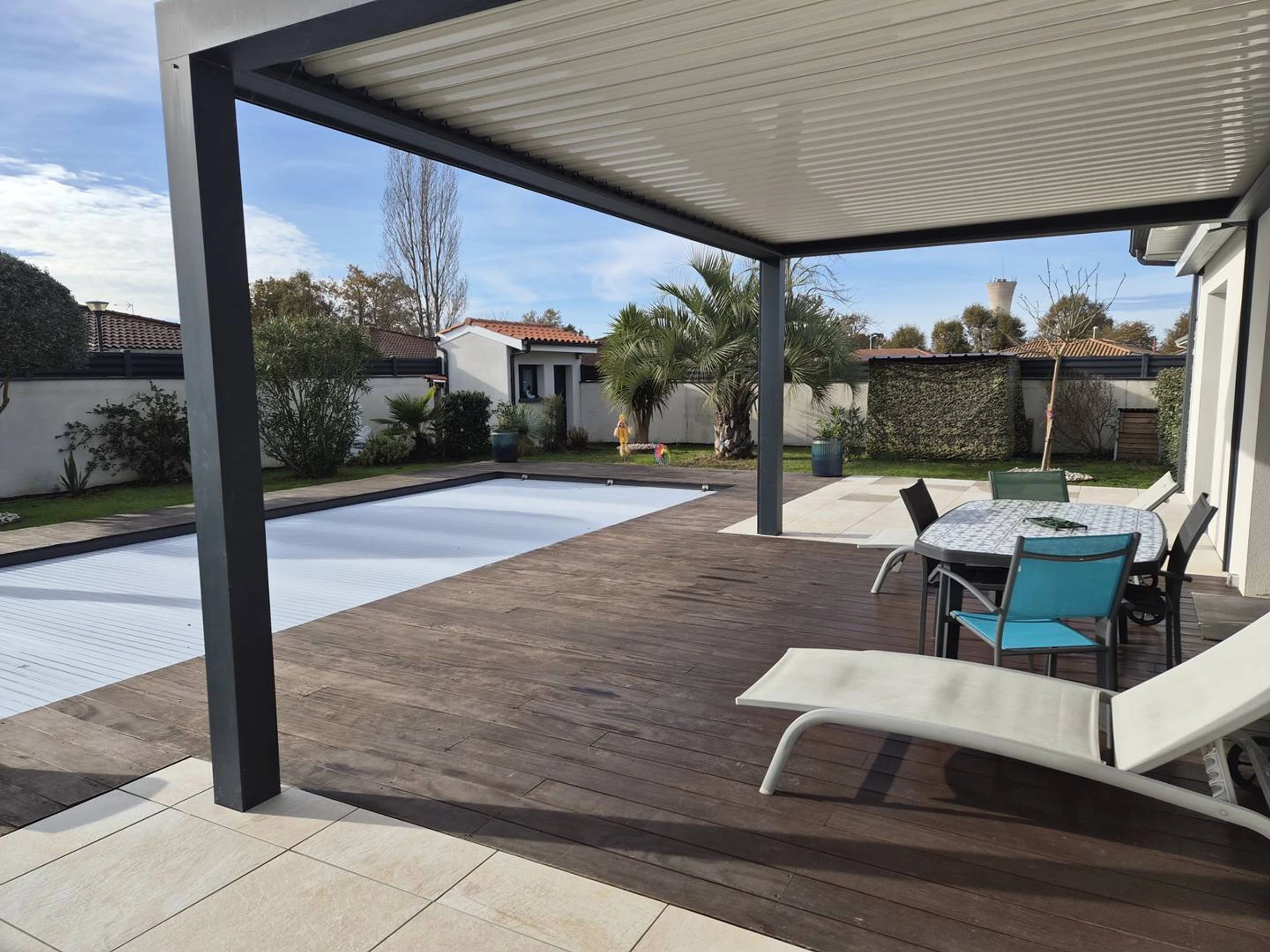 Située à Biscarrosse ville, à 800m des commerces, à 8 km de l’océan et 4 km du lac, villa de 120m2 pour 6 personnes avec climatisation réversible, sur un terrain privatif et clôturé de 300m2, piscine de 9x4m, sécurisée par un volet de sécurité. Terrasse exposée sud avec mobilier de jardin et plancha. Accès internet. Animaux interdits. Possibilité de se garer à l'intérieur du terrain.
