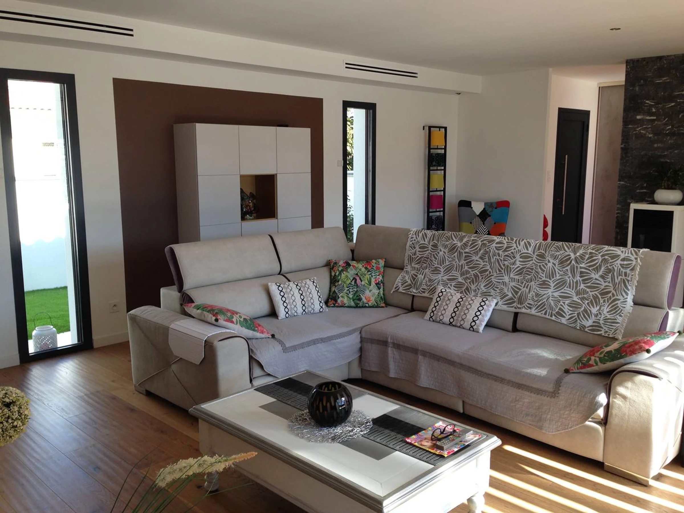 SALON-SEJOUR : table, chaises, canapés, buffet, TV