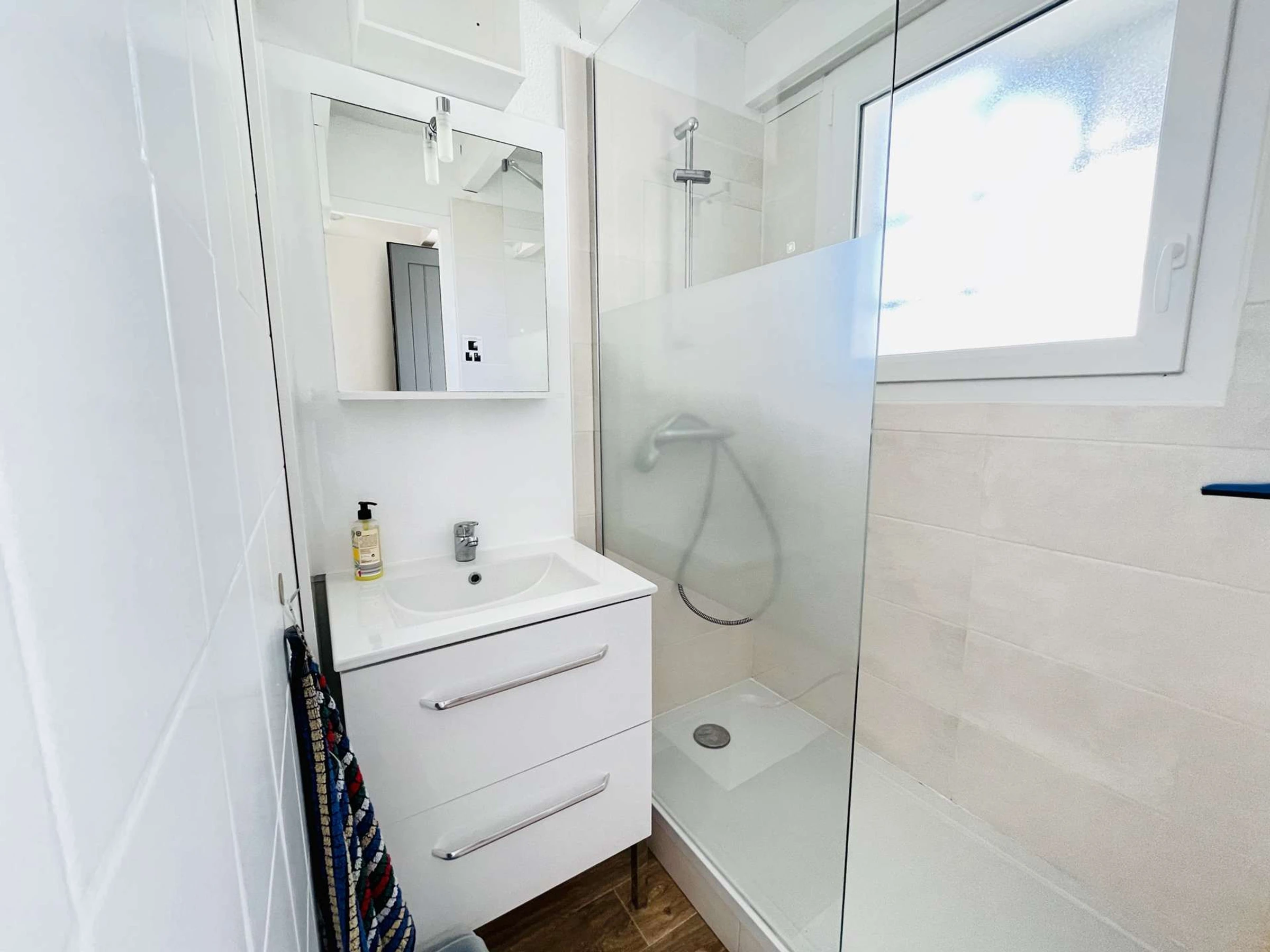 Dès l’entrée, vous découvrirez un intérieur lumineux et soigneusement aménagé. Le rez-de-chaussée dispose d’une salle de bain entièrement rénovée avec fenêtre, de WC séparés, ainsi que d’une cuisine moderne et parfaitement équipée : grand frigidaire/congélateur, lave-vaisselle, lave-linge, plaques à induction, micro-ondes grill, cafetière, bouilloire, plancha, crêpière et grille-pain. Tout a été pensé pour vous offrir un séjour sans contraintes.
