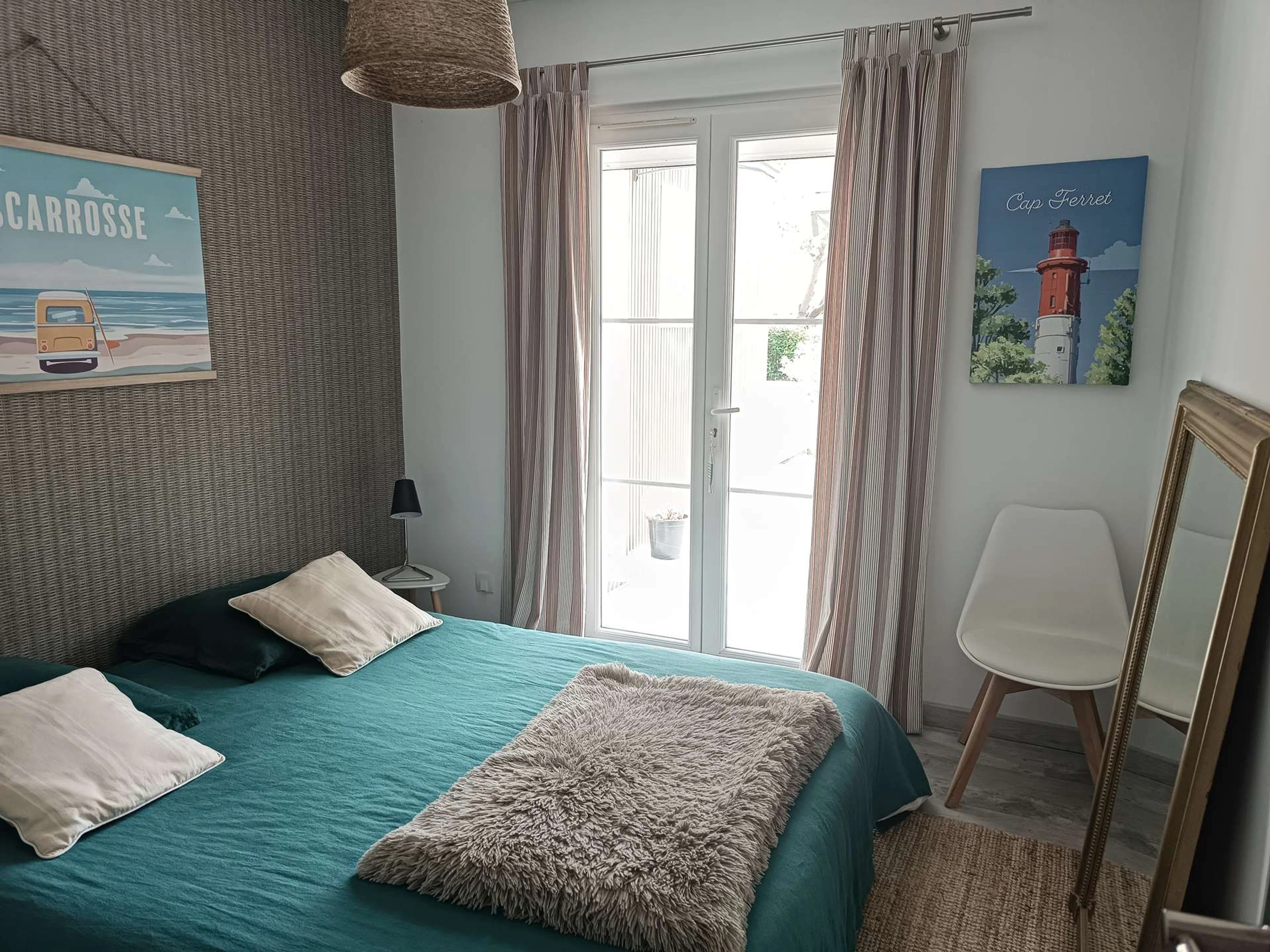CH3: 1 lit 160 ou possibilité de séparer en deux couchages de 80, et grand placard de rangement.