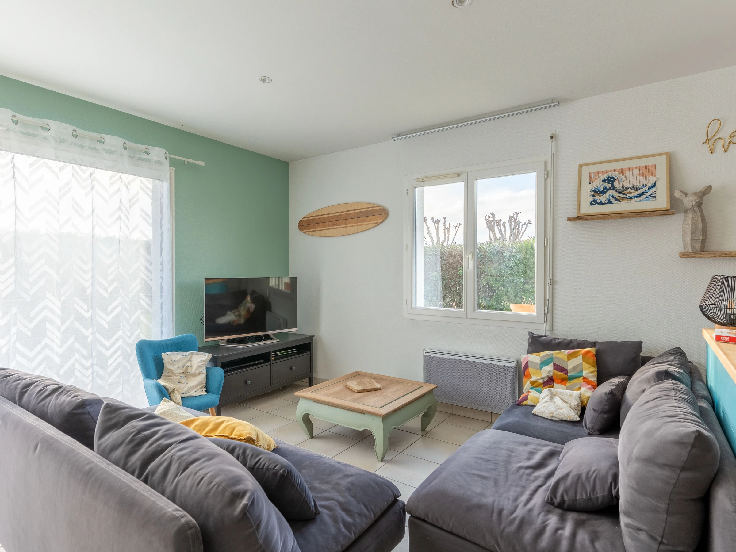 La maison s’ouvre sur un séjour lumineux et convivial, comprenant un salon confortable avec TV et WIFI, ainsi qu’une cuisine semi-ouverte entièrement équipée (four, plaques électriques, lave-vaisselle, micro-ondes, cafetière à capsules, grille-pain…). Un espace idéal pour partager de bons moments après une journée de plage ou de balades.