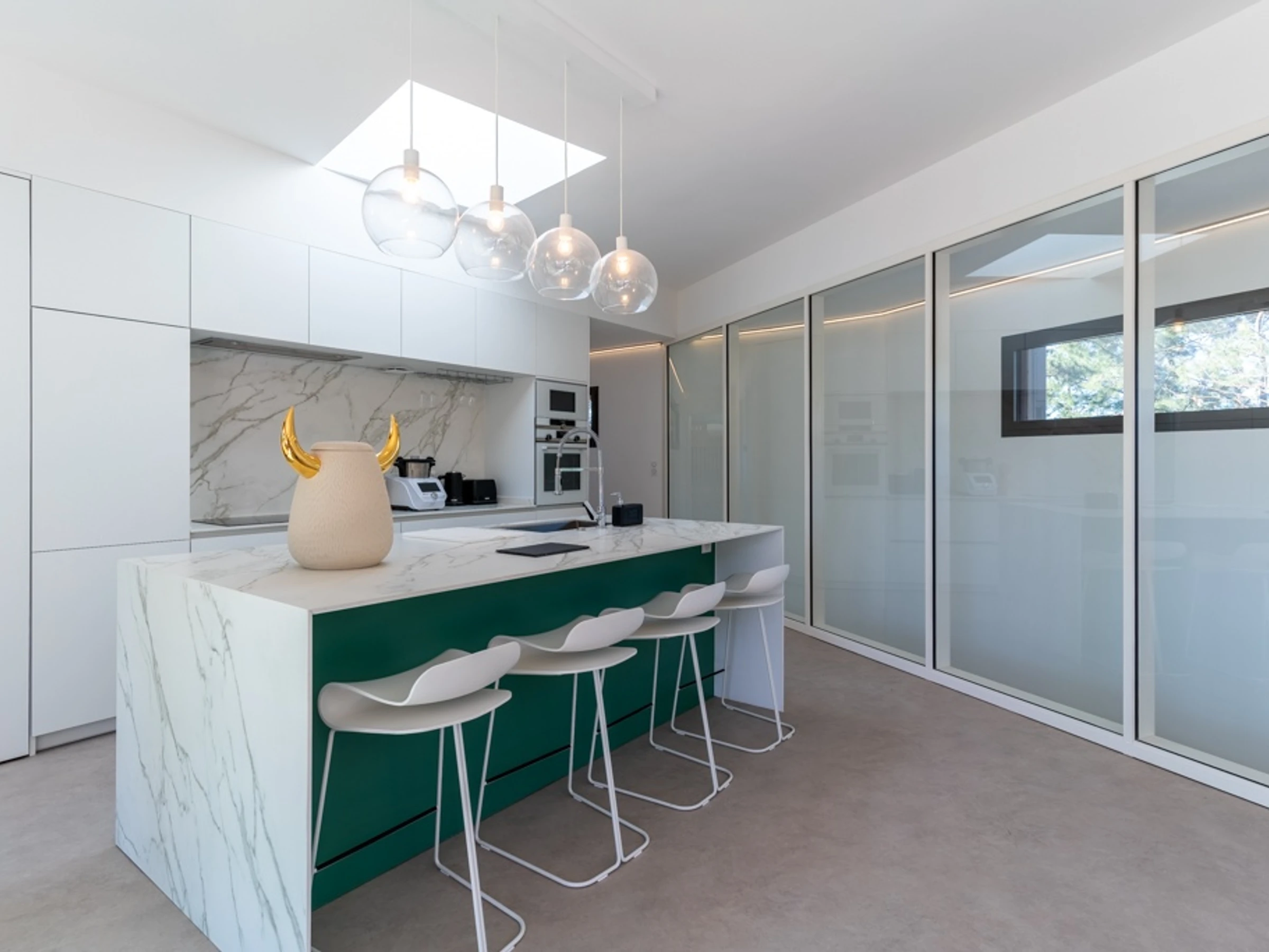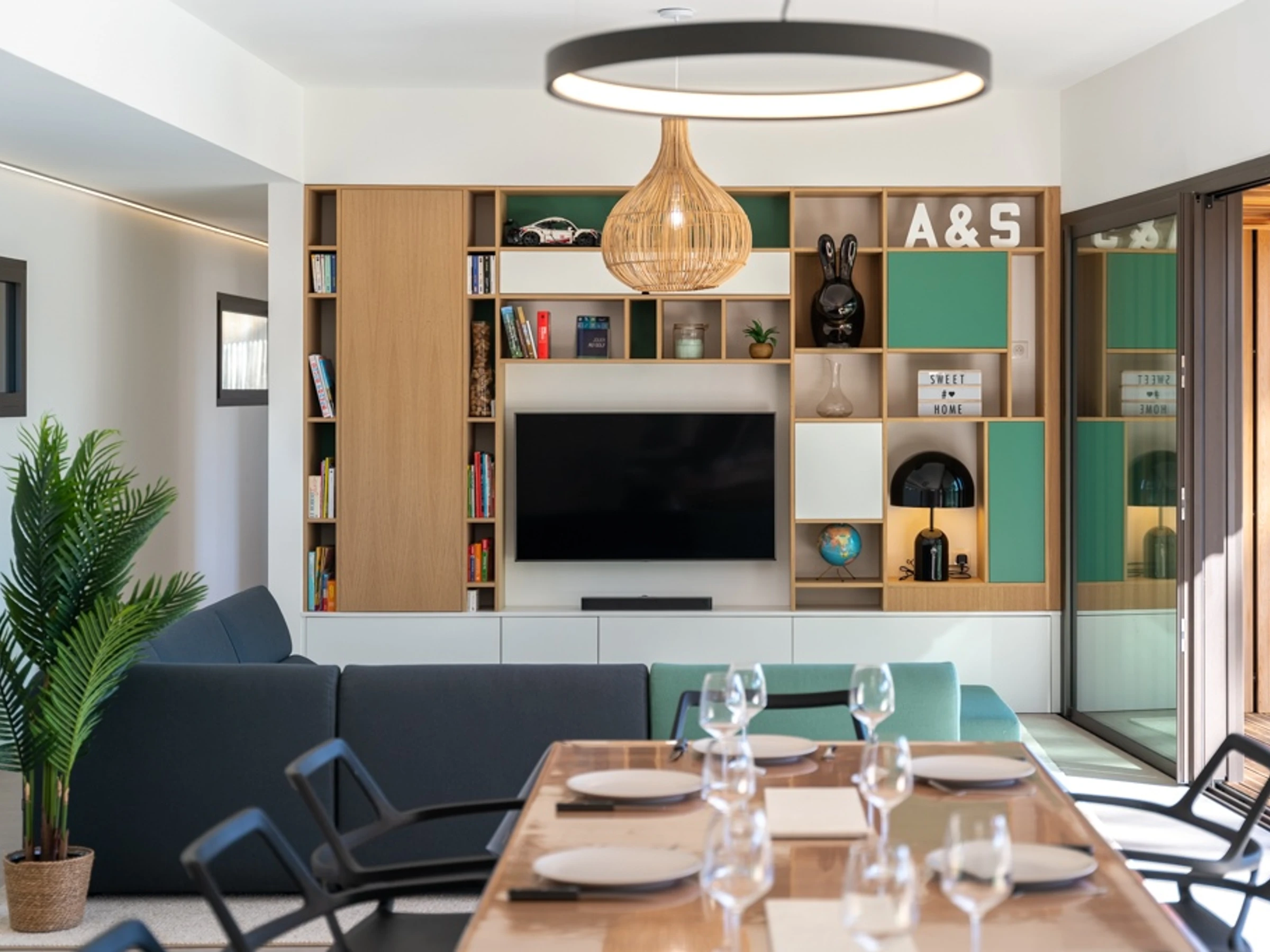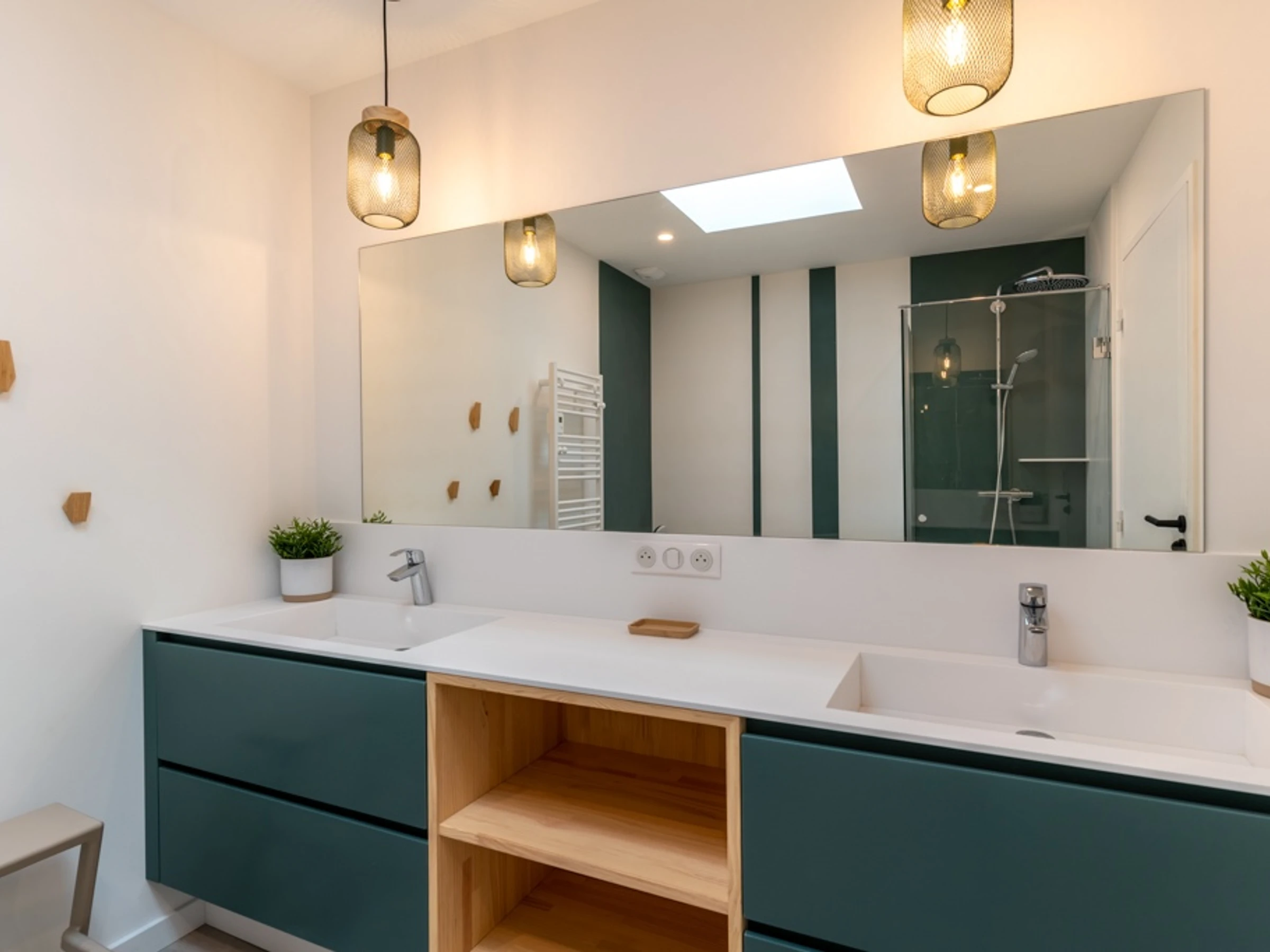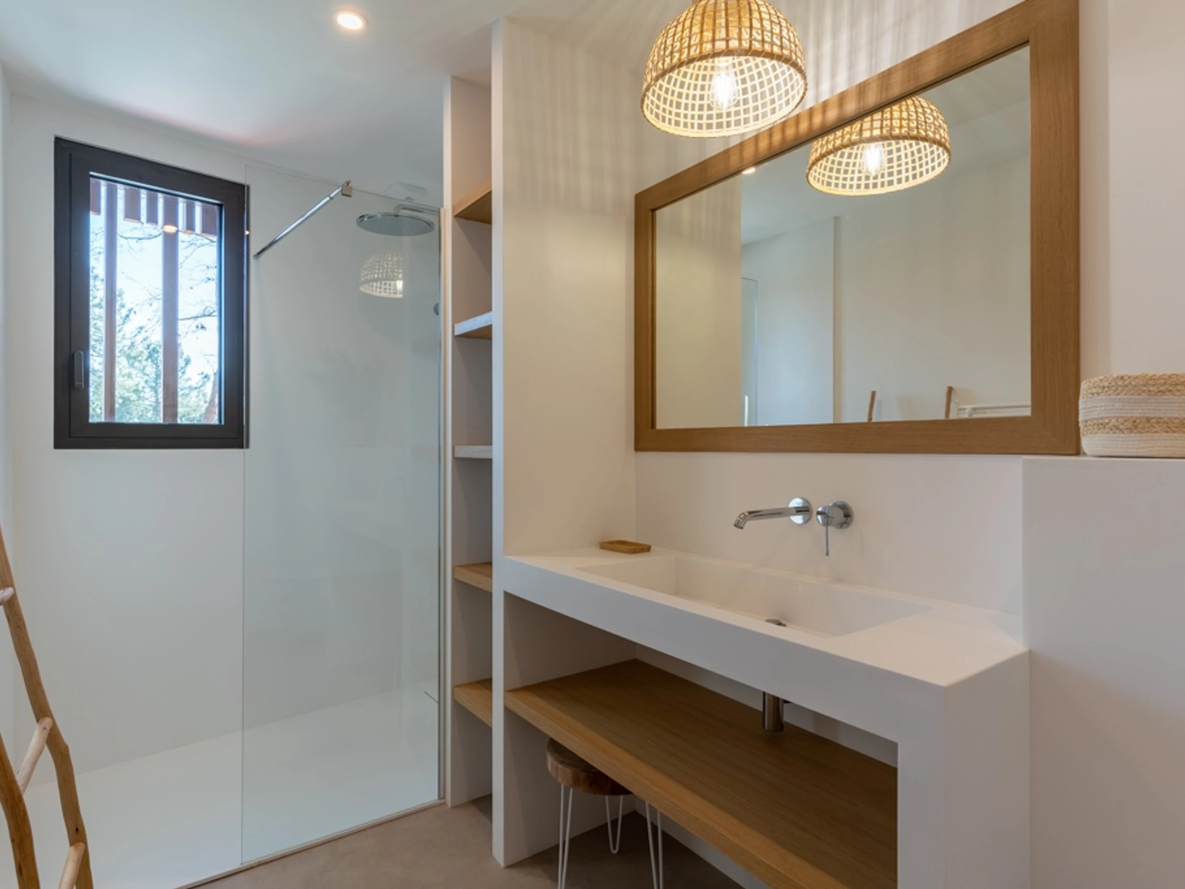 Coté couchage se distingue quatre chambres avec rangements et lits 160 dont une suite parentale avec douche à l'italienne ainsi qu'un dortoir pouvant accueillir six couchages en 90. Trois salles d'eau (comprenant la salle d'eau parentale) avec double vasques dont une avec baignoire offrent un confort optimal.