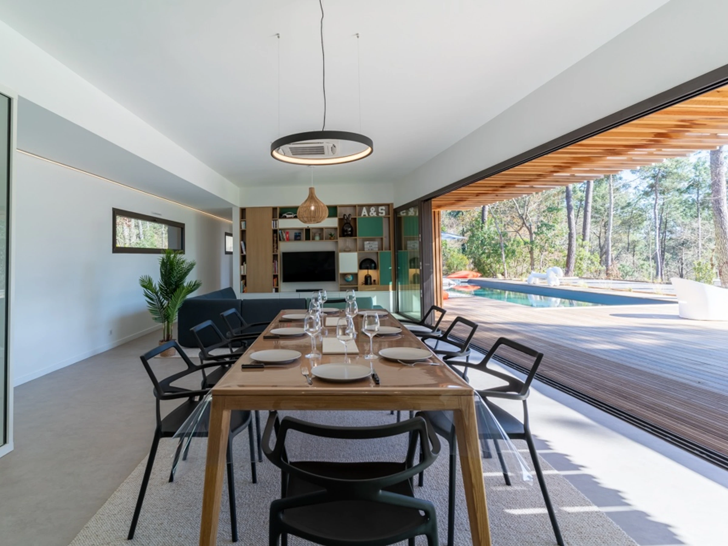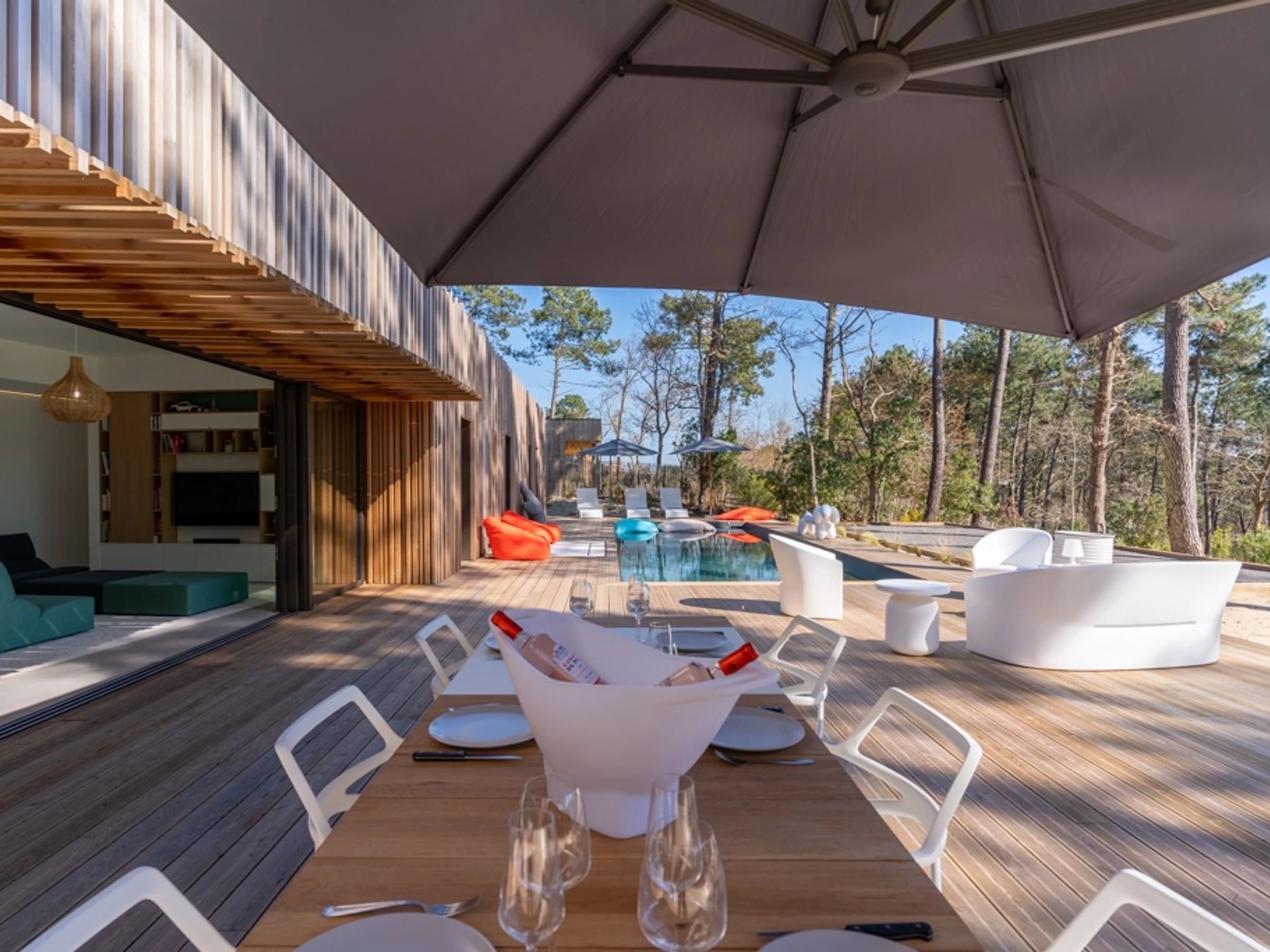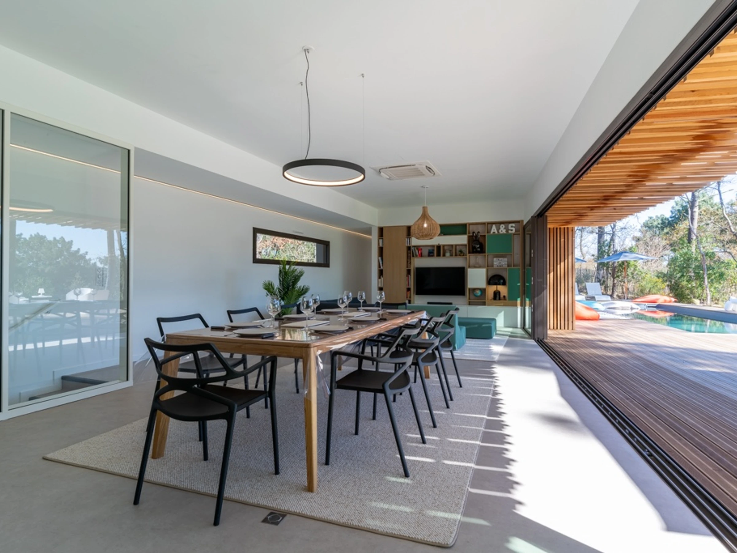 Au cœur du Golf de Biscarrosse, la villa Atlantis de 220m² est climatisée et peut accueillir jusqu'à 14 personnes dont 8 adultes et 6 enfants. Au rez-de chaussée se trouve un garage avec table de ping-pong, un WC indépendant et une salle de cinéma avec canapé, vidéoprojecteur et baby-foot. A l'étage, une belle pièce de vie avec coin télévision (avec WIFI, Netflix, Prime vidéo), salle à manger, et une cuisine entièrement équipée ouverte sur le séjour. Le tout, desservant une terrasse de 170 m² avec piscine chauffée à 28 degrés de mai à septembre.