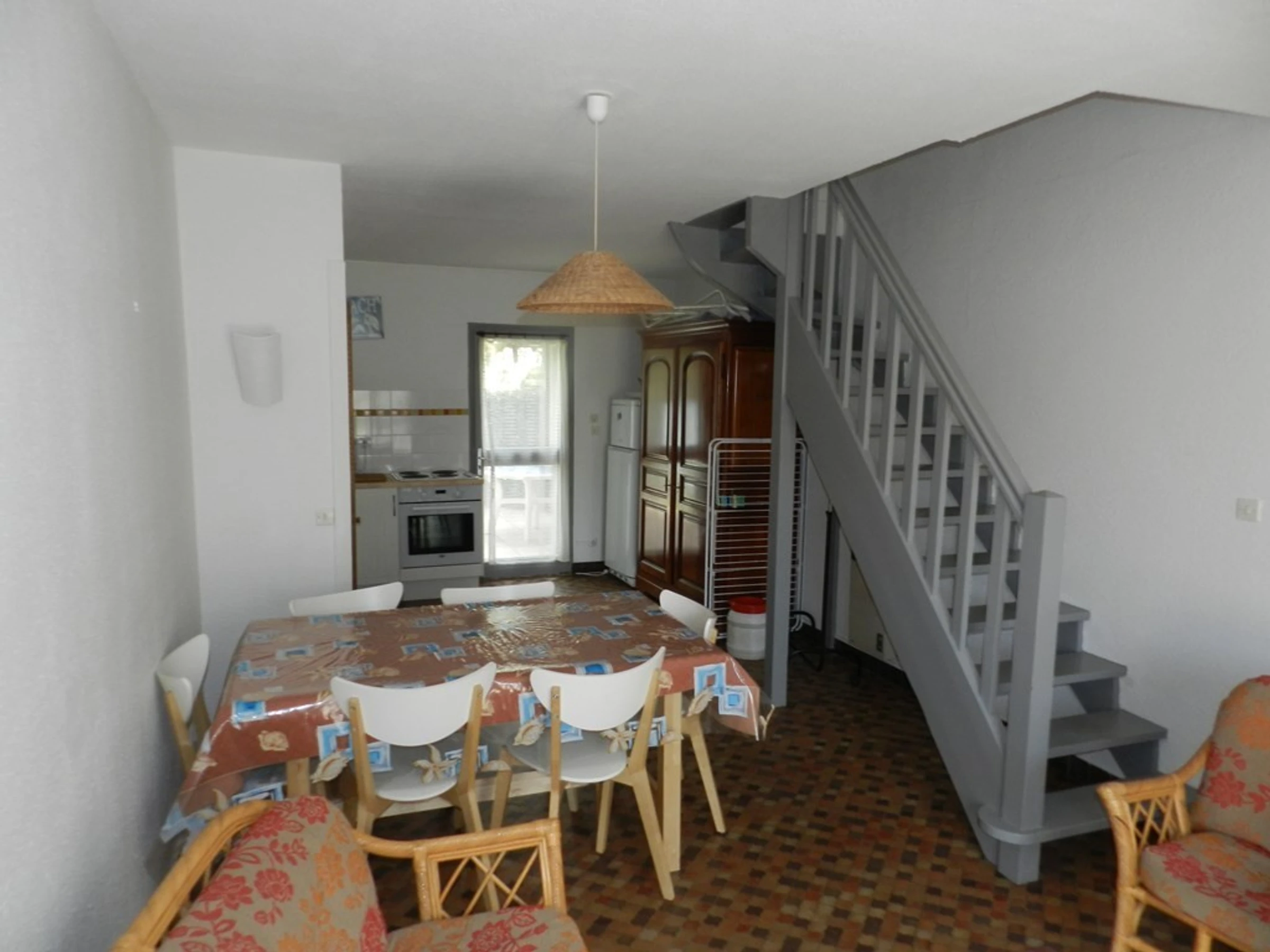 Dans une petite résidence proche de la plage et des commerces (5 minutes de marche), maison duplex de 50m² pour 6 personnes, en rez-de-chaussée, avec terrasse exposée Ouest, grand parc sur l’arrière de la résidence. Terrasse avec mobilier de jardin. WIFI
