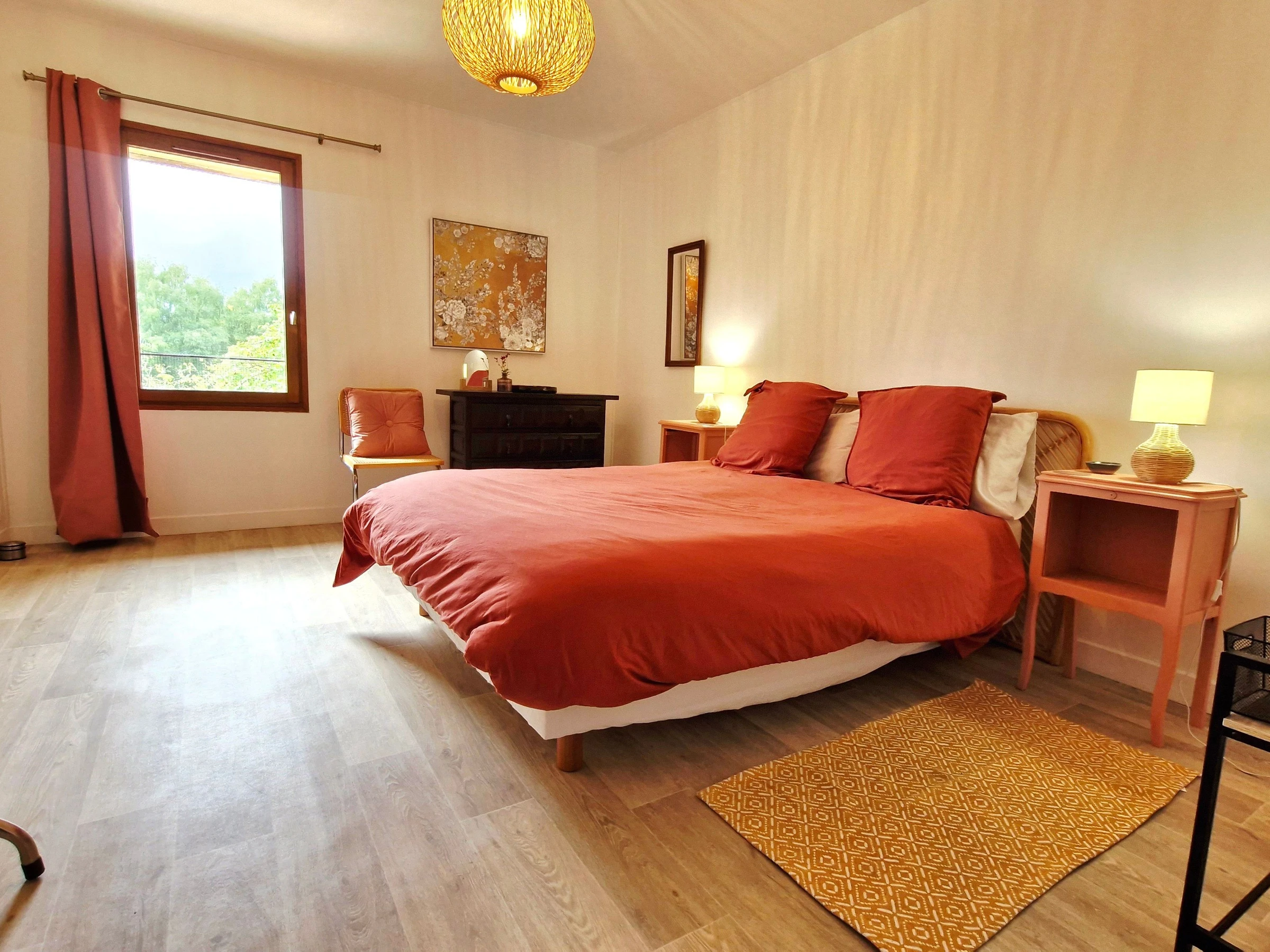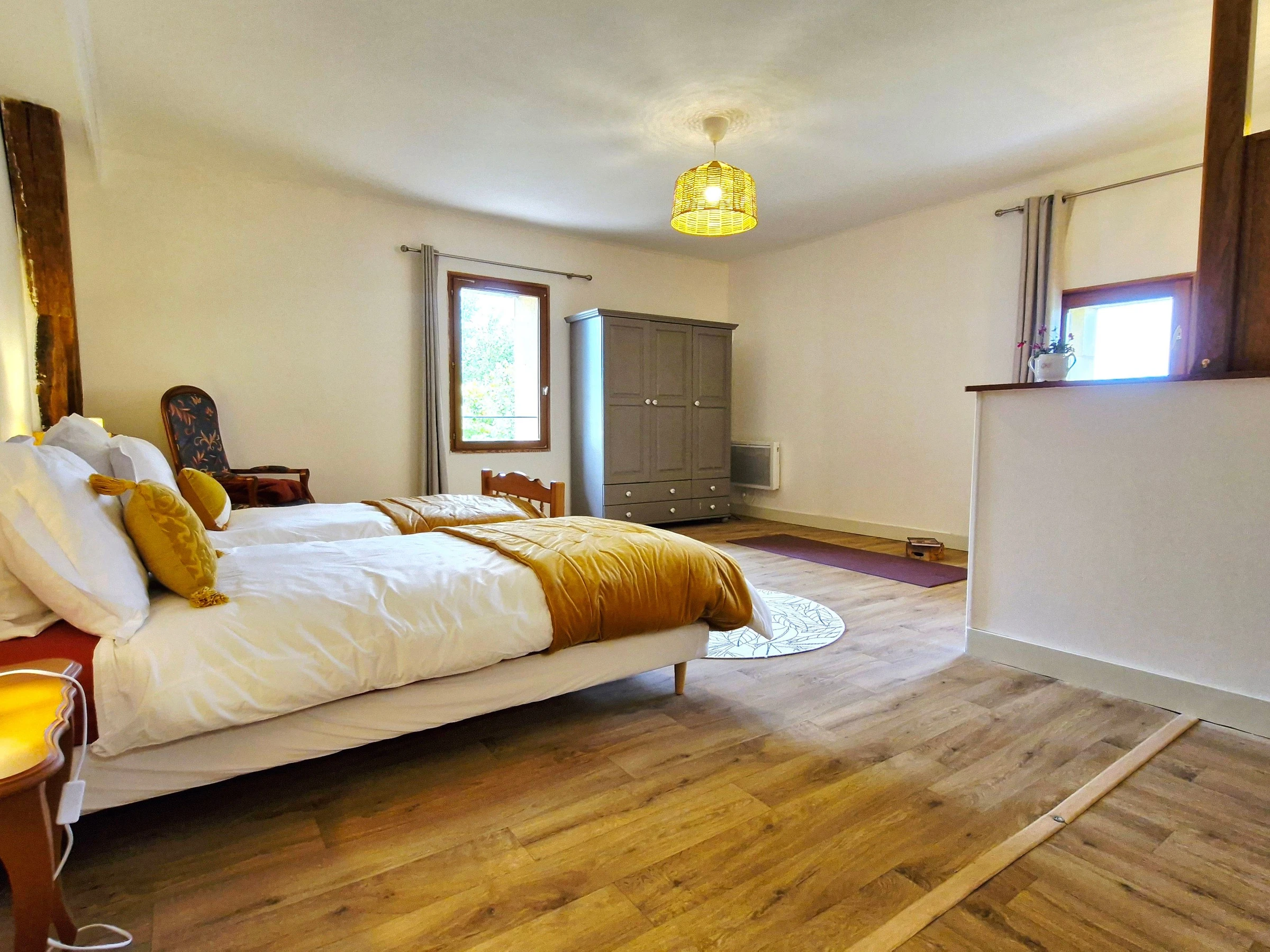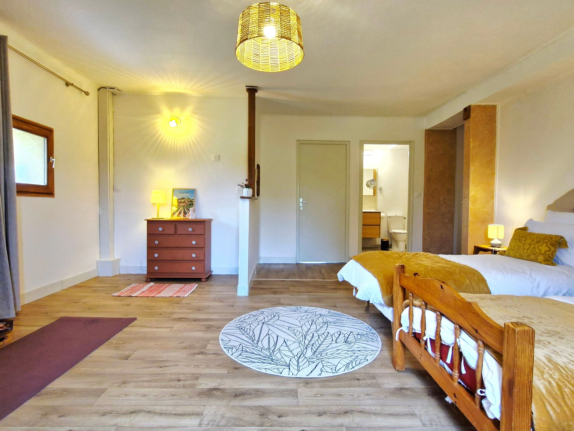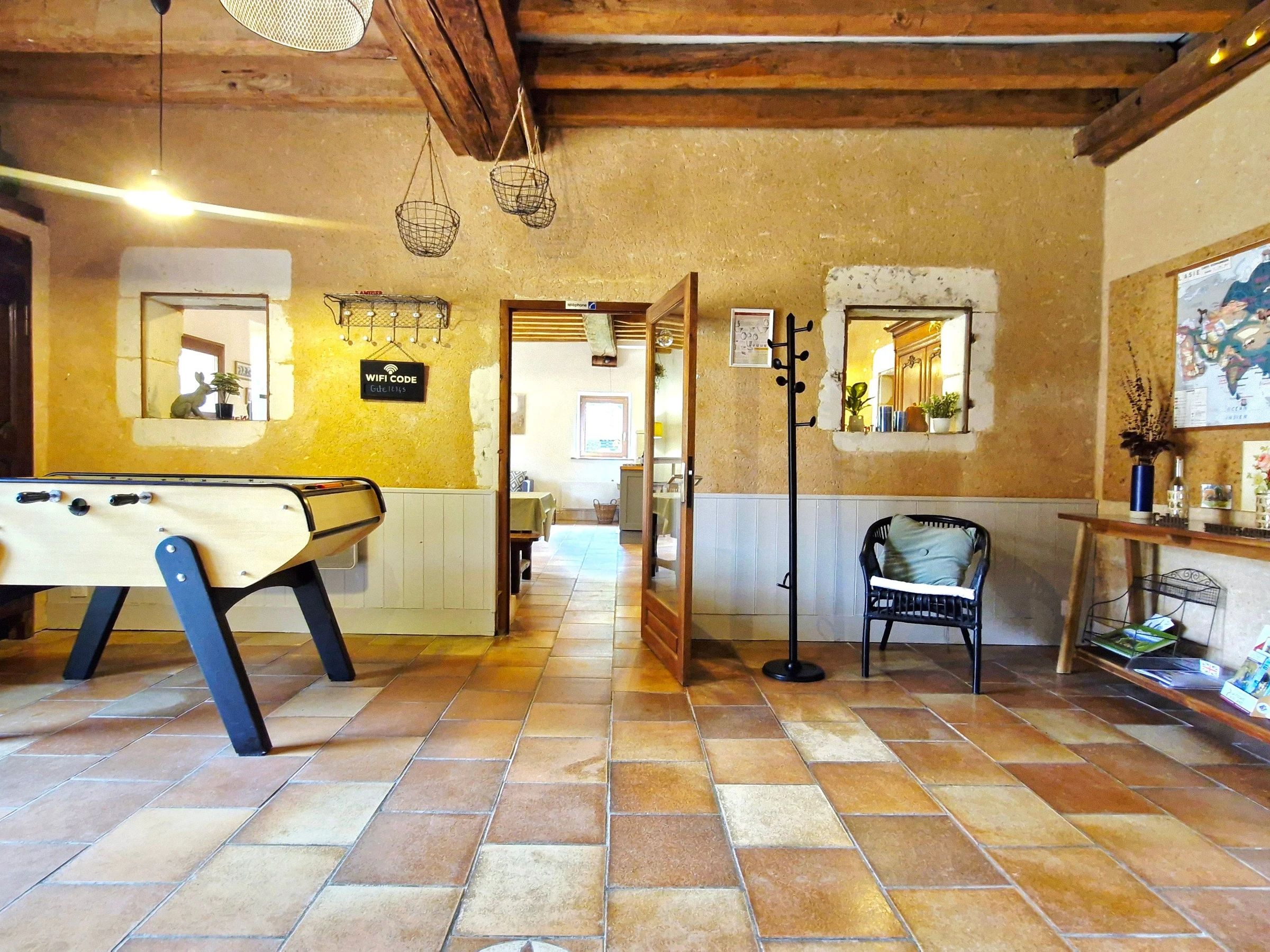 Au rez-de-chaussée, le gîte propose une grande pièce conviviale réunissant cuisine et salle à manger, idéale pour préparer les repas tout en échangeant avec les convives autour d’une grande tablée. Un salon séparé avec canapés et télévision invite à la détente, que ce soit pour lire ou regarder un film. L’entrée est aménagée avec un baby-foot, parfait pour des moments ludiques, et un WC complète cet étage. À l’étage, cinq chambres disposent chacune de leur propre salle d’eau avec douche et WC, tandis que deux autres chambres (en enfilade) partagent la salle de bains/wc. 4 chambres équipées chacune d'un lit 140x190; 2 chambres équipées de 2 lits 90x190 chacune et une chambre avec un lit 160x200. À l’extérieur, vous profiterez d’un jardin ouvert avec terrasse, espace détente et terrain de pétanque, ainsi que d’un barbecue pour vos repas estivaux. Chevaux sur place (clôture électrique). Le gîte dispose également d’un parking privé, d’une connexion Wi-Fi et met à disposition jeux de société et ouvrages locaux.