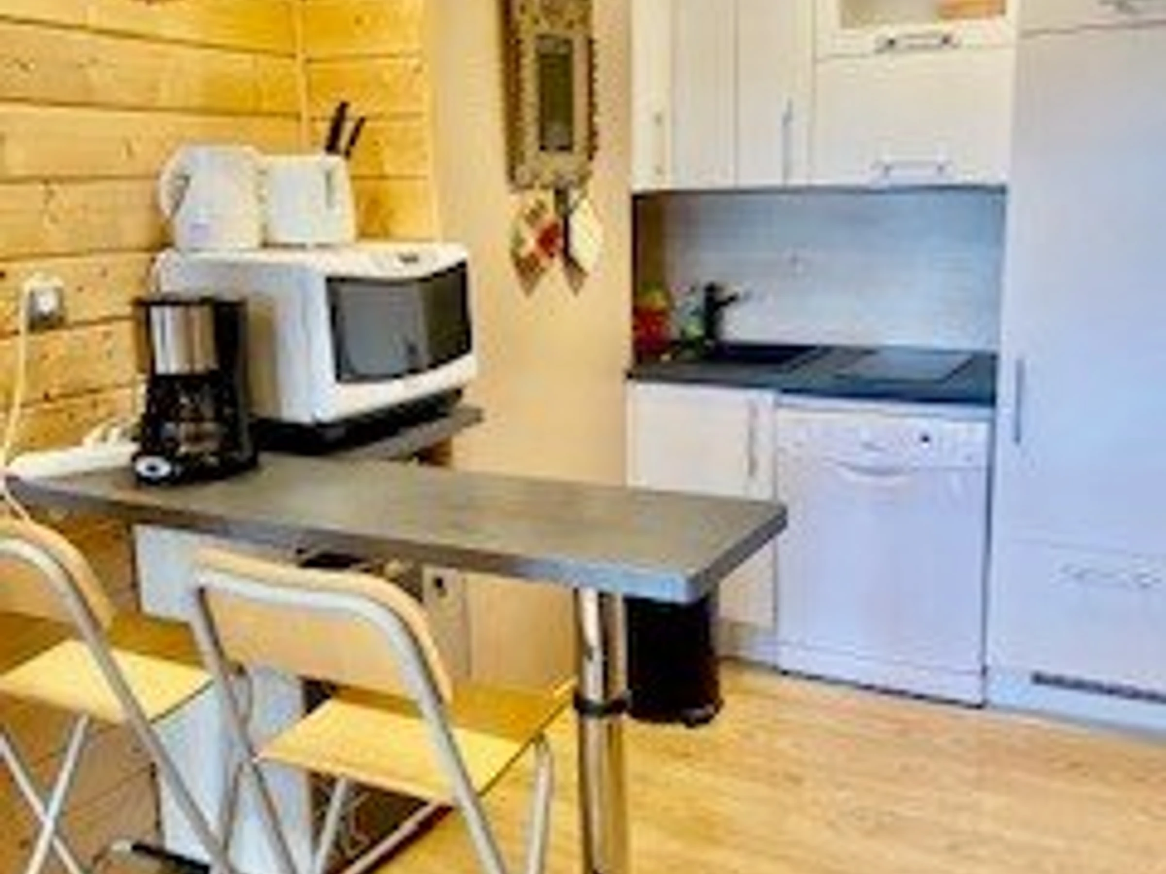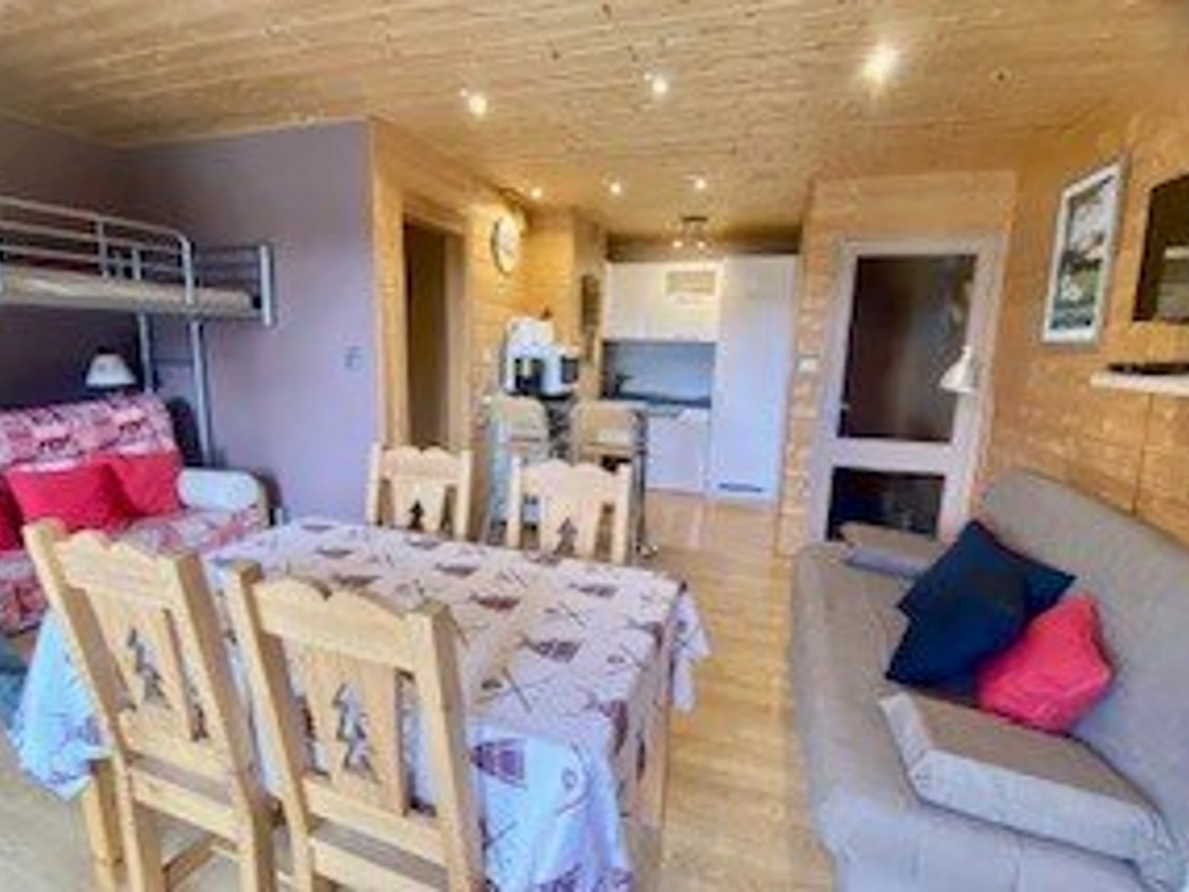 - coin cuisine équipée : lave-vaisselle, refrigérateur/congélateur, plaques vitro-céramique hotte aspirante - combi four micro ondes/rotissoire - bouilloire - cafetière électrique - - coin salon avec TV écran plat, canapé clic-clac en 140 - table rectangulaire avec + un coin nuit avec canapé convertible en 140