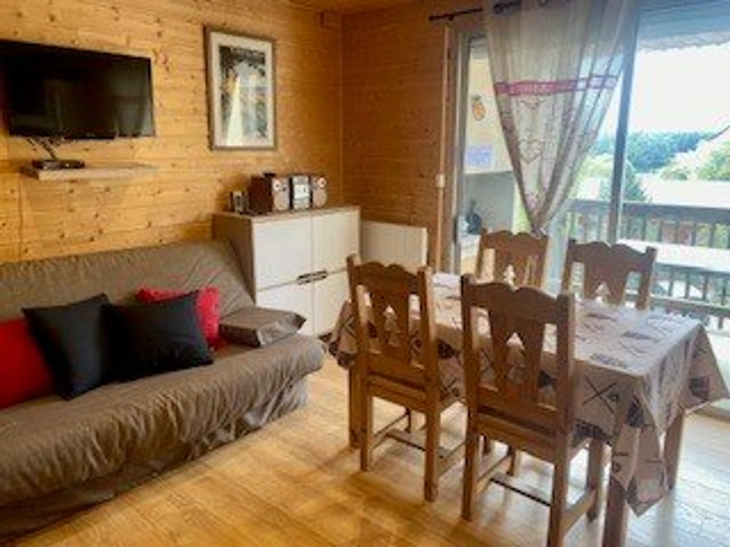 Il est entièrement rénové et décoré style montagne composé :