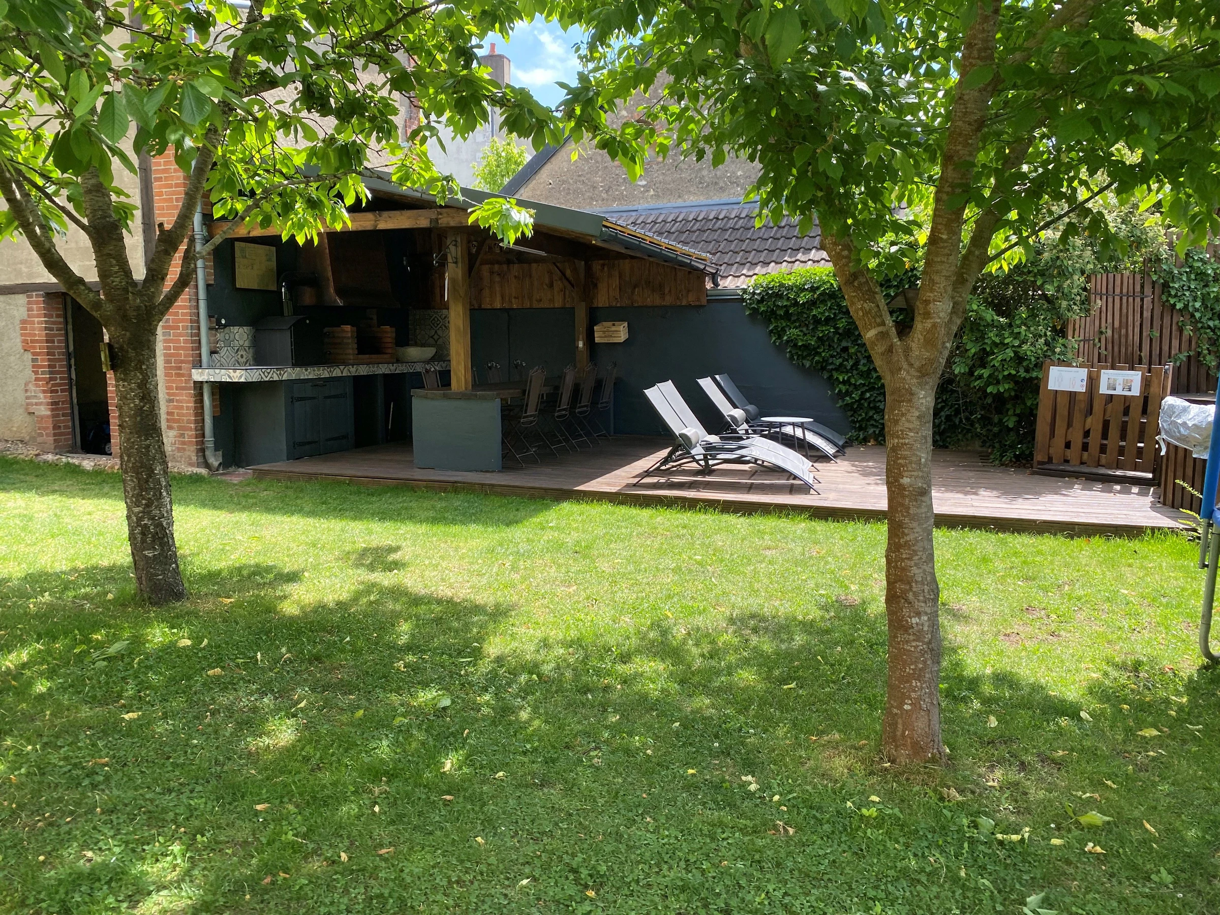 Jardin clos de 400m² est à votre disposition avec une cuisine d'été (barbecue, four à bois) pour les moments conviviaux, des chaises longues pour se détendre, et même une piscine hors sol, des jeux de pétanque et Molkky qui feront la joie des enfants et des plus grands !