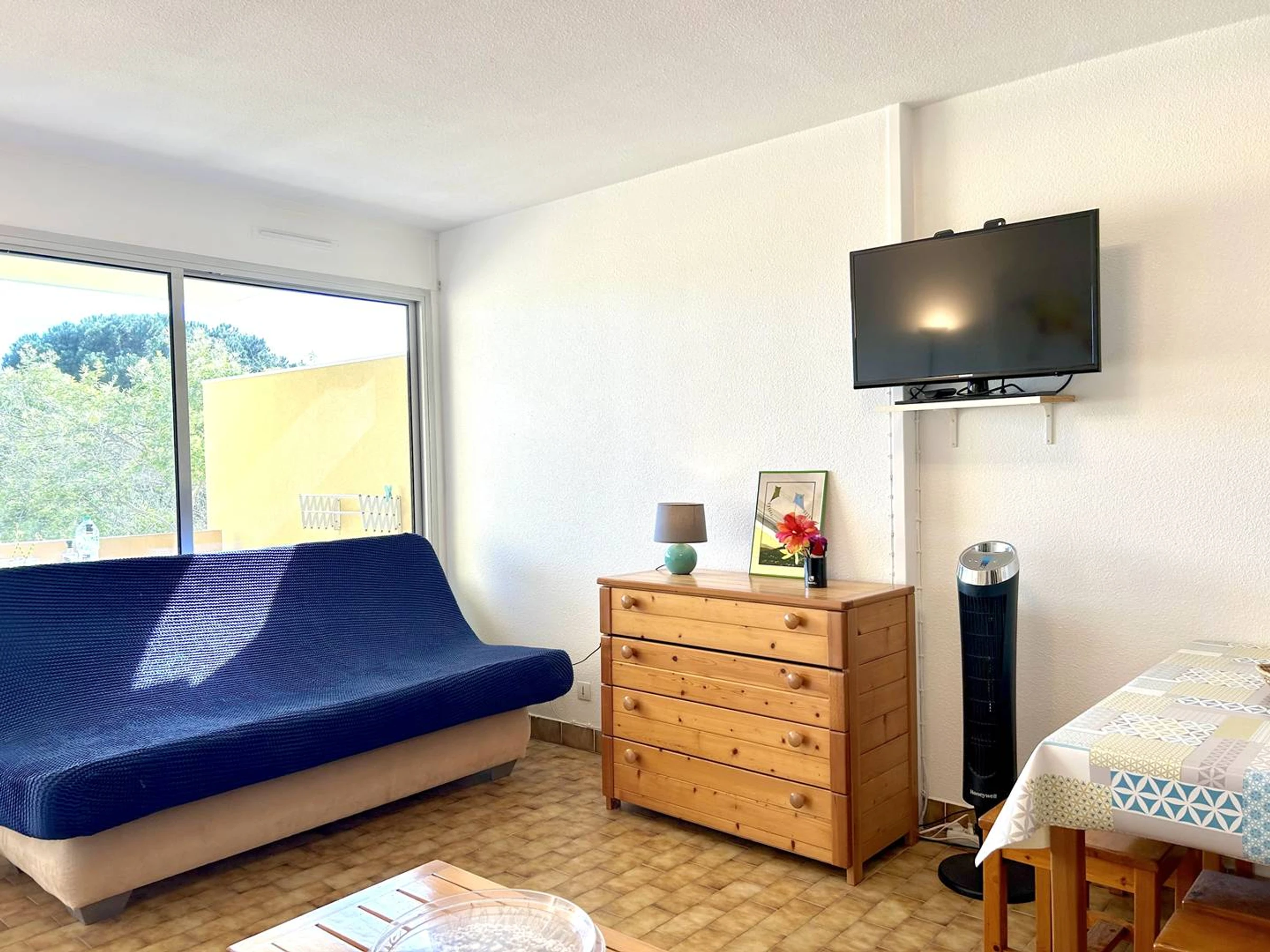 Cette location de vacances vous propose une terrasse conviviale orientée Sud-Ouest donnant sur un séjour équipé de deux canapés lits 2 places , un coin cuisine ouvert sur le séjour, un coin nuit à l'entrée avec un lit superposé sncf, une salle d'eau munie d'une douche à l'italienne avec lave-linge et un WC indépendant.