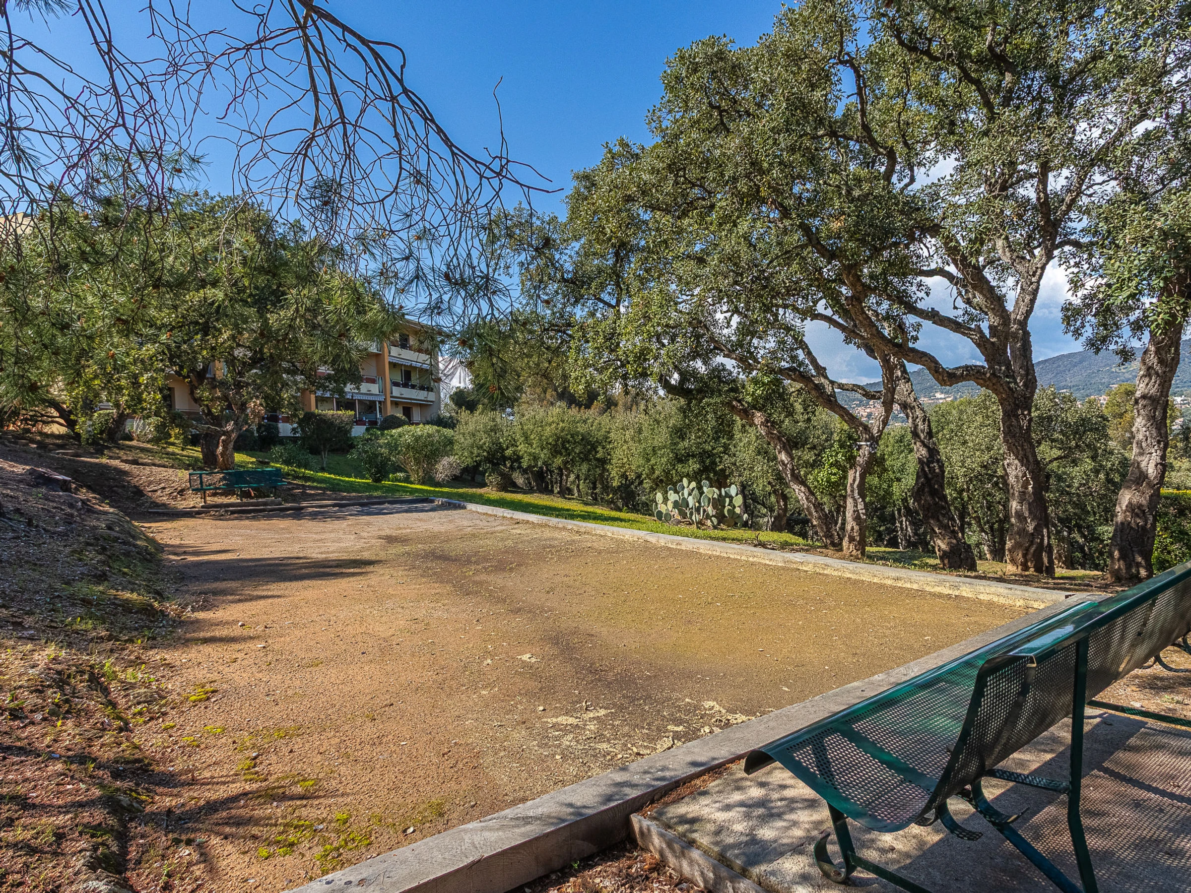 Résidence "Le Bois du Coteau", de 2 étages. Dans le quartier de La Faviére, dans la localité Bormes Les Mimosas, à 1 km de la mer, à 1 km de la plage. En commun: piscine rectangulaire cloturée (15 x 7 m, profondeur 110 - 190 cm, disponibilité saisonnière: [hidden] - [hidden] Terrain de pétanque. Infrastructures de la résidence: réduit pour bicyclettes. Sentier en escalier (6 marches) jusqu'à la maison. Magasins, magasin d'alimentation, supermarché, restaurant, bar, boulangerie, café 900 m, arrêt de bus "Saint pons" 1.8 km, plage de sable "La Favière" 1 km. Port plaisance 1.5 km, terrain de golf (18 trous) 15 km, ecole de voile 3 km, tennis 3 km, golf miniature 3.5 km. Résidence avec portail électrique. La remise des clés a lieu à l’agence de Le Lavandou.