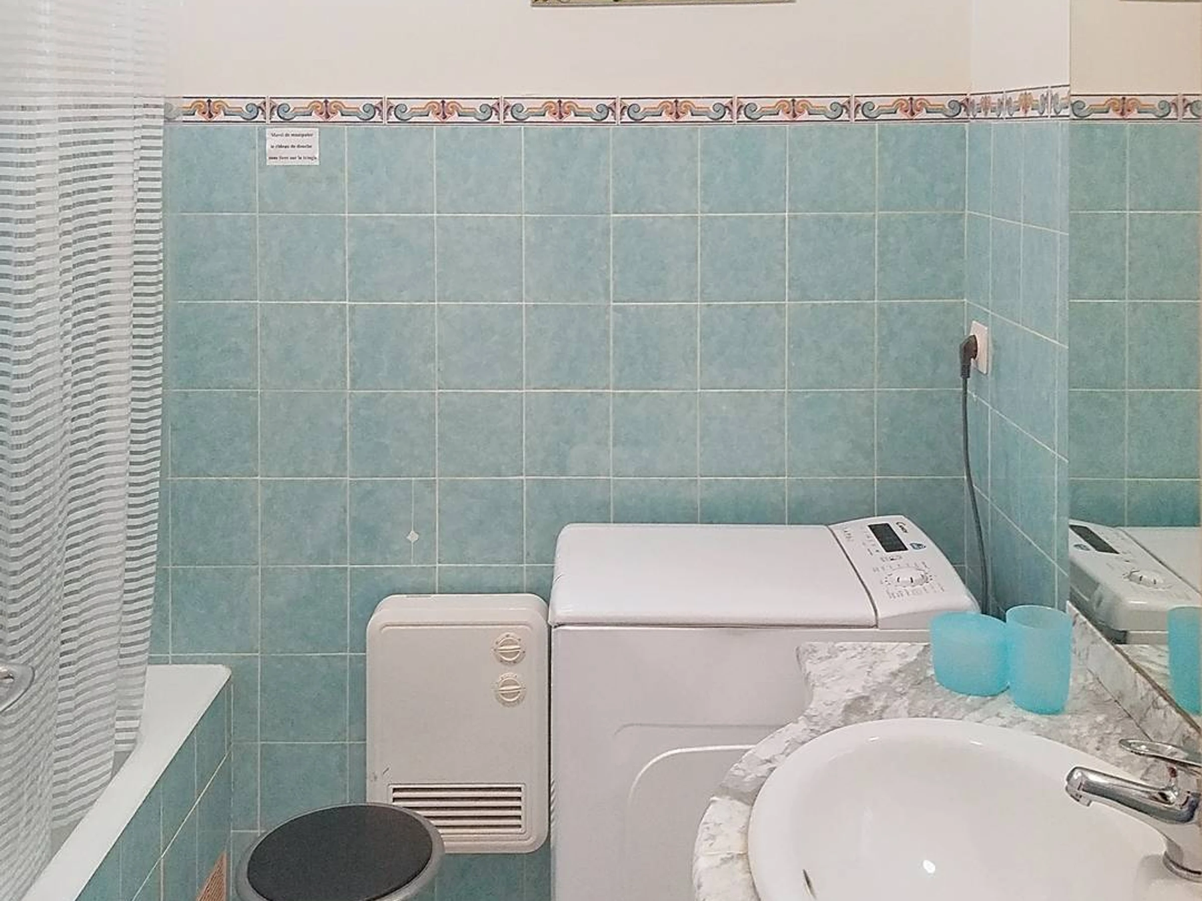 Une salle de bains avec baignoire et lave linge; un wc indépendant, un espace cuisine équipé (plaques gaz et électrique, frigidaire, four, micro ondes) ouvert sur le salon, TV, convertible, une loggia exposée Sud aménagée avec une jolie vue sur les collines et un aperçu Mer. Proximité commerces et plages.Parking libre. Animaux non admis. Linge de lit en sus à commander au moins une semaine avant arrivée).