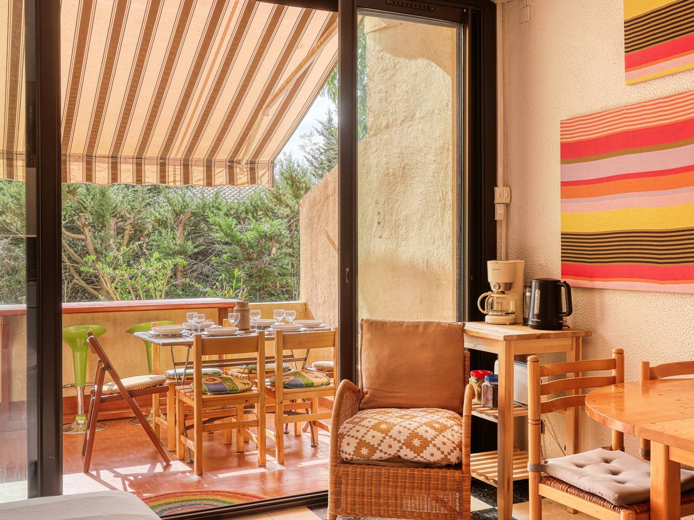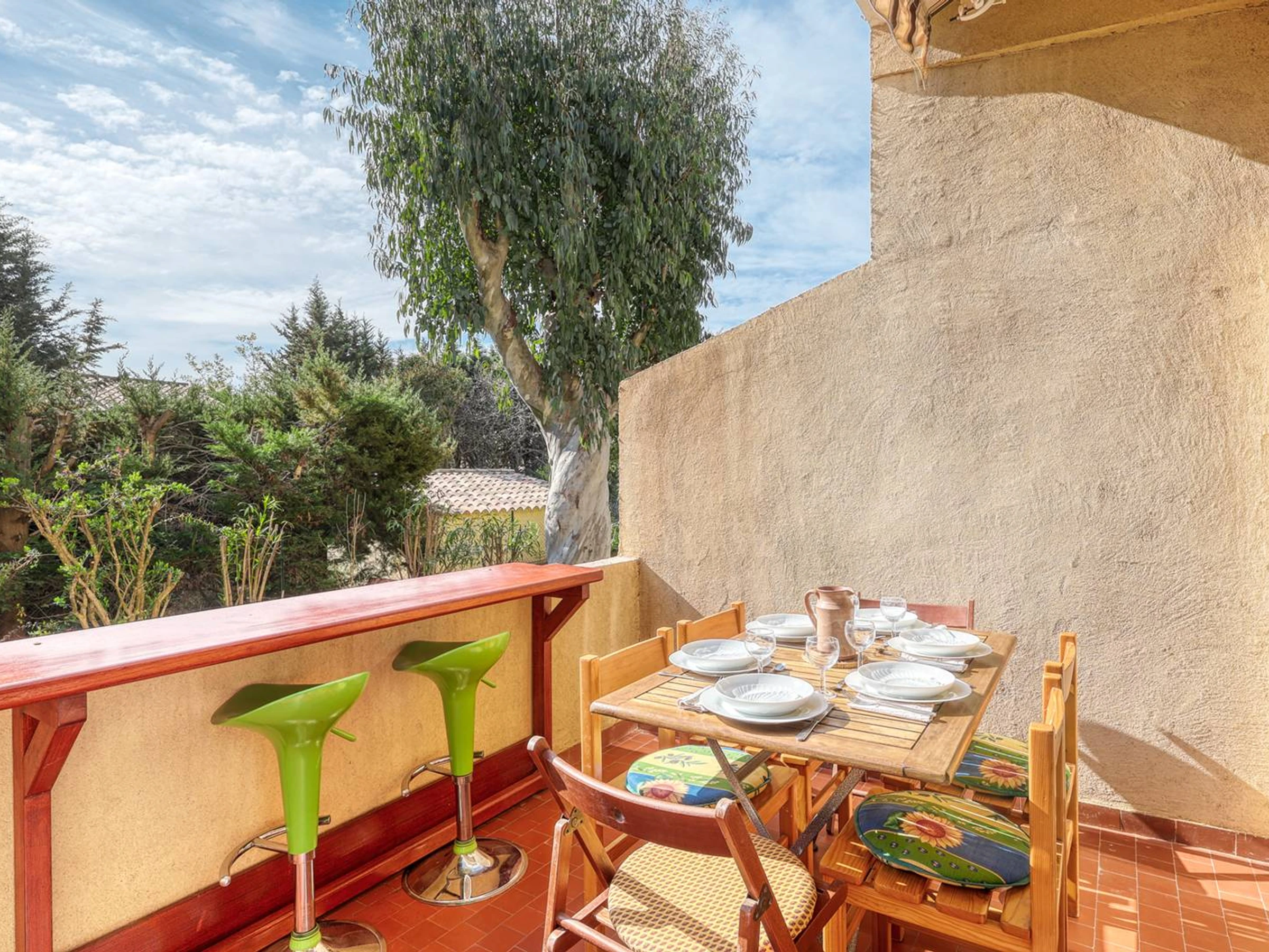 -La terrasse offre une jolie vue sur les jardins de la résidence, pour de jolies repas ou apéros en famille ou entre amis.