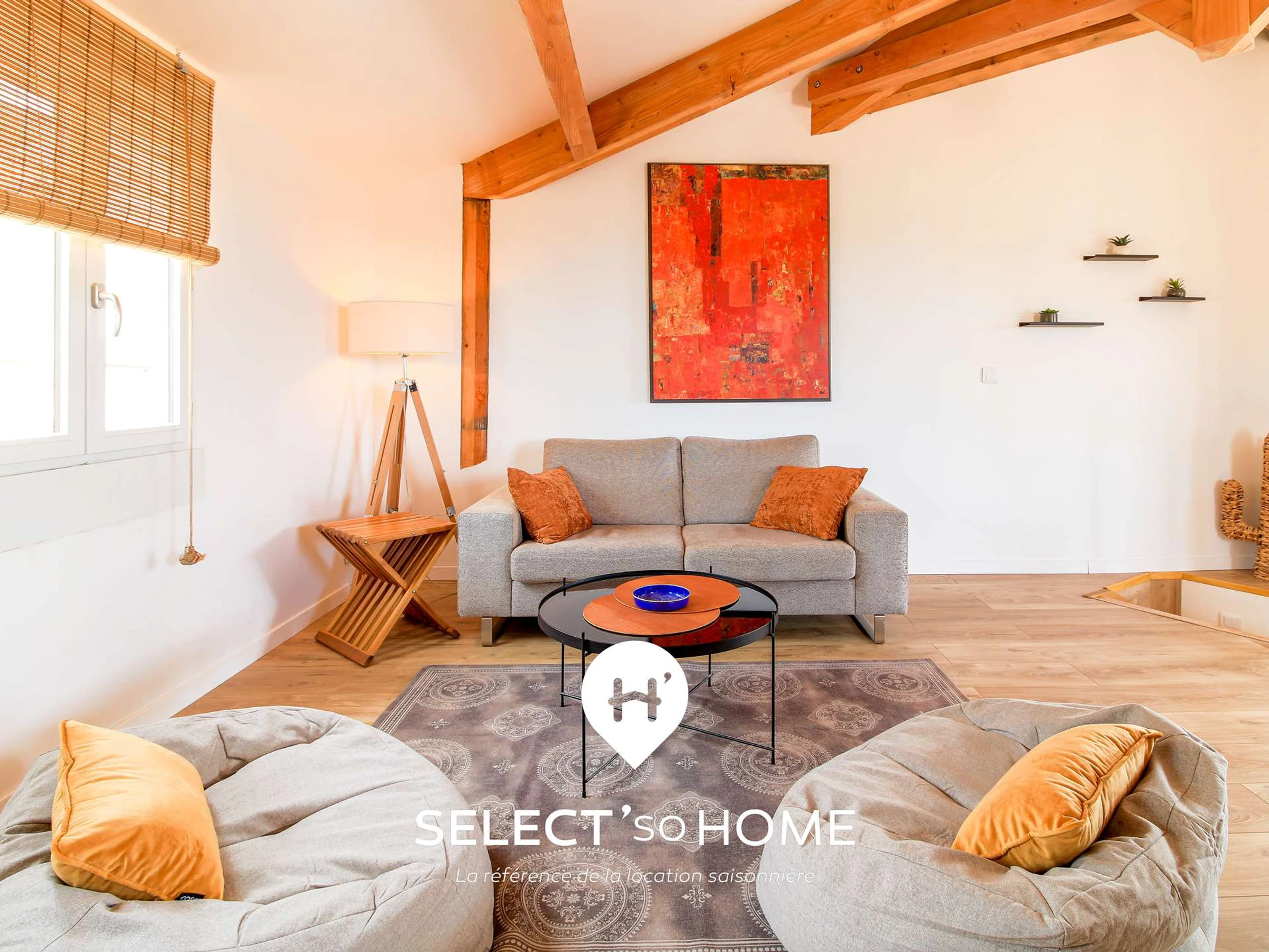 - Un séjour cathédral sous les poutres, à l’esprit chaleureux et vivant.