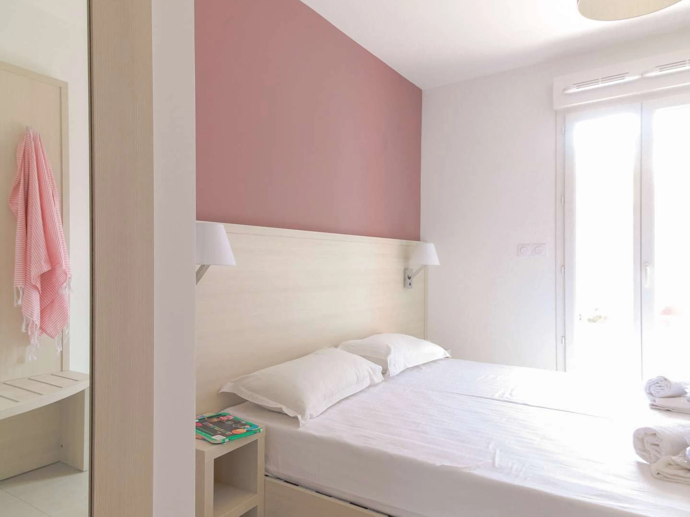 Dès l’entrée, vous êtes happé par la lumière : la pièce à vivre déploie sa cuisine tout équipée au style contemporain, son coin repas qui donne envie de prolonger les petits-déjeuners, et un salon au canapé moelleux qui se transforme volontiers en lit deux places. Bonus : un coin bureau malin, pour ceux qui auraient oublié de poser leurs congés.