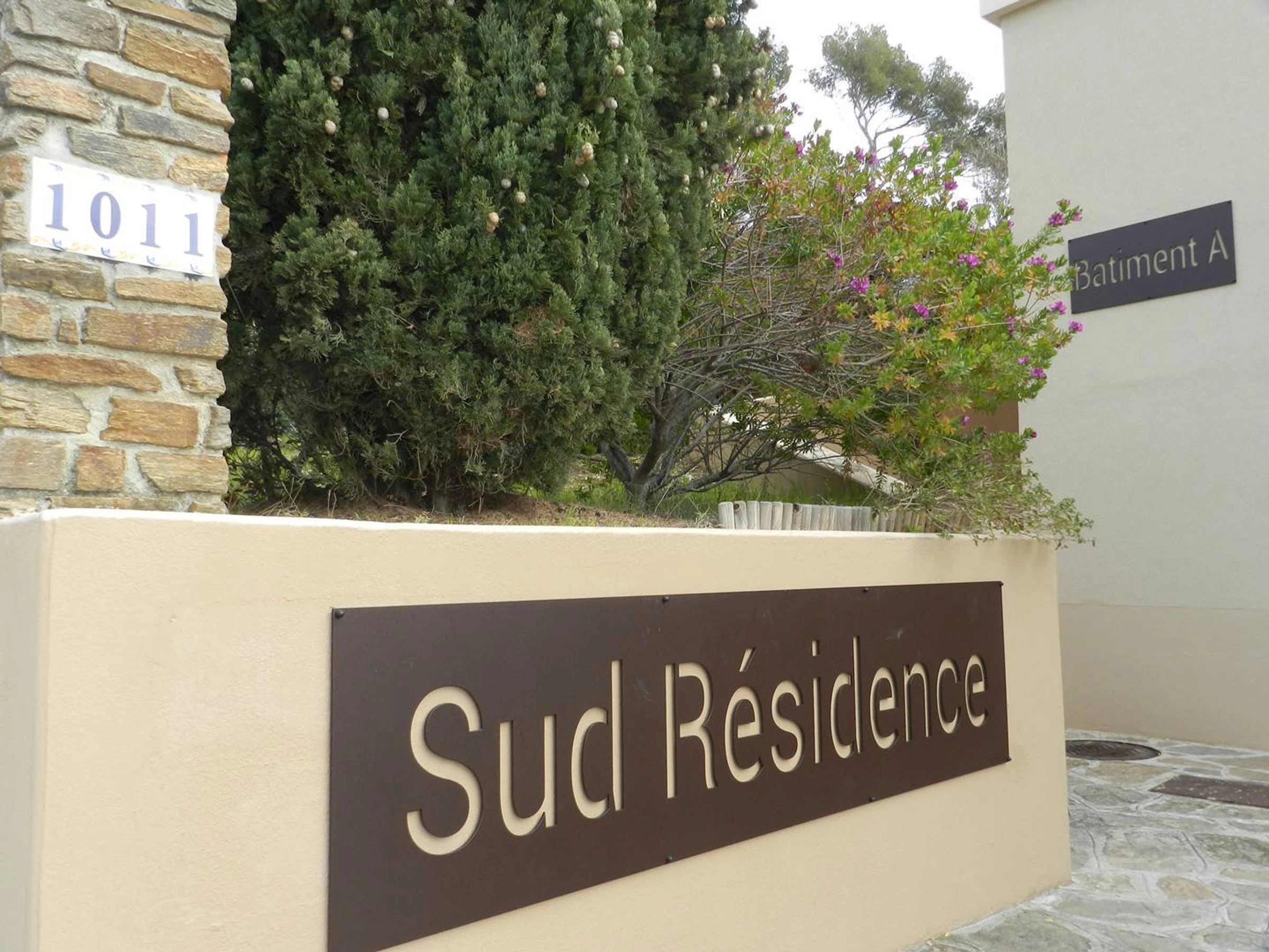Cette location de vacances est située sur les hauteurs de la Favière au rez-de-chaussée de la résidence "Sud Résidence".