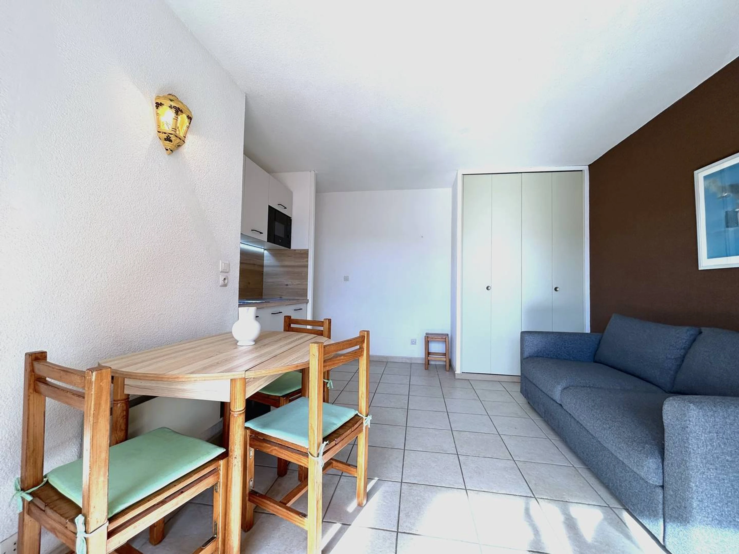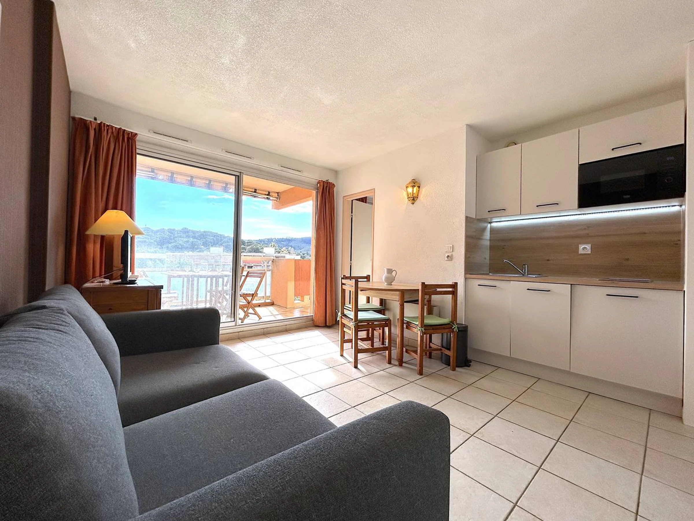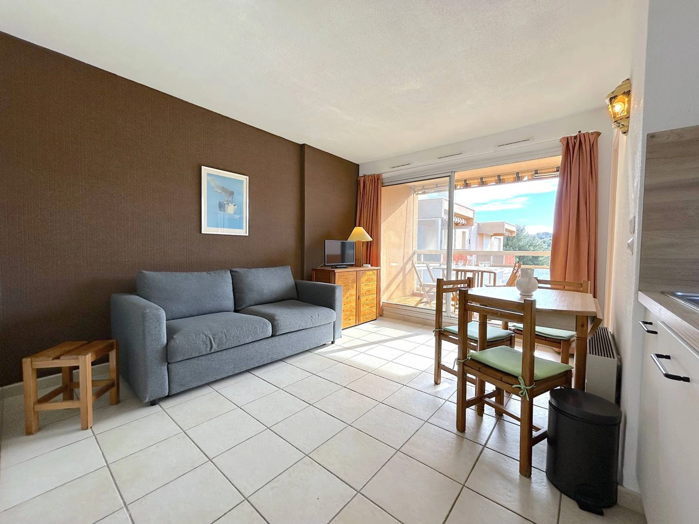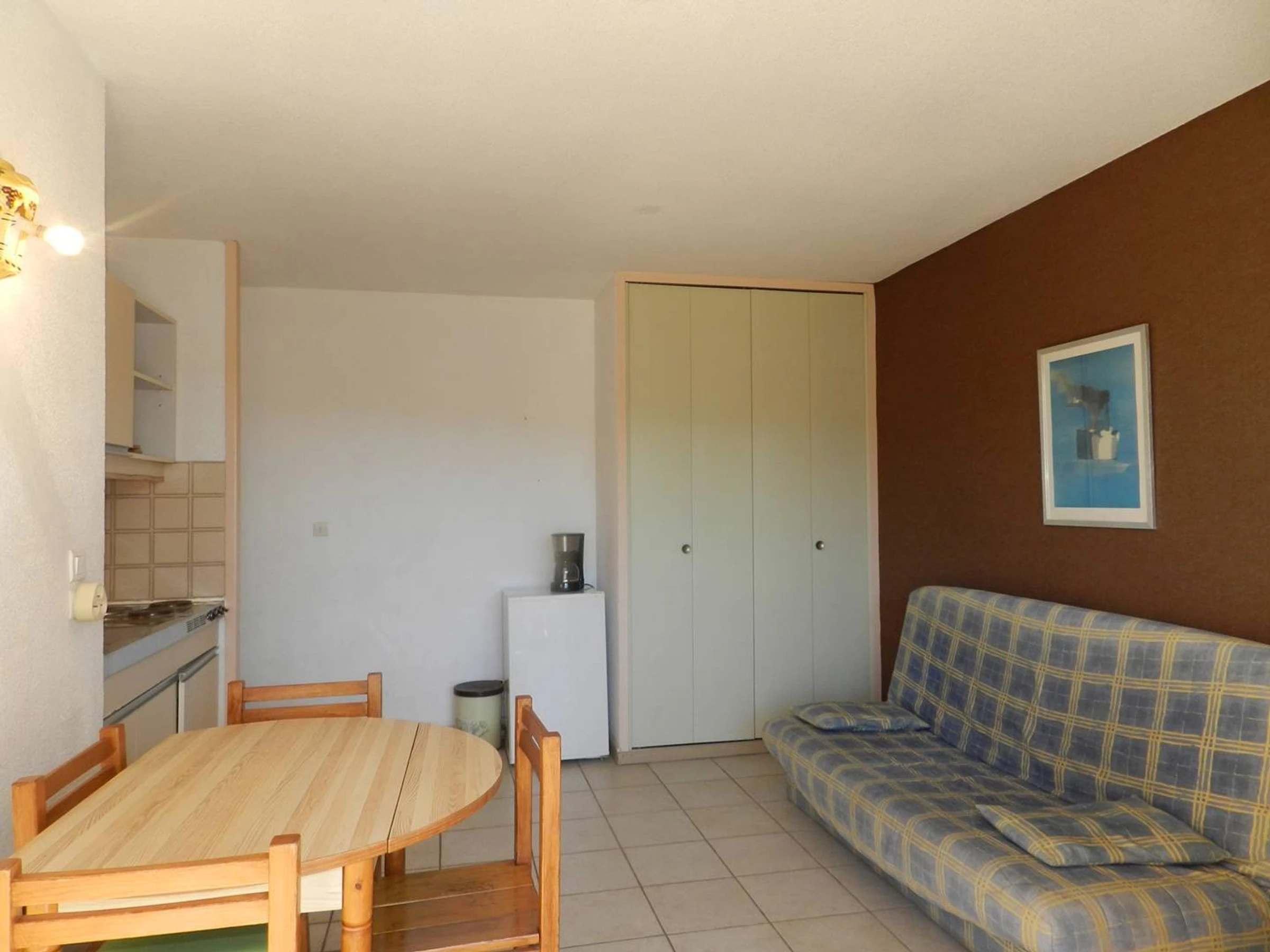Située au 3ème étage de la résidence, cette location exposée SUD vous offre une terrasse avec store solaire , un séjour avec divan convertible, une kitchenette, une chambre avec lits superposés et une salle de bains avec wc.
