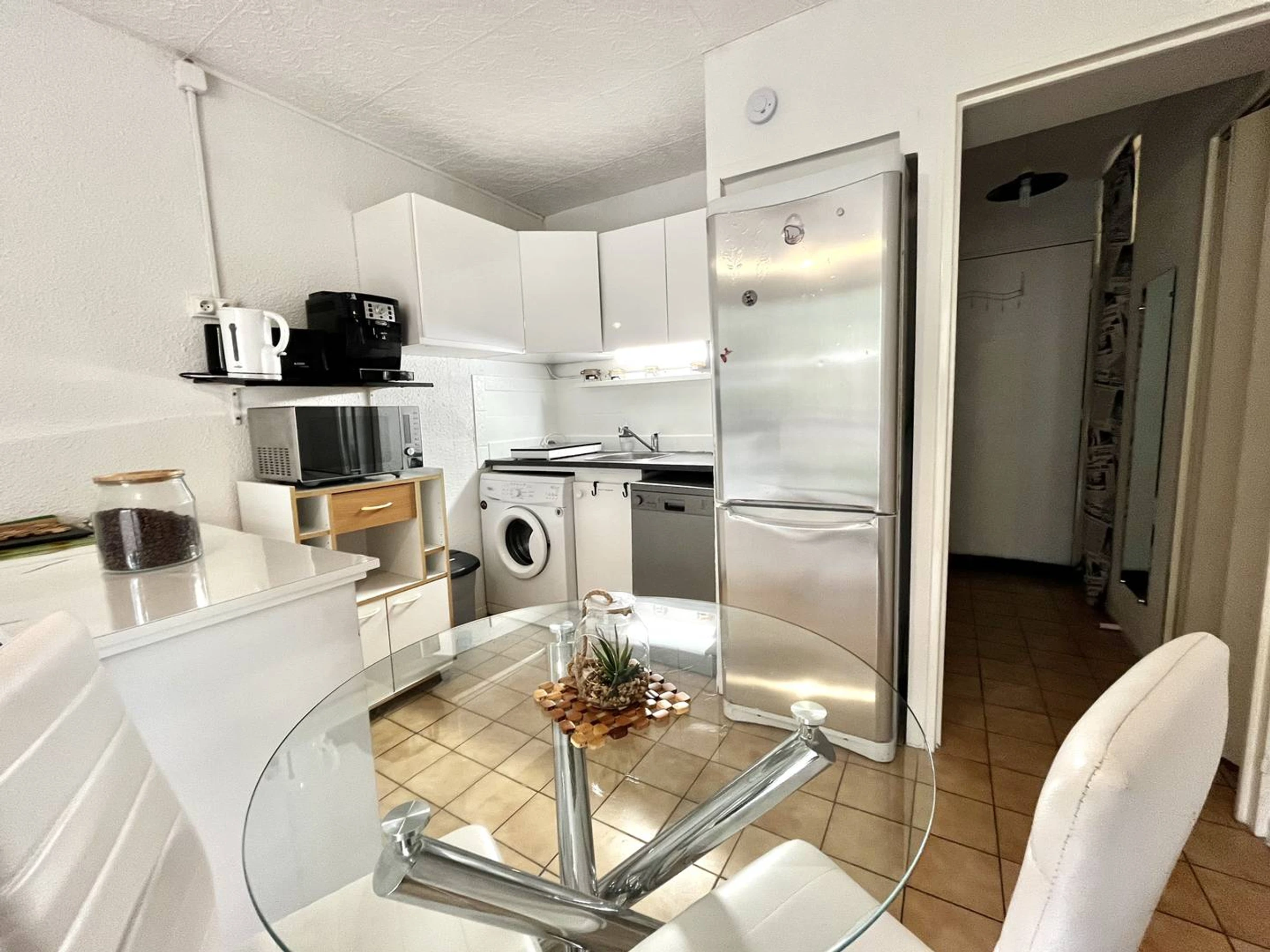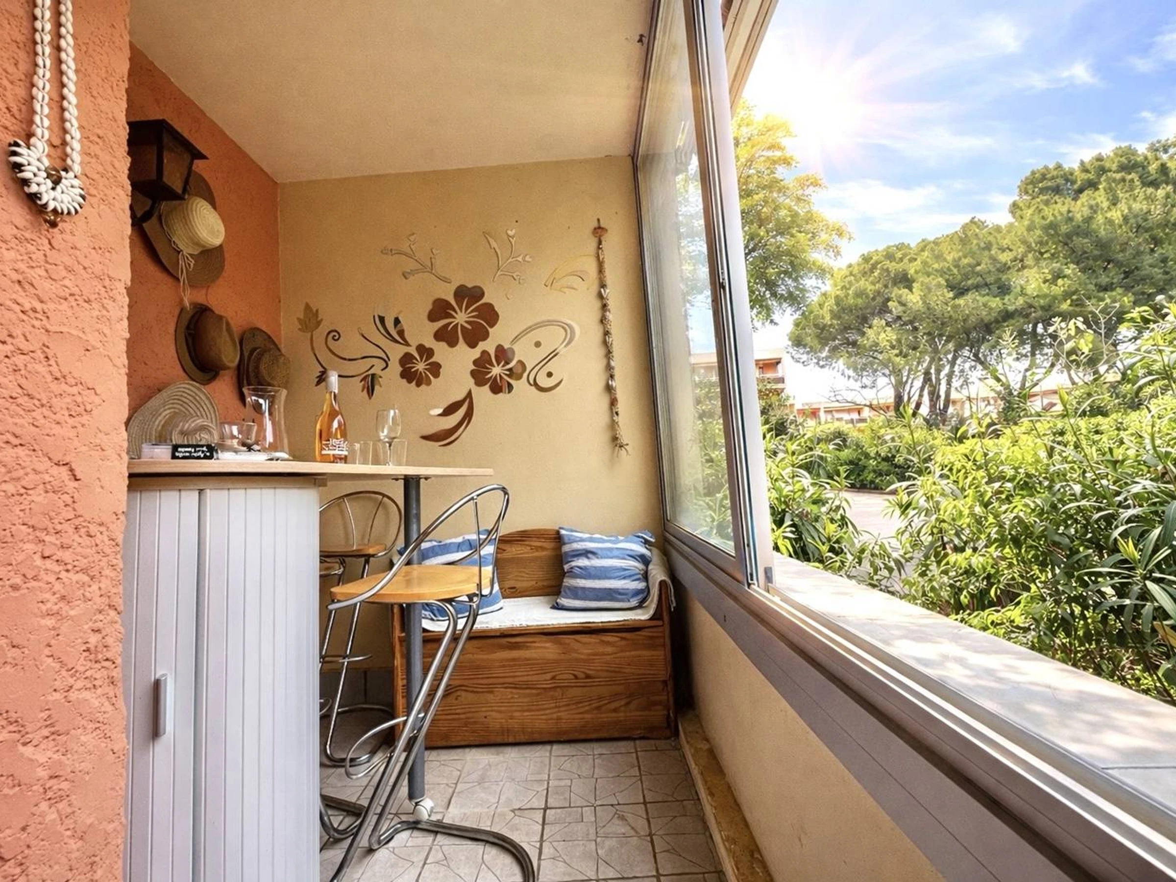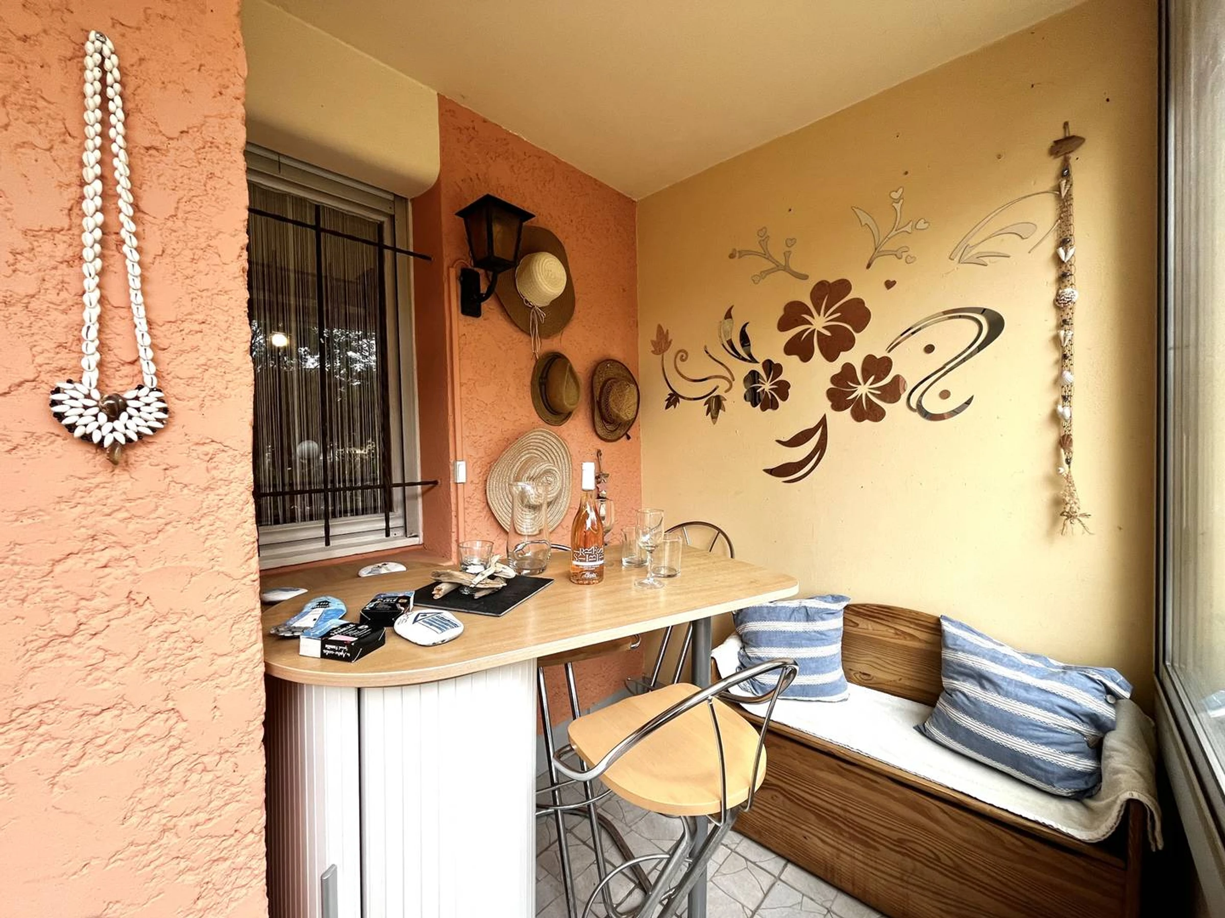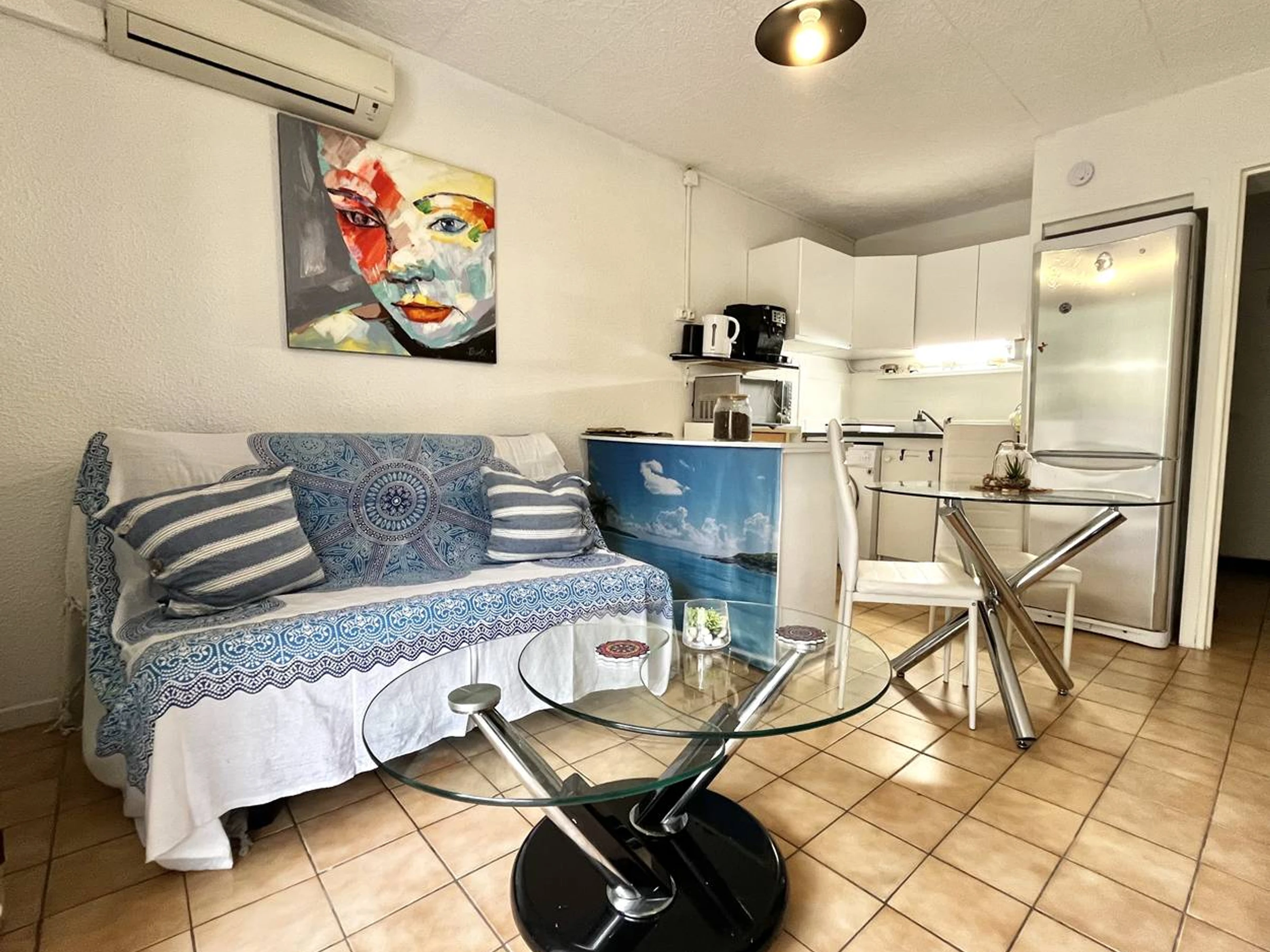 En rez d'immeuble, dans une résidence calme et sécurisé, nous vous proposons cet appartement climatisé disposant d'un séjour avec canapé fixe ouvrant sur une véranda orientée Est, pouvant s'ouvrir entièrement , un coin cuisine équipée ouvert sur le séjour, une chambre avec un lit en 140x190 et un coin nuit avec lits superposés 2x80/190 et enfin une salle d'eau avec wc. Entièrement rénové ce logement est classé 2 étoiles en catégorie des meublés de tourisme.
