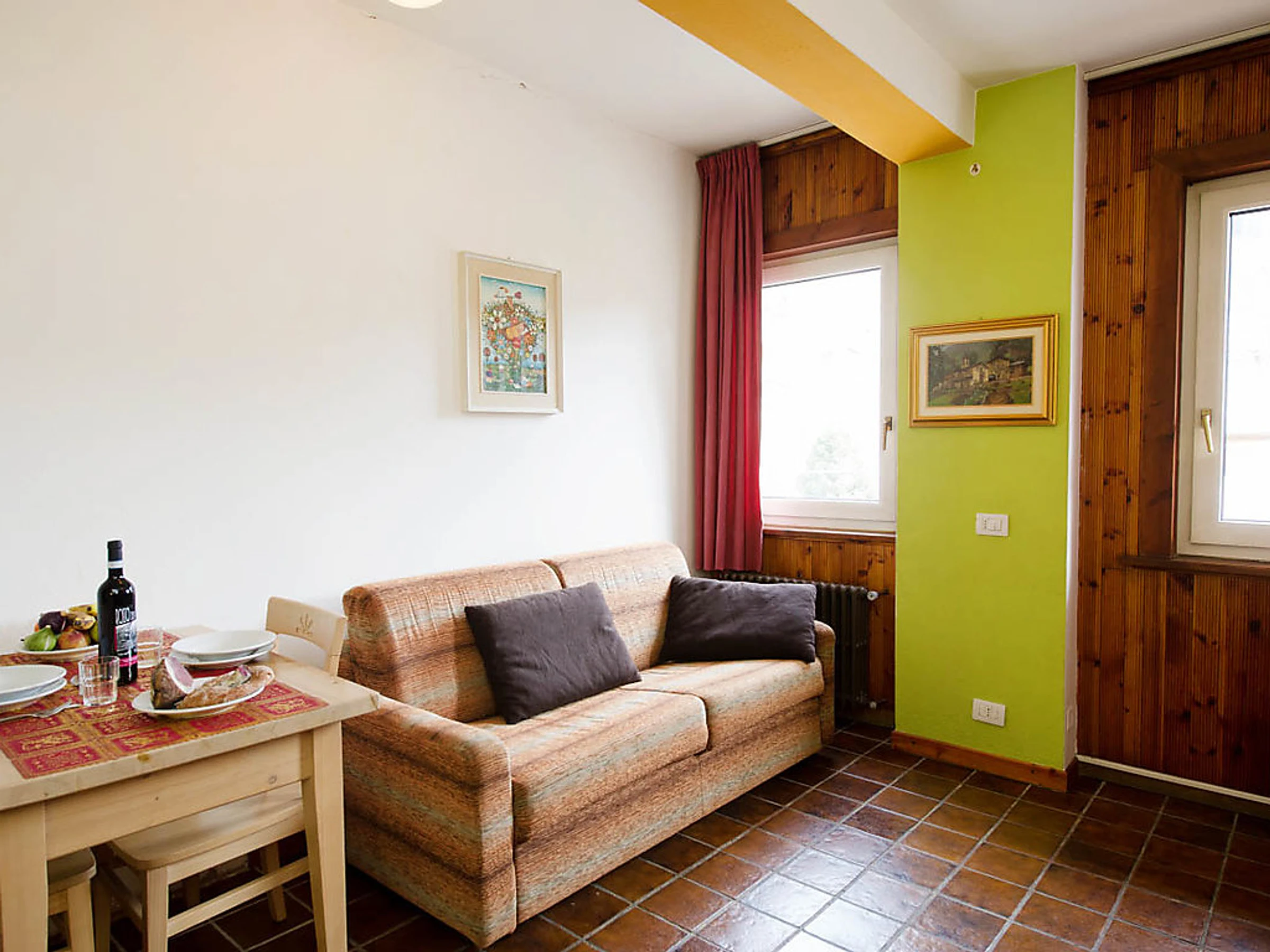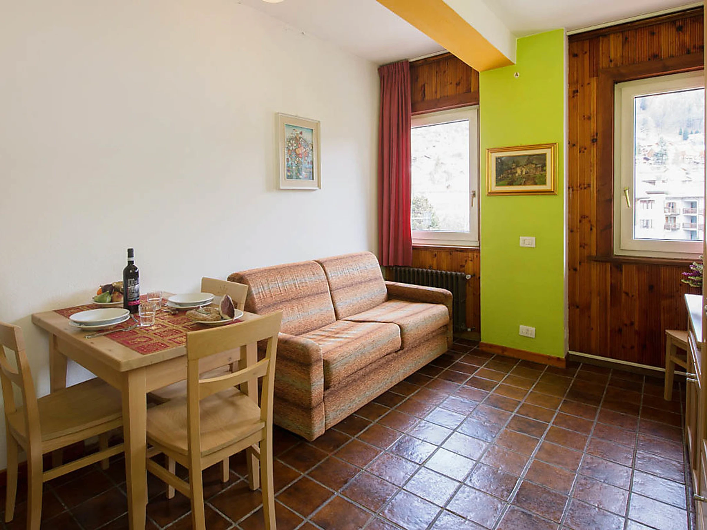Résidence confortable "Residence Betulla", de 3 étages. Au centre de Bormio, situation centrale, ensoleillée, à 700 m des pistes de ski, sur une route principale. Infrastructures de la Maison: local pour les skis. En hiver, merci de prévoir des chaînes. Place de parking (couvert, nombre de places limité) à 150 m parking public possible dans la rue. Magasins 10 m, magasin d'alimentation, supermarché 150 m, location de bicyclettes 250 m, arrêt du bus 10 m, piscine, piscine couverte 150 m, centre thermal 250 m. Terrain de golf 250 m, centre équestre 300 m, téléski, télésiège 700 m. École de ski 500 m, ski de fond 800 m, patinoire 400 m, jeux pour enfants 50 m. Veuillez noter: La photo ne montre qu’un exemple de location de vacances. D’autres appartements sont également proposés à la location dans cette maison de vacances.