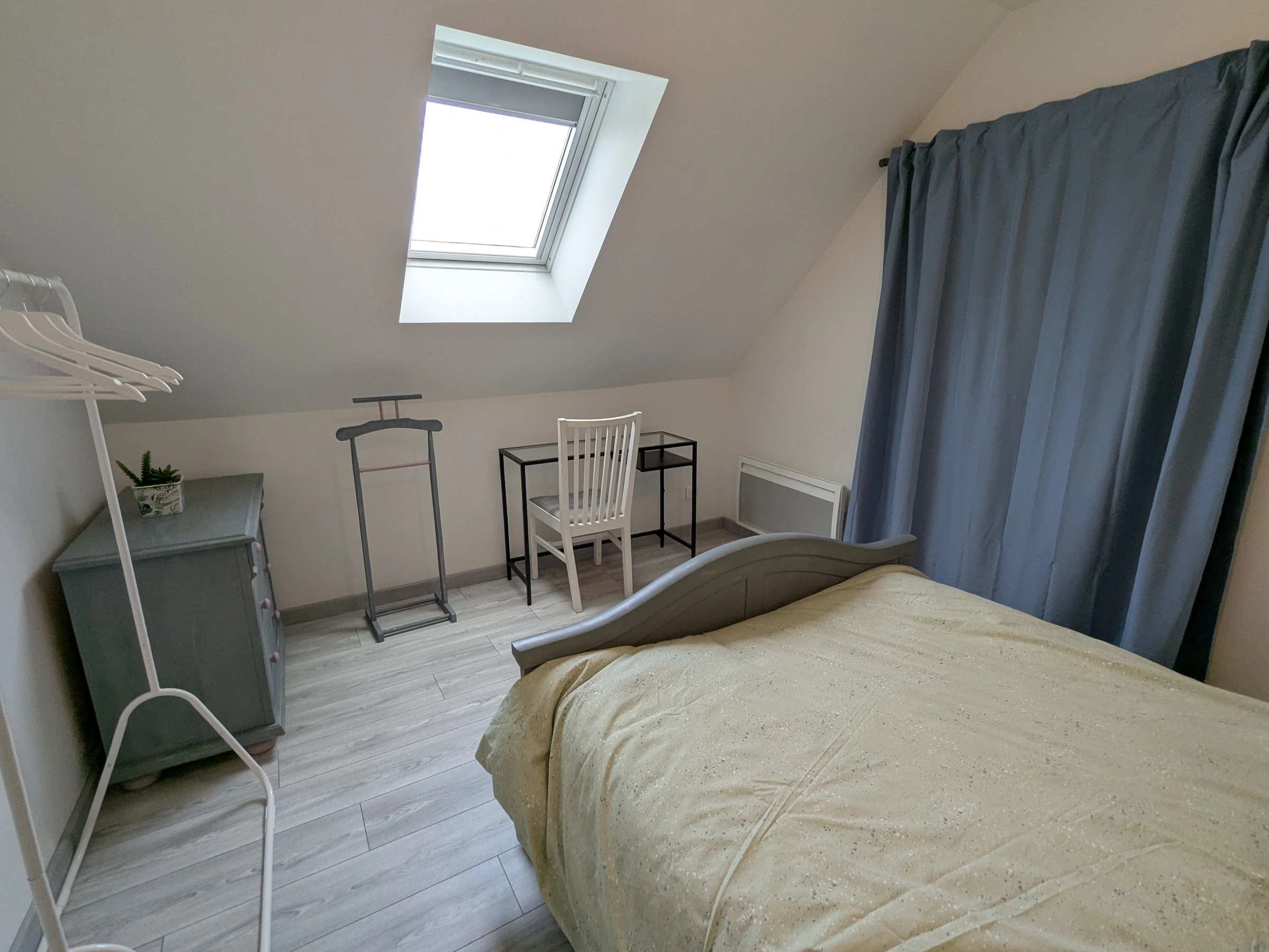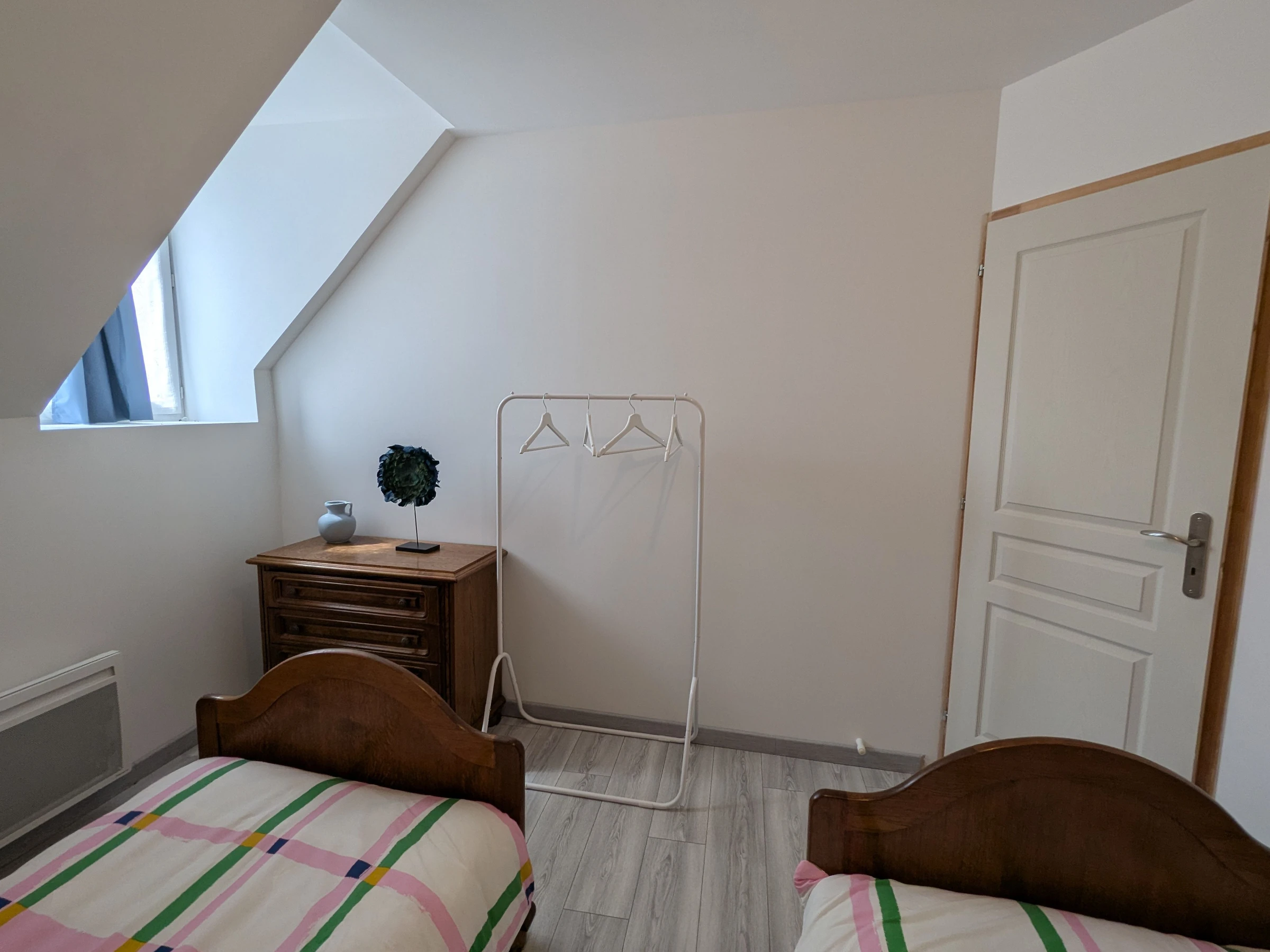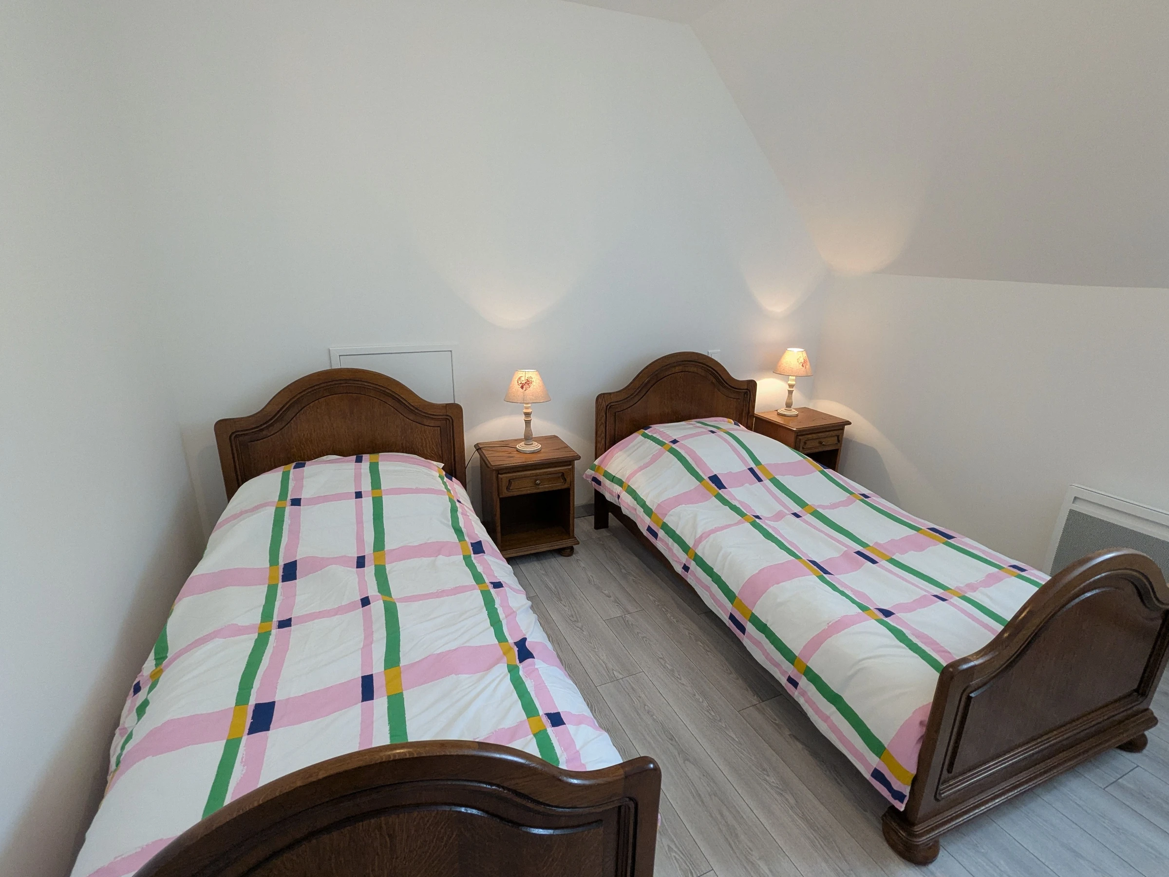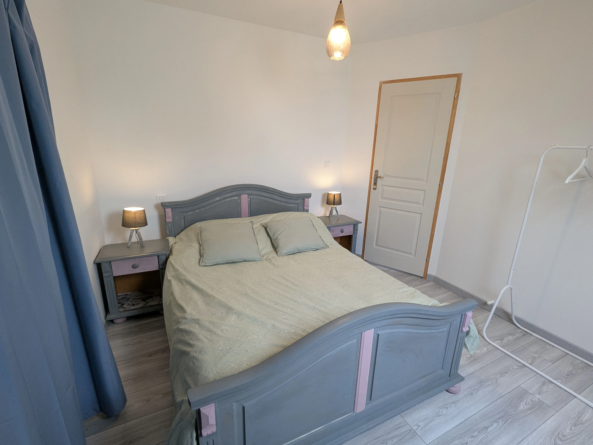 A l'étage, quatre chambres, deux chambres avec chacune un lit double 140x190 cm, une chambre avec deux lits simple 90x190 cm, une chambre avec un lit simple 90x190 cm et un wc indépendant.