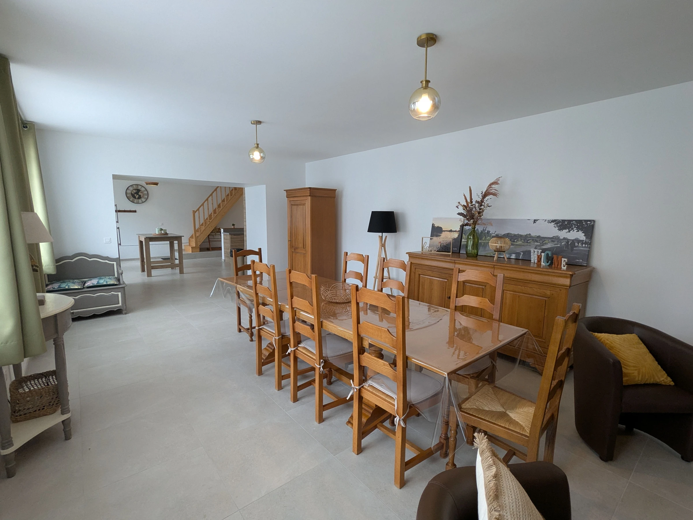 Au rez-de-chaussée, vous profiterez d’une grande pièce de vie de 55 m² avec un salon confortable, une salle à manger chaleureuse et une cuisine ouverte équipée, idéale pour préparer vos repas en toute convivialité. Egalement deux salles d'eau dont une avec wc.