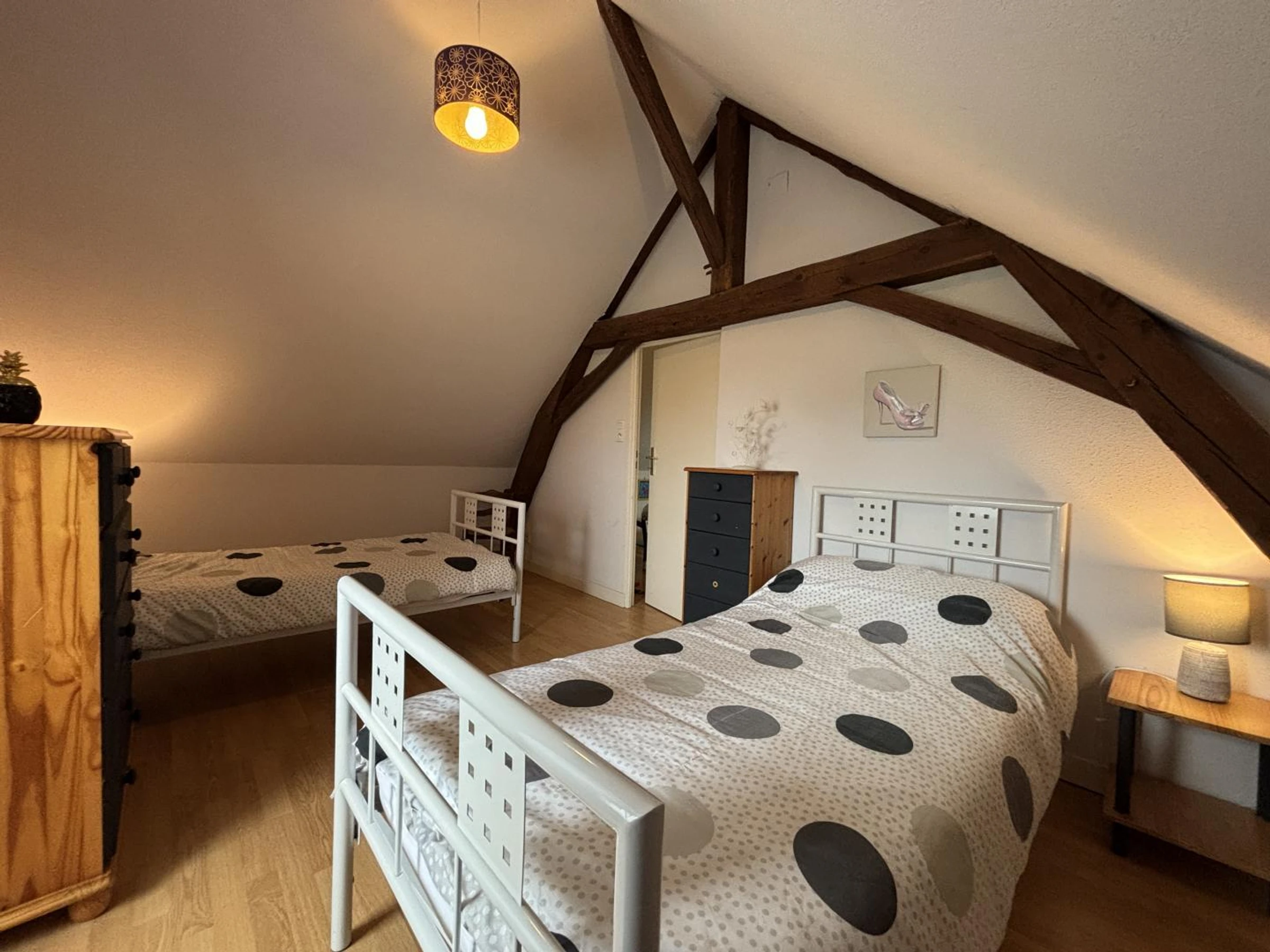 Rez-de-chaussée : cuisine, séjour, 1 chambre (1 lit 160), salle d'eau (douche), wc indépendant. Étage : 1 chambre (1 lit 2 pers.), 1 chambre (2 lits 1 pers.), salle d'eau (douche/wc).