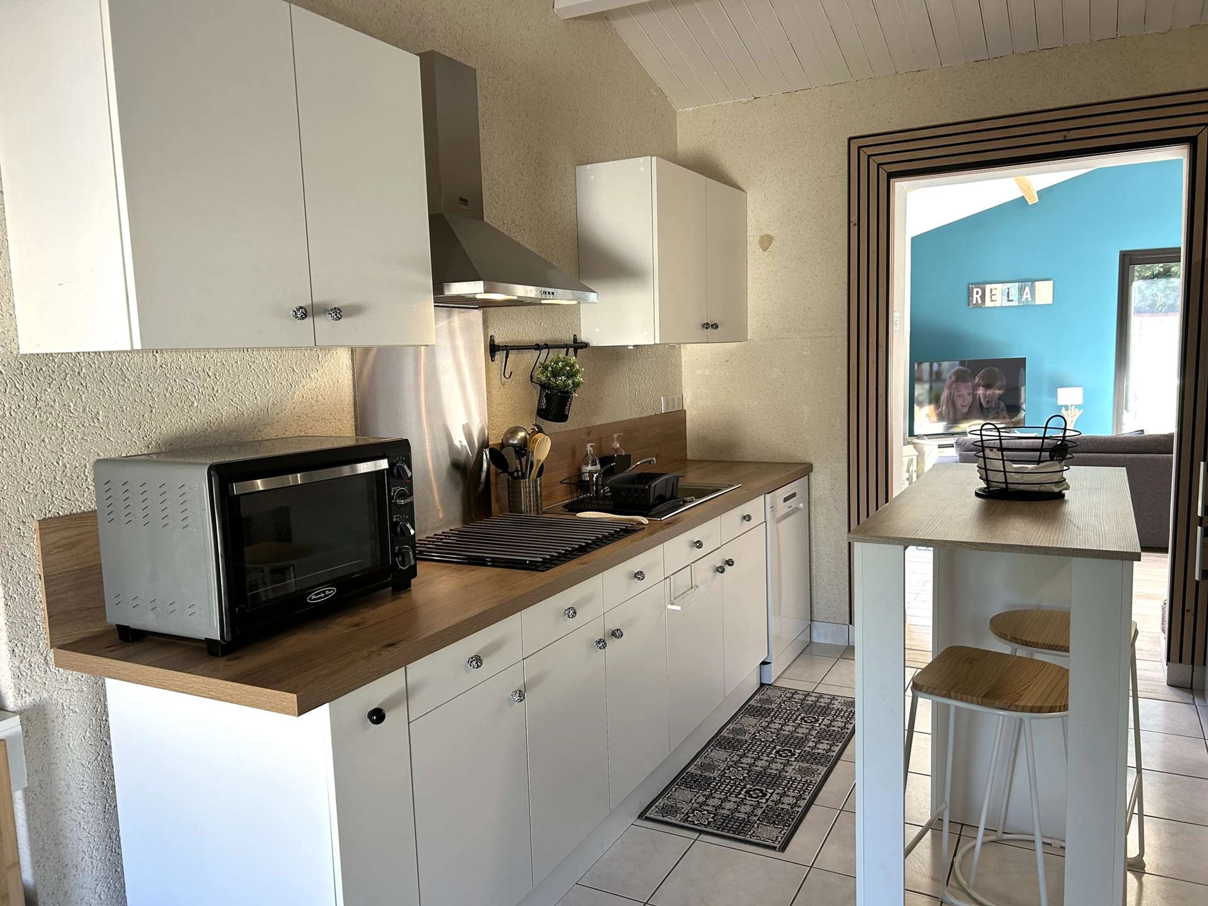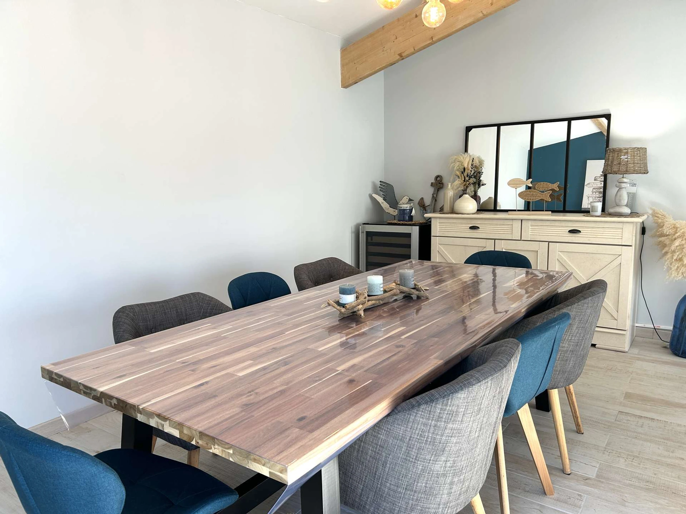 Les Plus de cette location à la mer : dans un quartier tranquille, vous apprécierez la terrasse avec salon de jardin, une cuisine d'été est à votre disposition, coin détente et terrain de boules, la plage des Dunes est à environ 1000m, Ménage fin de séjour inclus.