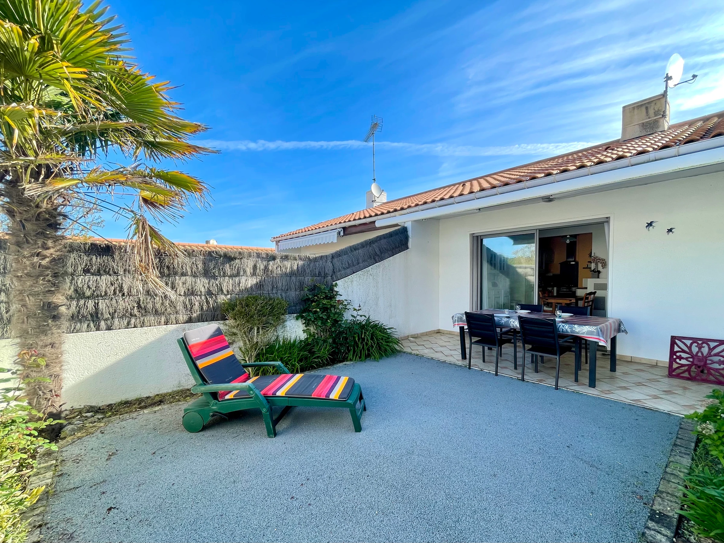 Vous apprécierez: la situation au calme d'un quartier résidentiel mais à 2 pas du coeur de bourg ainsi que l'agréable patio pour y prendre vos repas à l'ombre du store banne ou pour "chiller" sur les transats.