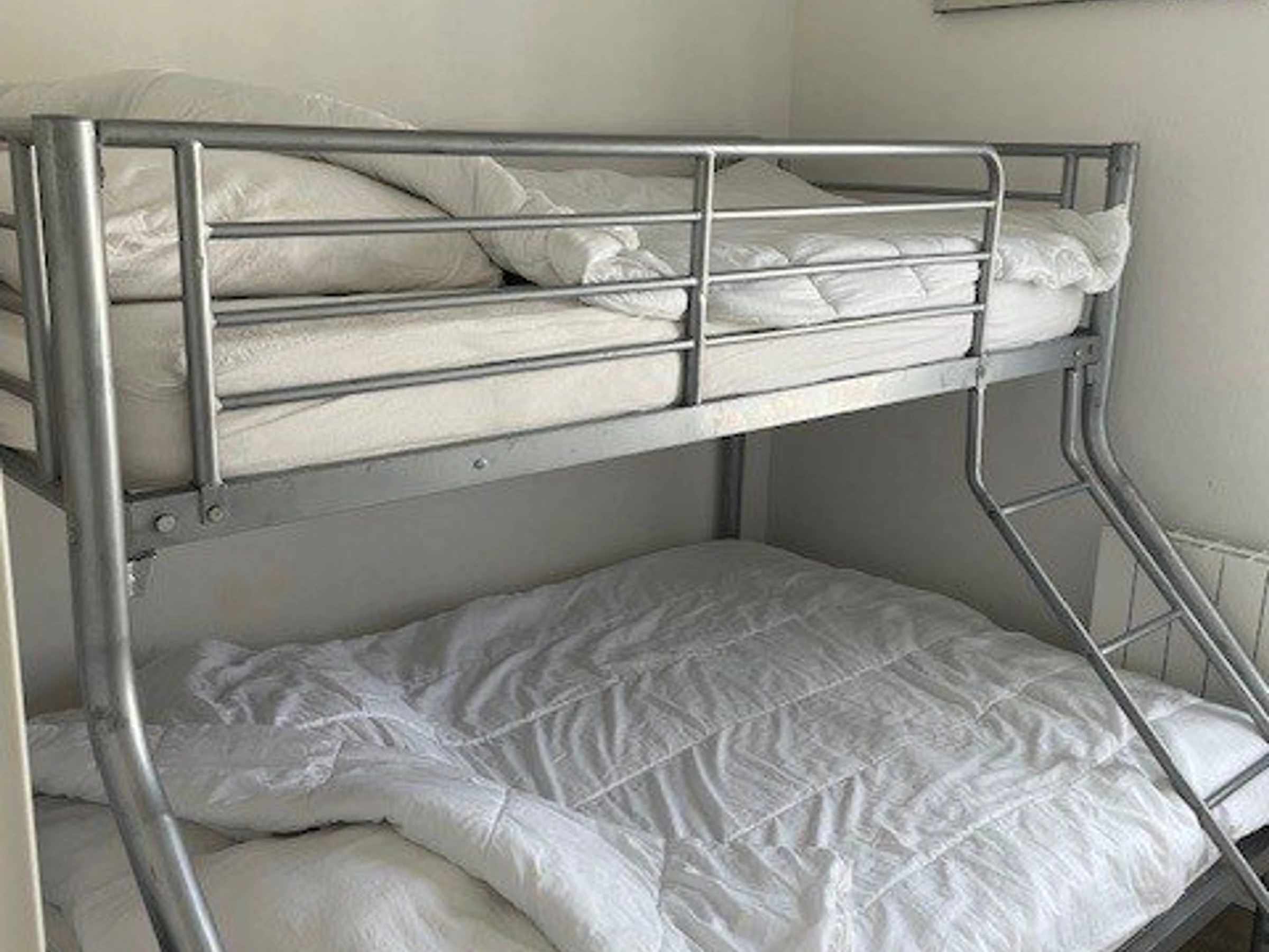 Une chambre avec un placard de rangement et lit mezzanine double 140 simple 90.