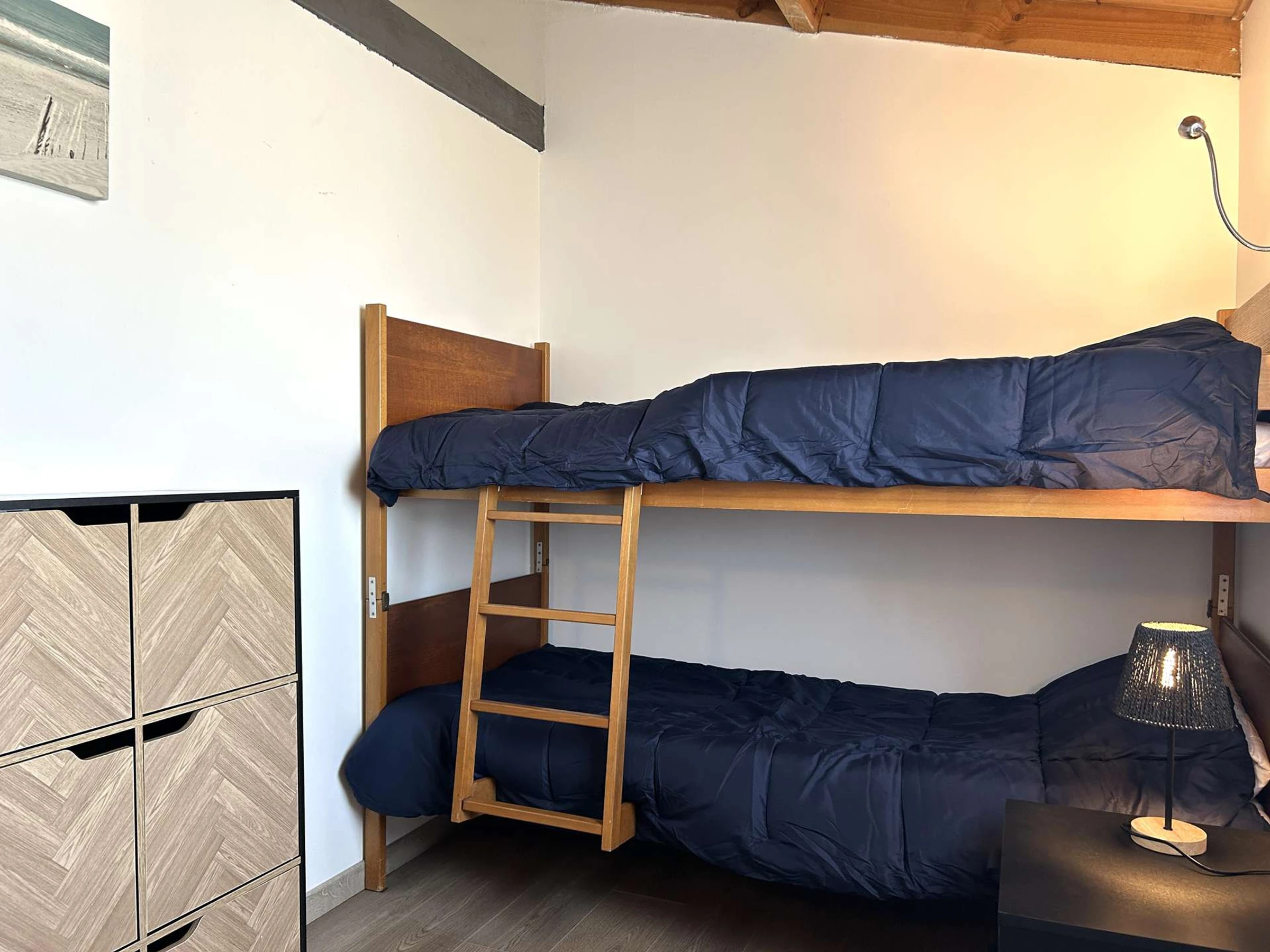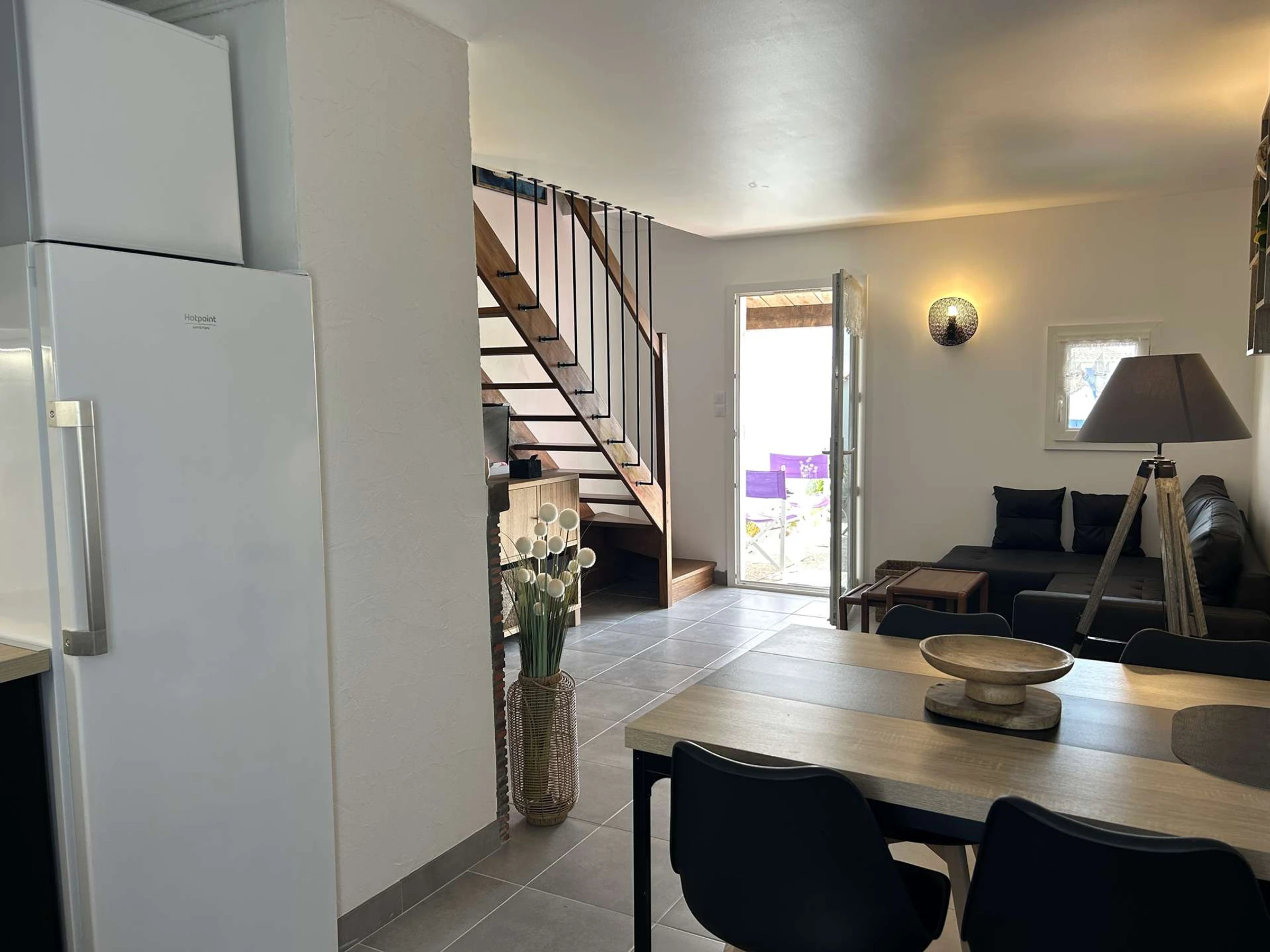 A proximité de la Mer et 1km500 du centre de la station, la Résidence Les Fermes Marines se compose de pavillons mitoyens. Cette maison de vacances rénovée comprend un coin-cuisine aménagé ( micro-ondes, réfrigérateur et four), un séjour avec une télévision , un wc ; A l'étage : deux chambres totalisant 1 lit double, 2 lits simples et une chauffeuse, une salle d'eau avec lave-linge.
