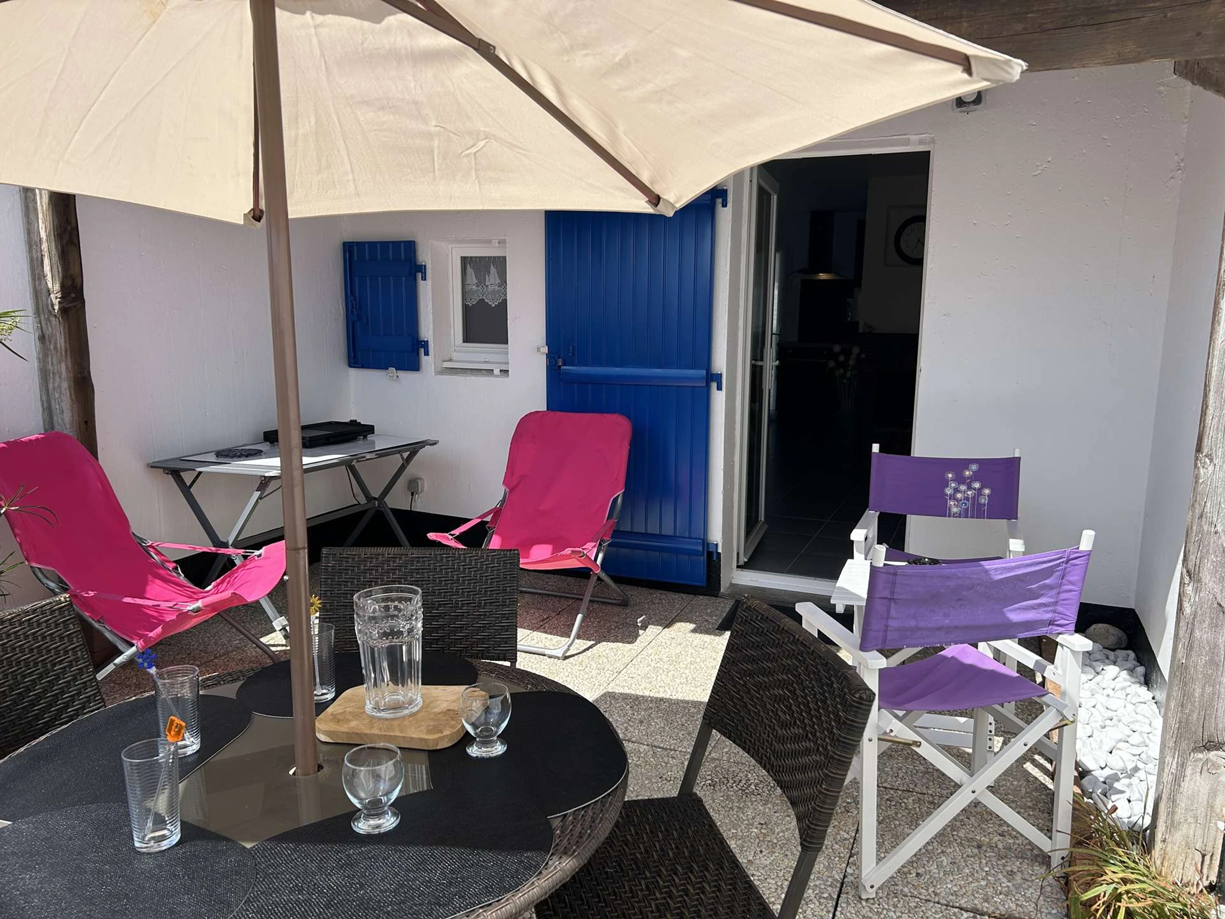 Les Plus de cette location à la mer : piscine chauffée et sécurisée ouverte de mi-juin et mi-septembre et tennis, patio en partie couvert avec salon de jardin, plancha électrique, parking privé. Accès Wifi. Ménage avec désinfection inclus.