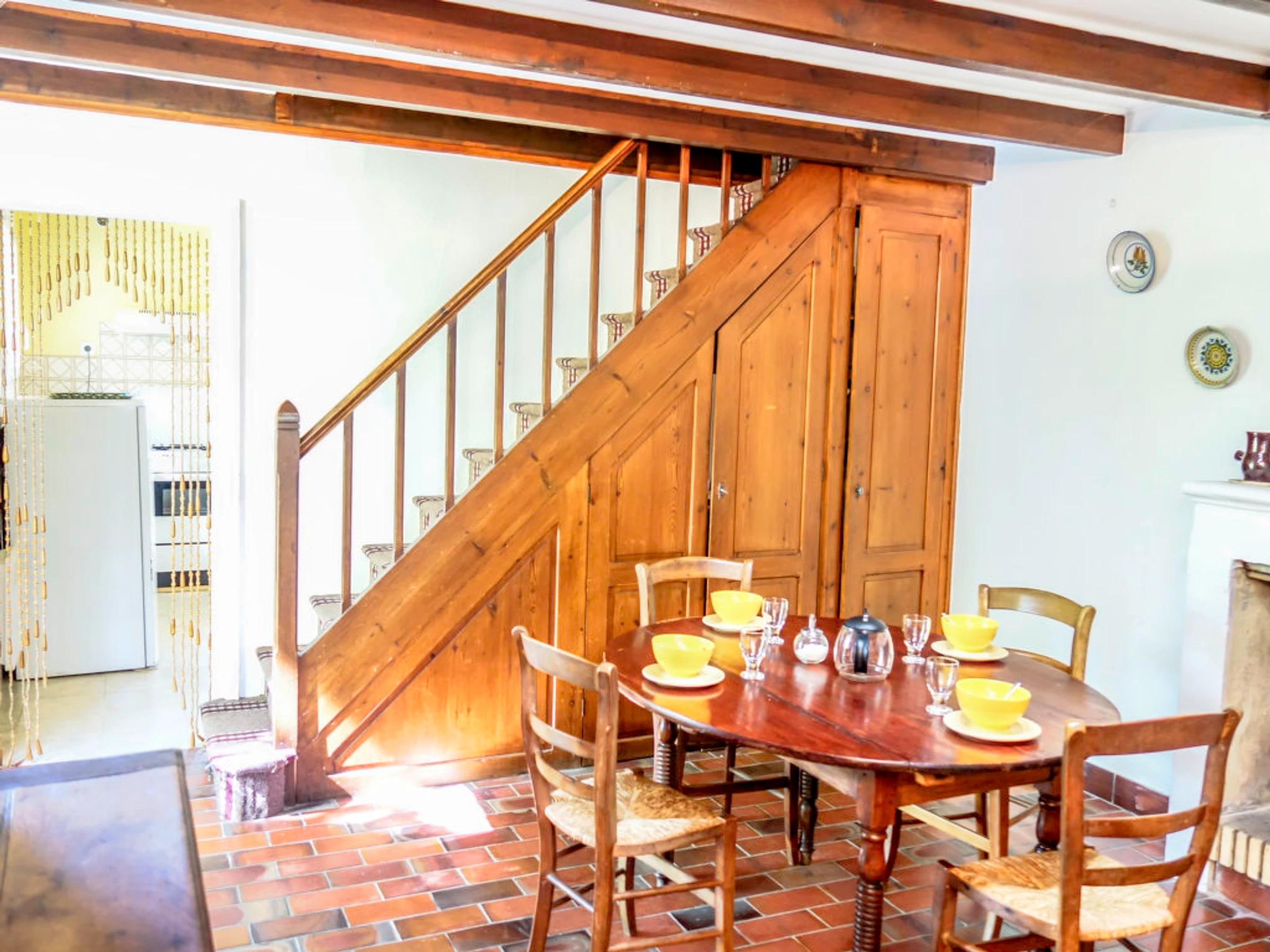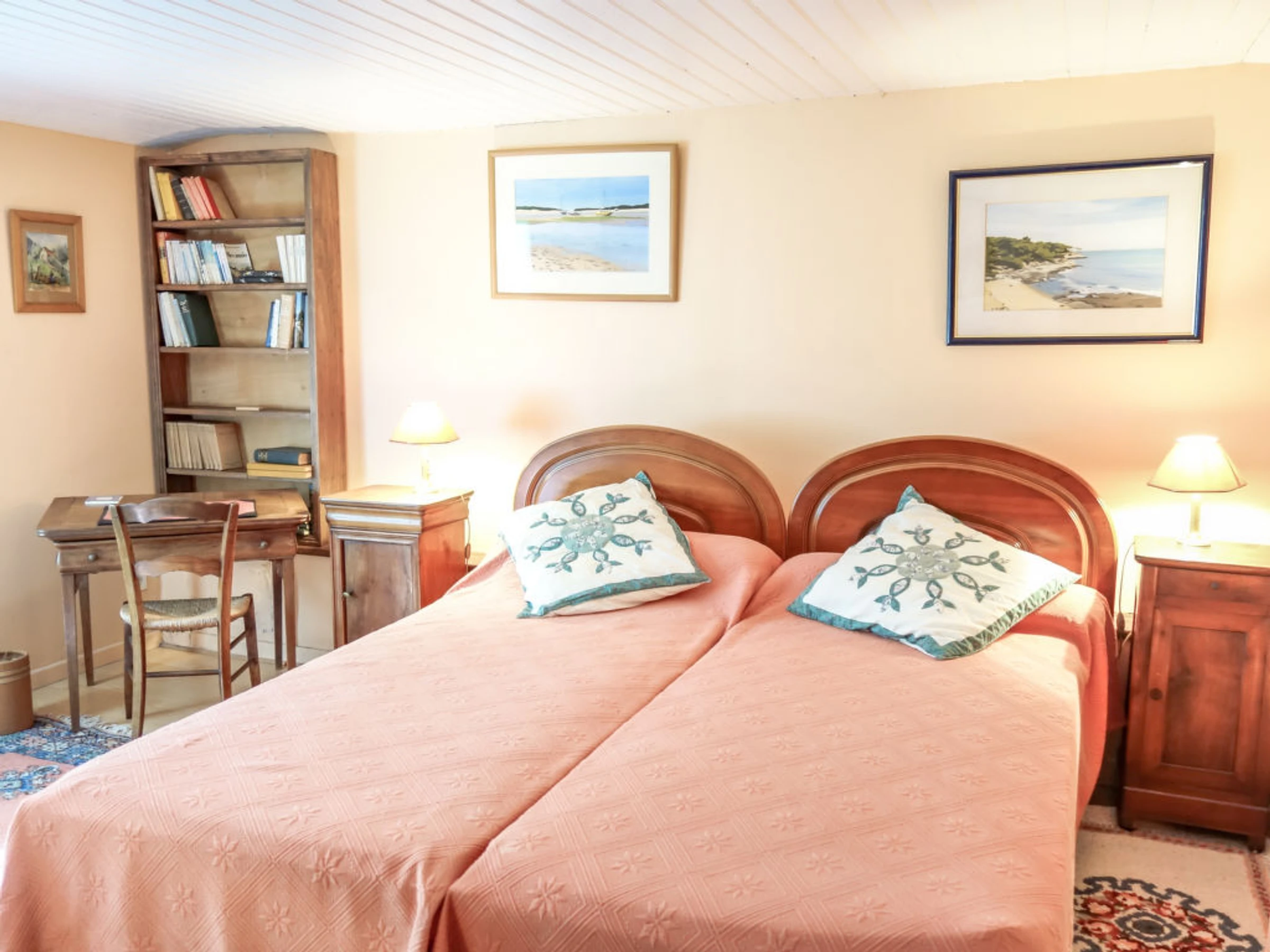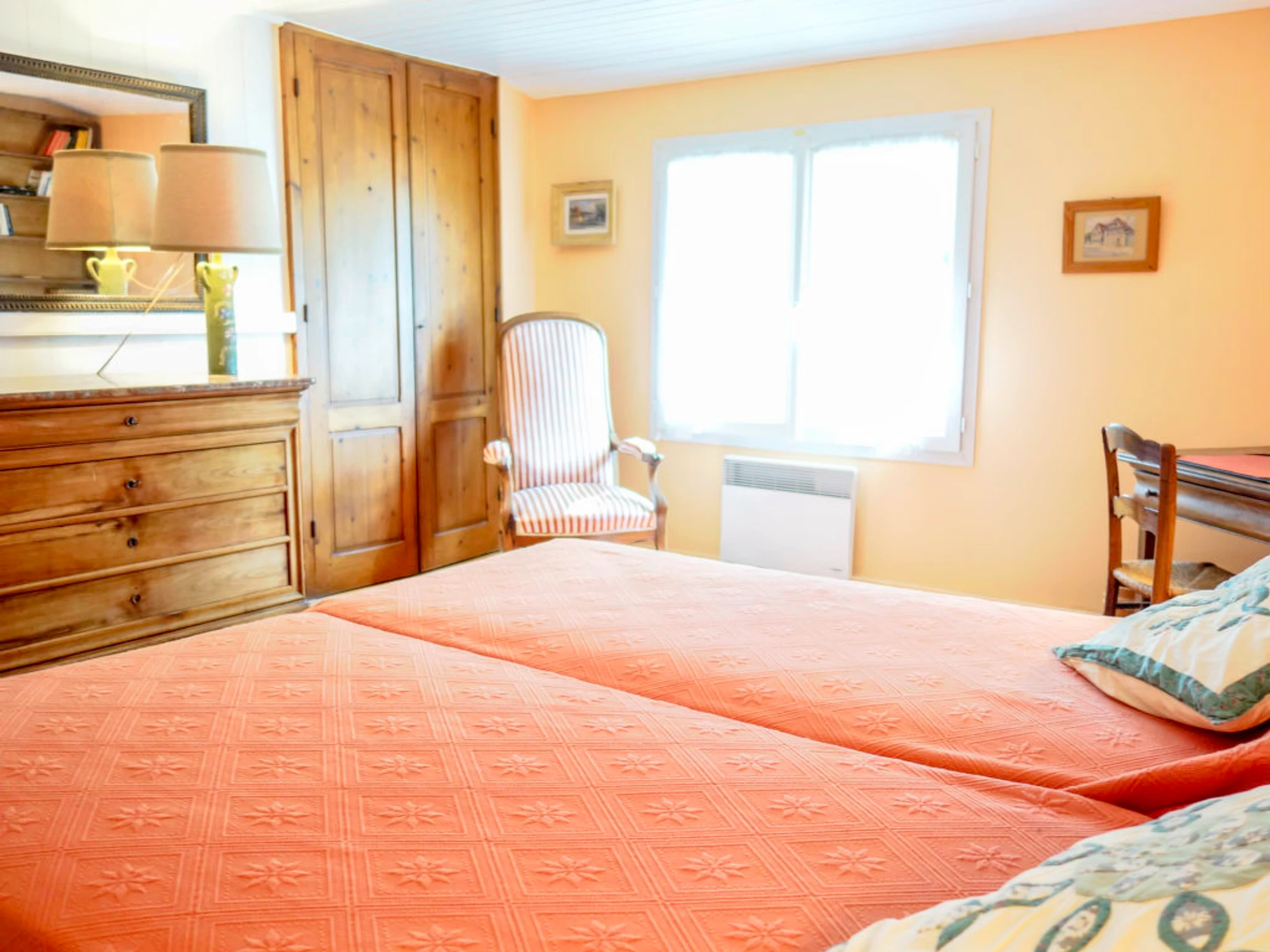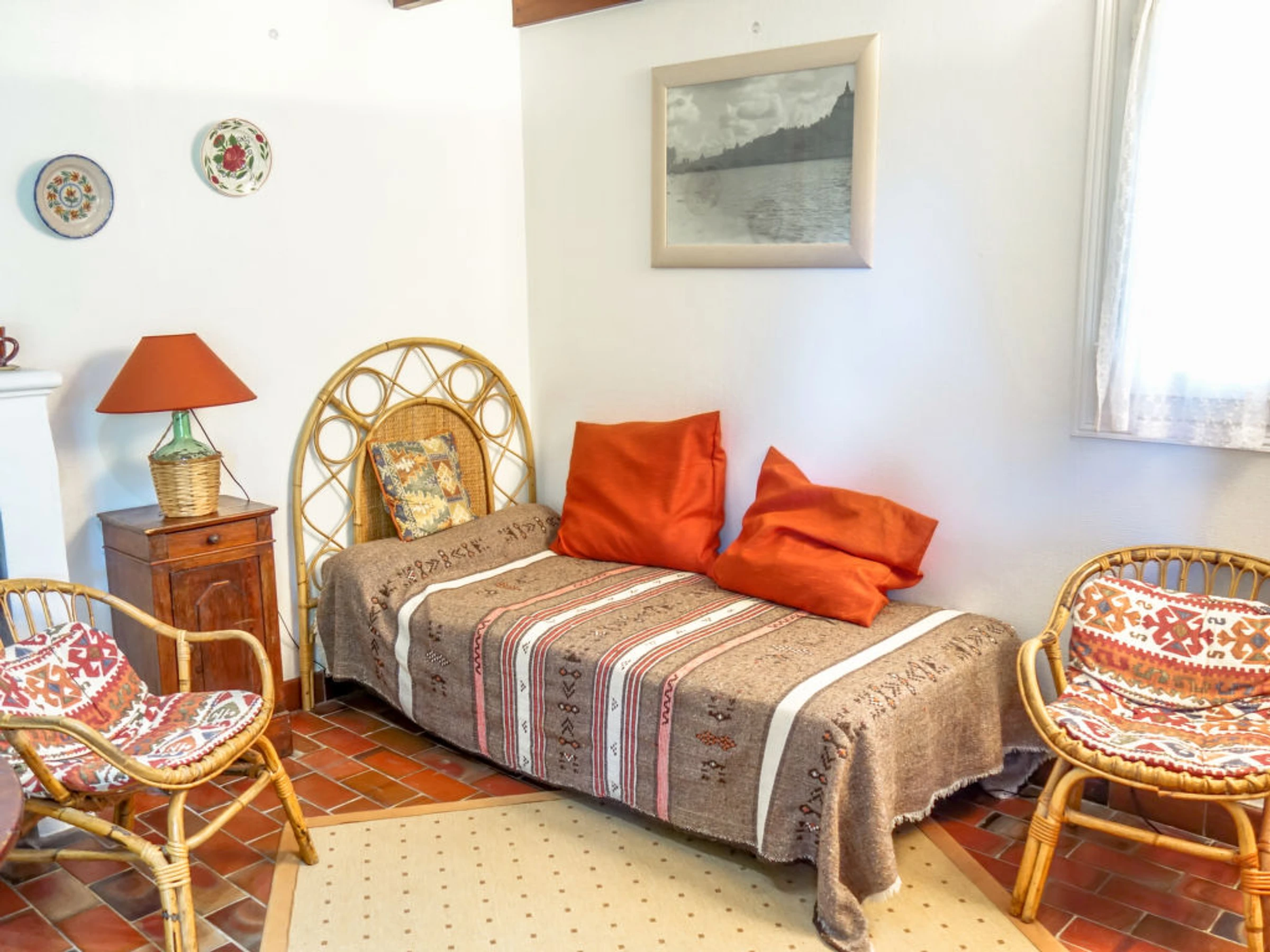 Breuillet à 10 km de Royan: Maison individuelle "Le Courtil 1", de 2 étages. En bordure de la localité, à 1.5 km du centre de Breuillet, situation tranquille, à 10 km de la mer, à 10 km de la plage, dans la verdure, orientée sud-est. En commun: terrain, jardin entretenu (pas clôturé) avec pelouse et arbres, place de parking (pour 2 voitures) sur le terrain. Magasins 1.5 km, magasin d'alimentation 1.5 km, supermarché 1.5 km, restaurant 1.5 km, boulangerie 1.5 km, gare ferroviaire "Royan" 9 km, plage de sable 10 km. Veuillez noter: voiture recommandée. Le propriétaire habite sur le même terrain. La propriété référencée fr3226.401.1 est située sur le même terrain.