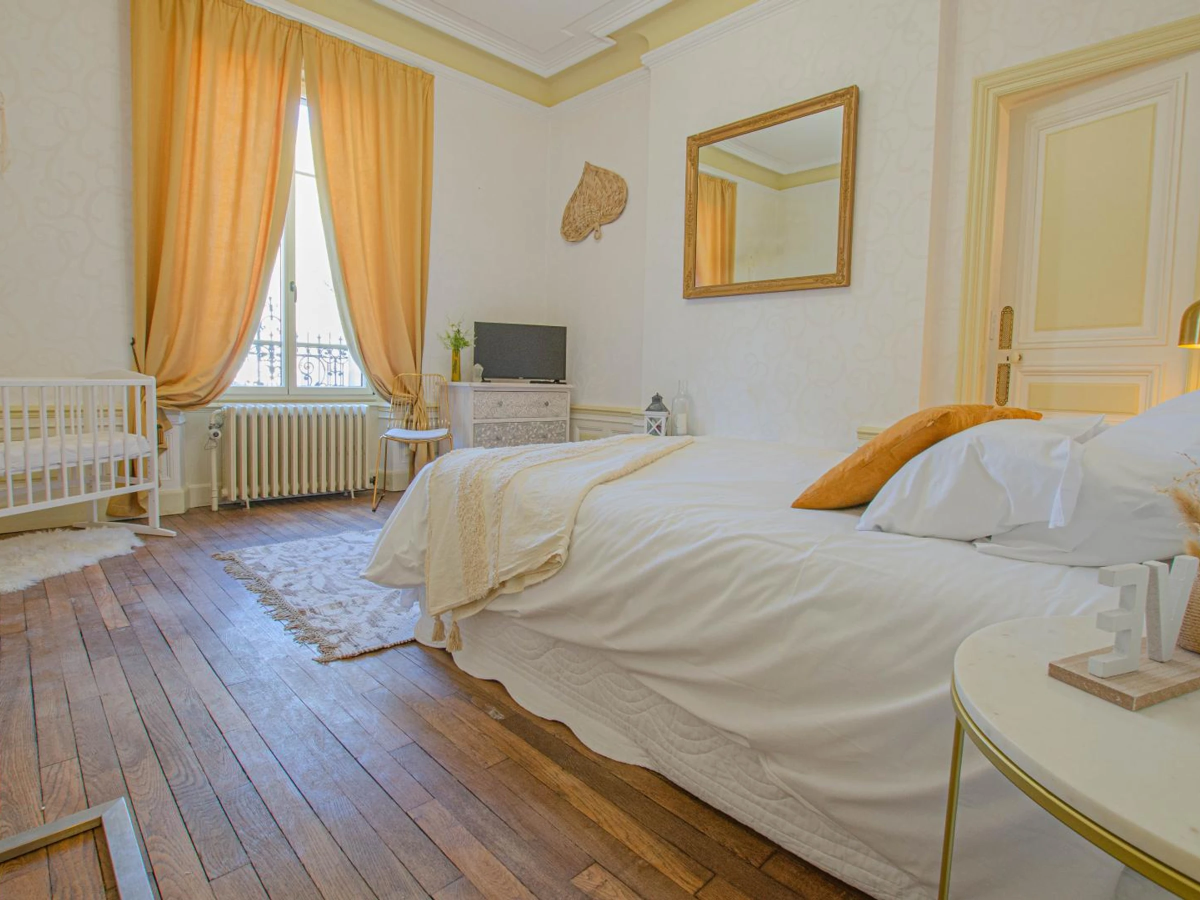 Au rez-de-chaussée surélevé, vous disposerez d'une salle à manger, d'une cuisine spacieuse, d'une chambre double et d'une suite composée d'une chambre double (lit 160x200) avec sa salle de bain privative (baignoire, vasque, WC). Au 1er étage : vous aurez à disposition une chambre double (lits 160x200), une chambre triple (lit 160x200 + fauteuil convertible 90x190), une chambre composée de 3 lits simples (fauteuils convertibles confortables de 90x190) et une salle d'eau (douche, double vasque, table à langer, WC) ainsi que d'un espace détente sur la mezzanine. Au 2ème étage, vous accèderez à une chambre double (lit 160x200), à un espace bien-être (sauna, douche, vasque, WC) et à un spacieux salon convivial. A l'extérieur, vous profiterez d'une terrasse privative avec salon de jardin, pergola, barbecue, transats, salon détente et d'un jardin avec spa nordique. Parking gratuit dans la rue devant la maison. Commerces et commodités sur place. L'Instant Champenois – Propriété d'exception aux portes de Troyes.