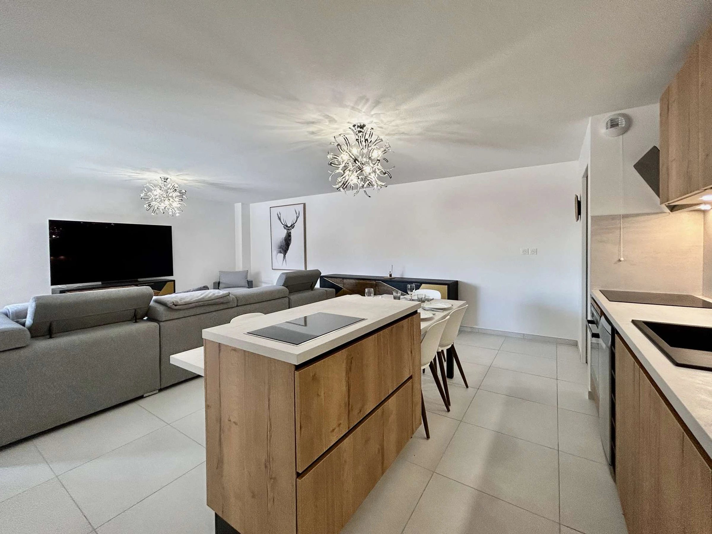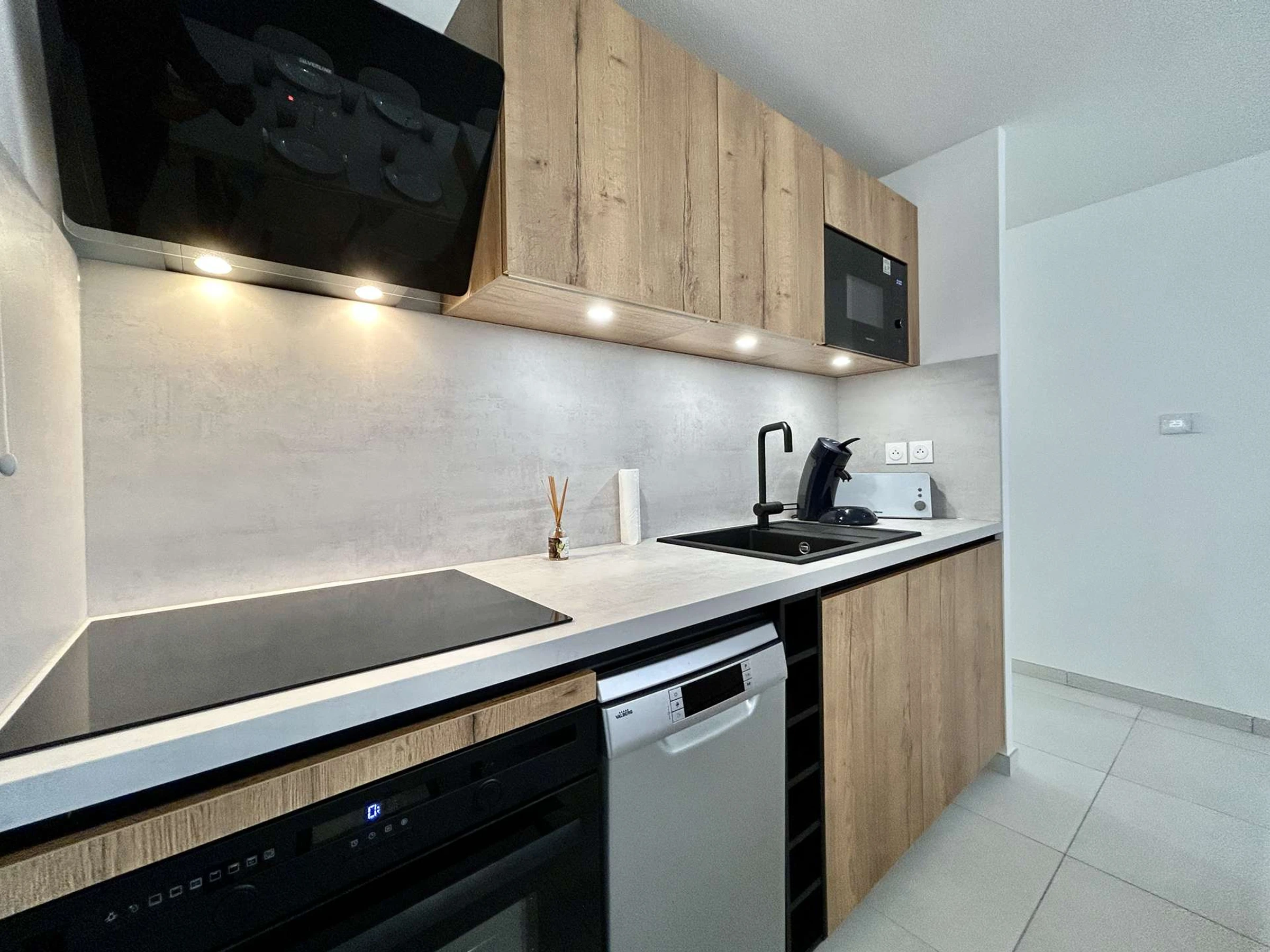 - d'un coin cuisine avec micro-ondes, four, plaque induction, lave-vaisselle...