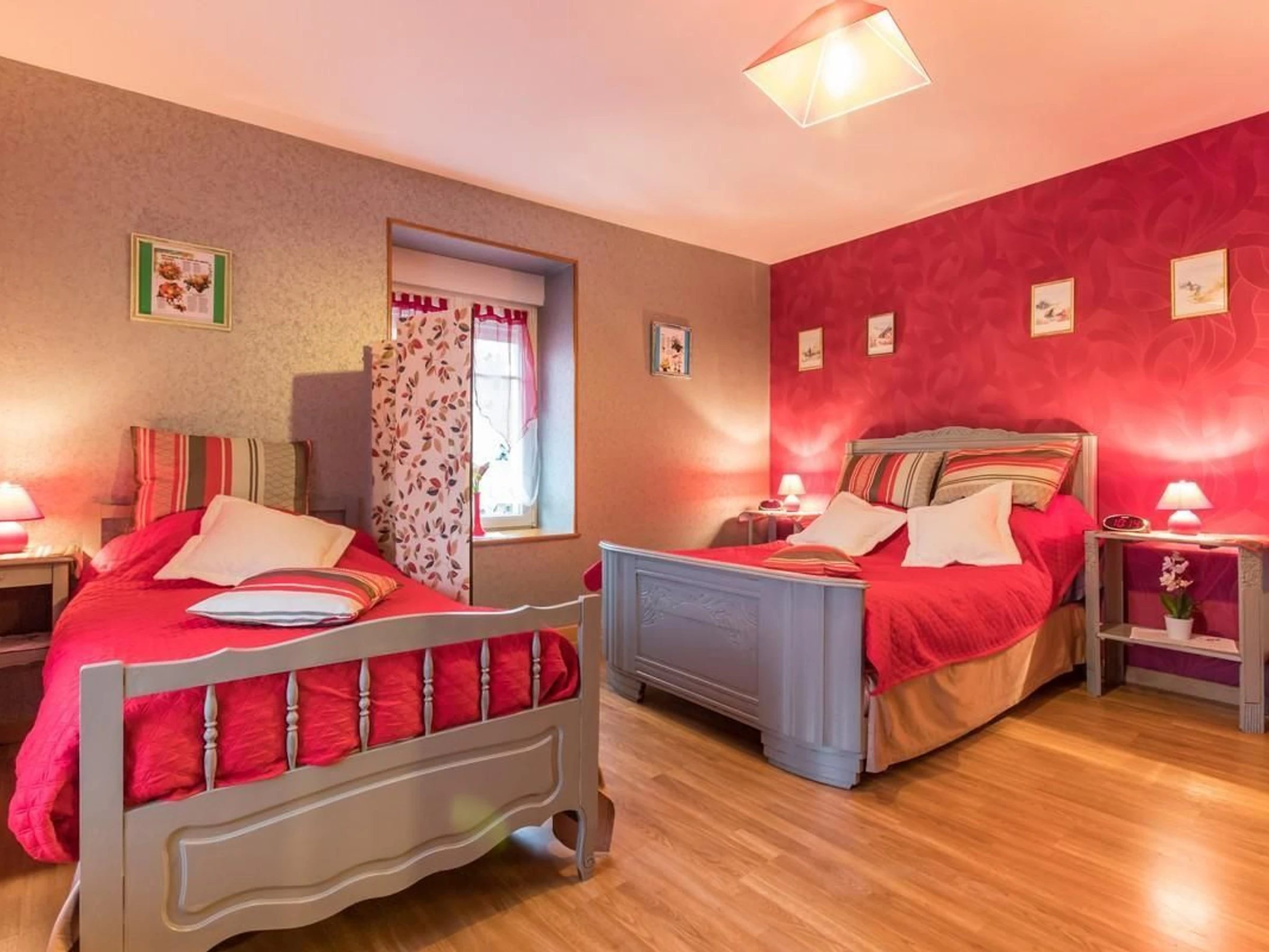 À l'étage: 1 chambre (1 lit 2 personnes - 1 lit 1 personne), 1 chambre (1 lit 2 personnes, 1 lit 1 personne). Ces deux chambres peuvent être communicantes.  Une chambre (1 lit 2 personnes 160x190 cm, 1 lit 1 personne, 1 lit bébé). Une chambre avec 1 lit 140/190. Salle de bains. WC.