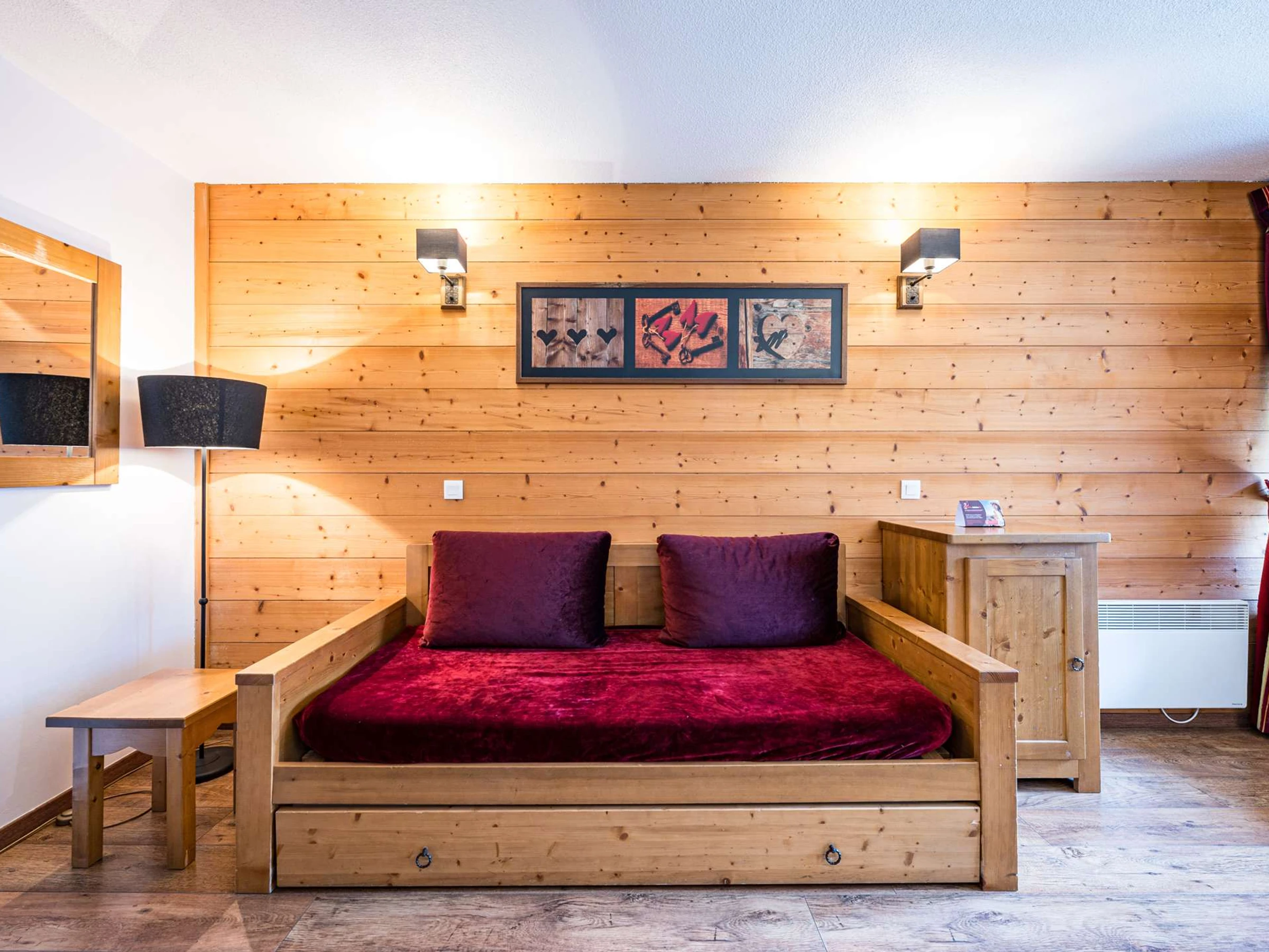 • Un espace salon avec canapé-lit (140x190) équipé d’un vrai matelas et sommier,