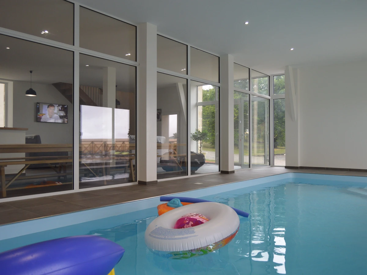 Cette maison à l'ambiance moderne avec piscine intérieure chauffée à 28°C toute l'année (3 x 8 mètres) et grande terrasse donnant sur la campagne est située à 2h30 au Sud de Paris, à 5 minutes d'une sortie de l'A20, à 15 minutes de Châteauroux et 5 minutes de Levroux.