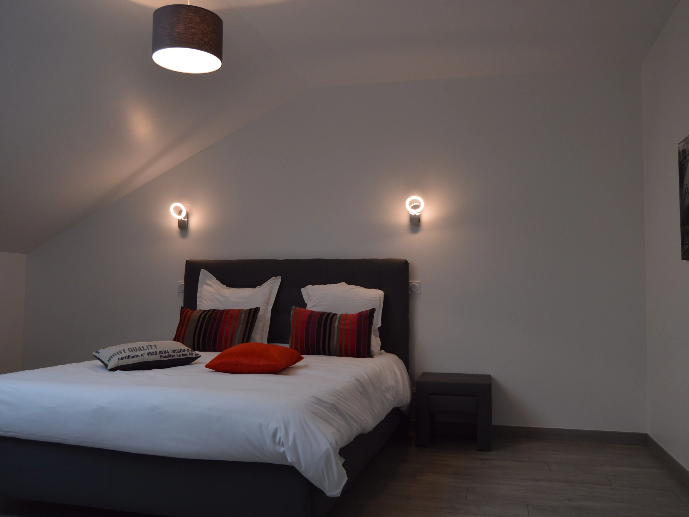 A l'étage : 4 chambres avec salle d'eau/wc privatifs (1 lit de 160 cm et un canapé-lit dans chaque chambre).