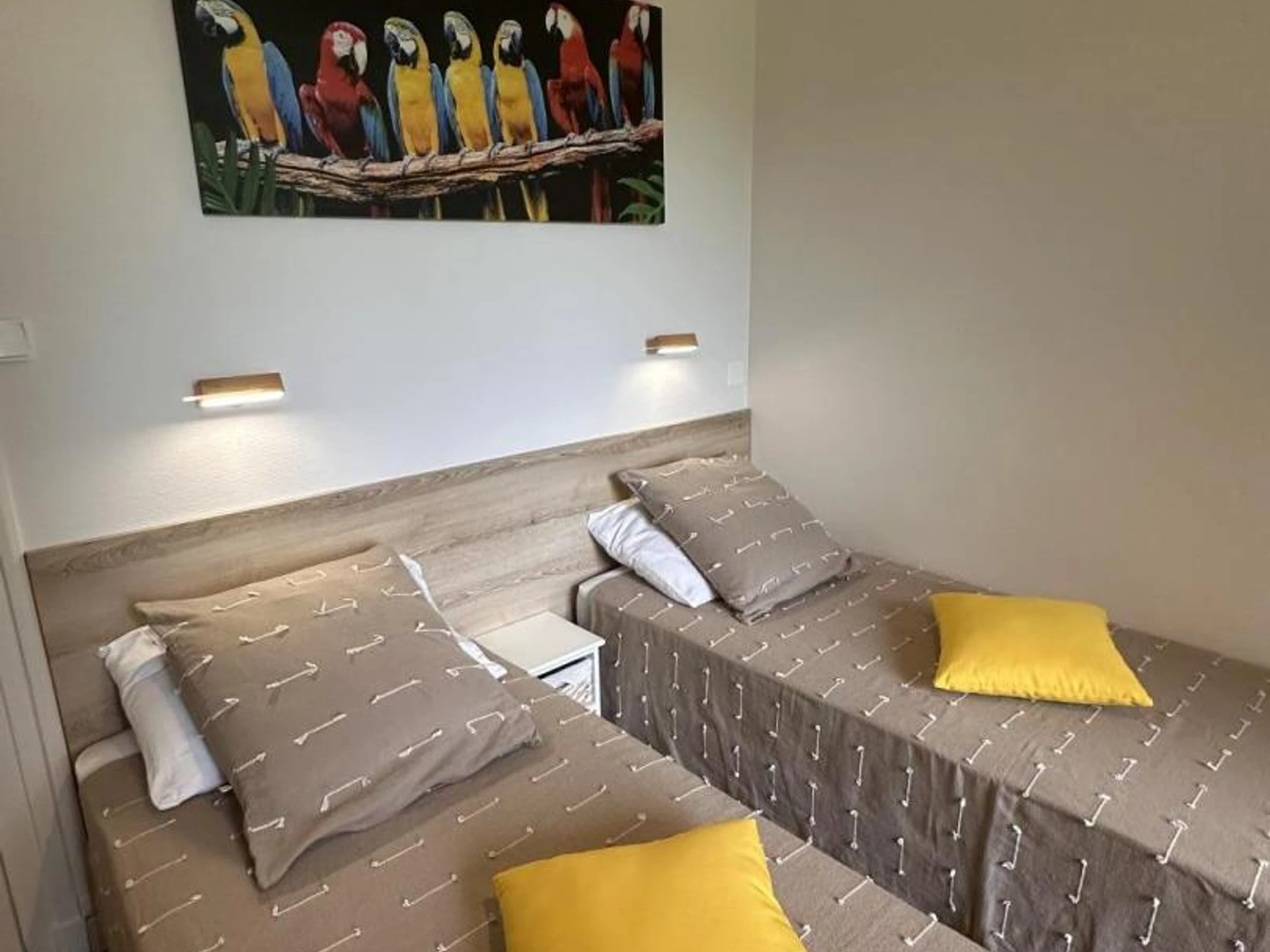 Cuisine ouverte sur le séjour, une chambre pour 2 personnes (1 lit 160 x 200 cm), une chambre pour 2 personnes (2 lits de 80 x 200 cm), une salle d'eau (douche et WC).