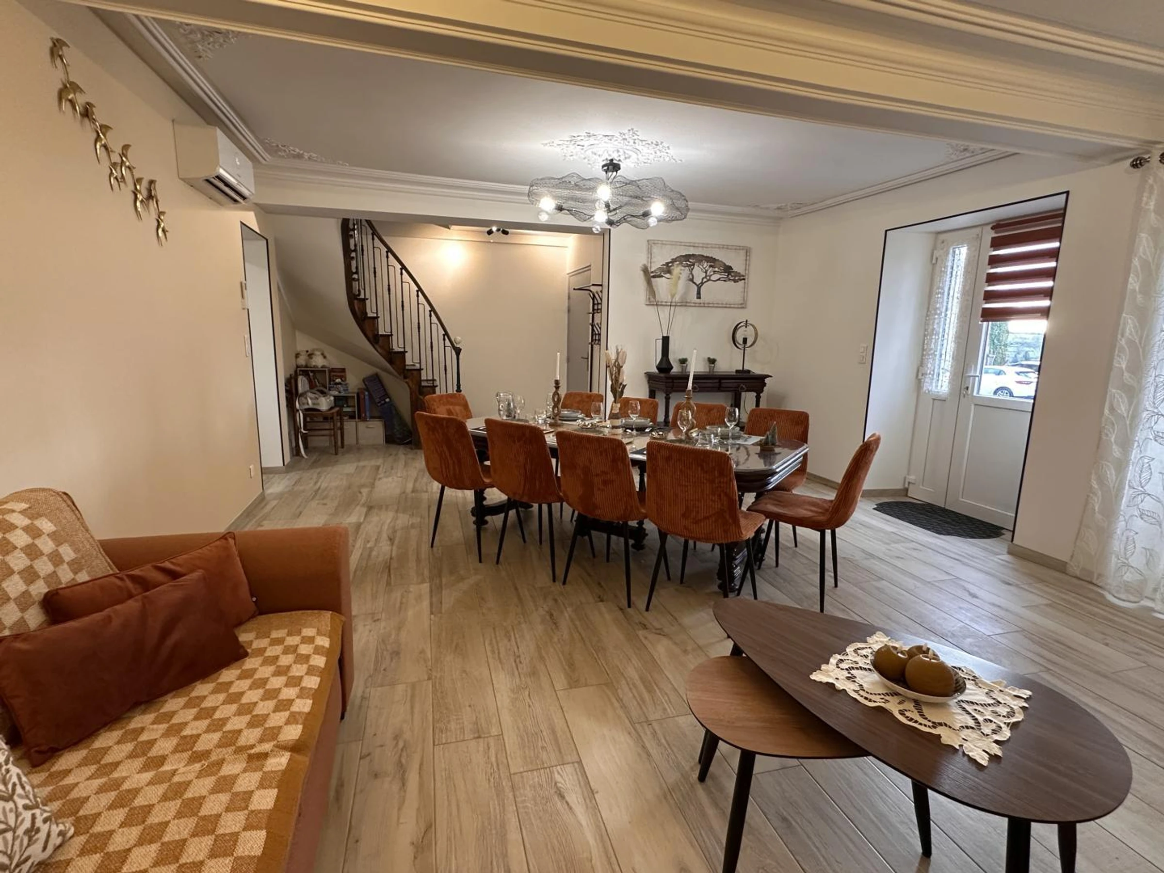 1er étage : 3 chambres pour 2 personnes dont 1 avec salle d'eau privative (douche), WC indépendant, salle d'eau (douche). Le jardin entoure le gîte, offrant un espace de jeu pour les enfants et des zones propices à la détente. La climatisation réversible ajoute un véritable confort.