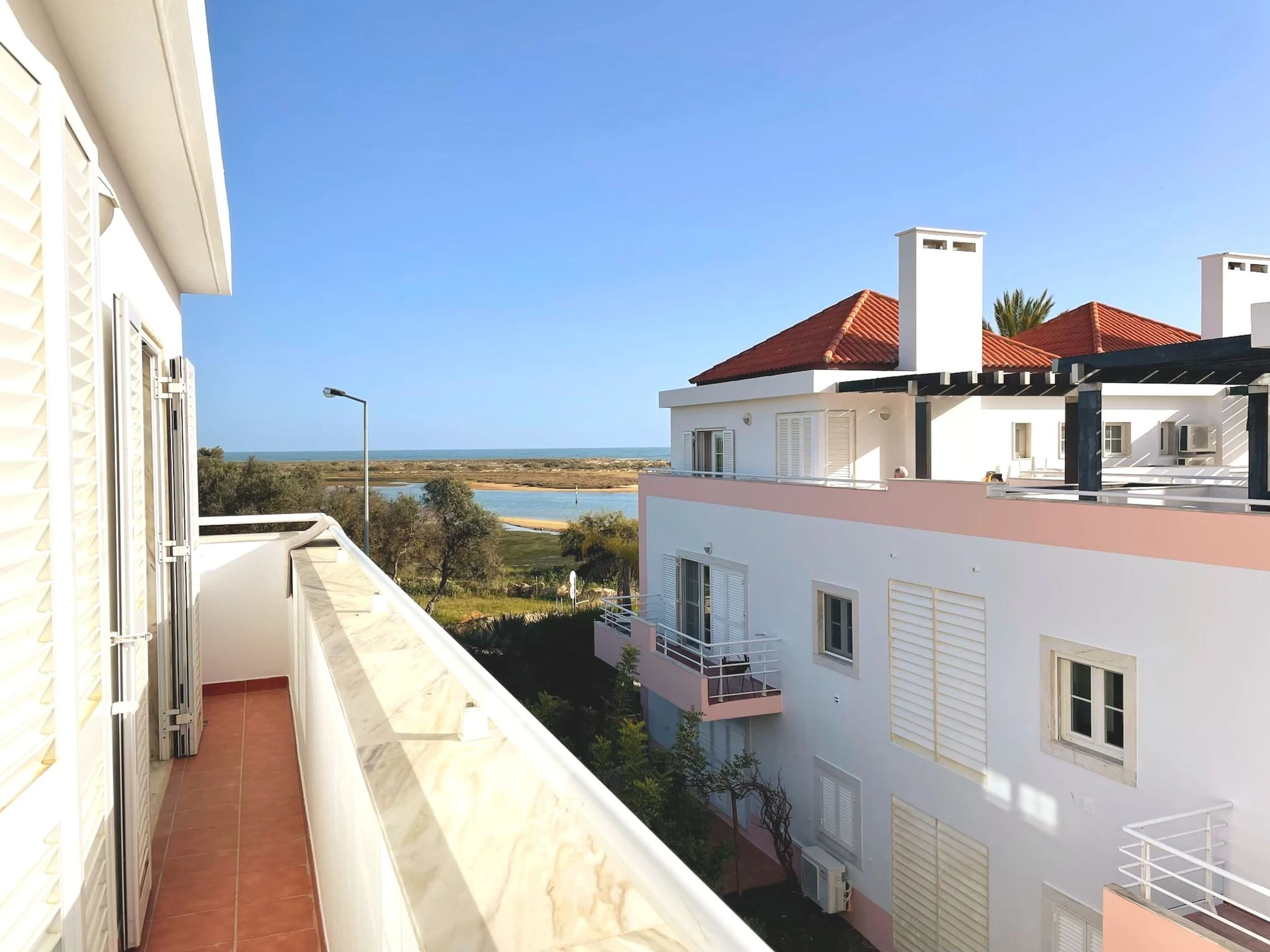 Un appartement éblouissant, avec un intérieur contemporain lumineux offrant une vue sur la Ria Formosa et au-delà. Le logement en duplex comprend un magnifique espace de vie ouvert, 2 chambres généreuses avec salle de bain attenante et des balcons où vous pouvez prendre votre petit-déjeuner ou vous détendre sur le canapé confortable pour profiter d'un ou deux verres au coucher du soleil ! Situé en bordure de rivière, le bateau de l'île de la plage n'est qu'à 150 m, et le charmant village de pêcheurs de Cabanas avec ses délicieux restaurants peut être atteint en seulement 2 minutes de marche.