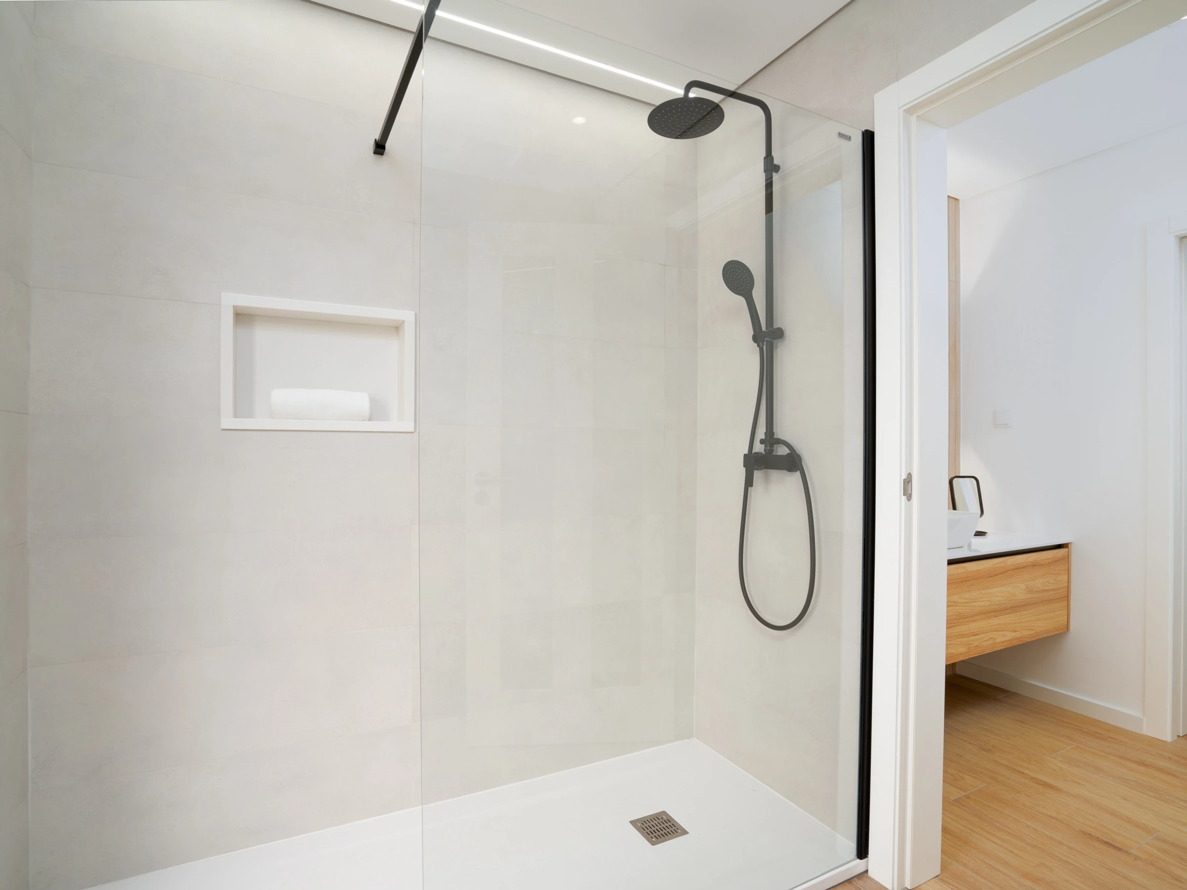 Cet appartement moderne de plain-pied présente un séjour et une salle à manger lumineux et aérés, parfaits pour se détendre ou recevoir, et disposant également d'un internet fibre haut débit. La cuisine de style galerie est entièrement équipée d'appareils contemporains, comprenant un four, une plaque de cuisson, un lave-vaisselle, un lave-linge, et tous les ustensiles et équipements de cuisine essentiels. Il y a deux chambres spacieuses, chacune avec un lit king-size. Une chambre dispose d'une salle de douche attenante, tandis que l'autre partage une salle de douche séparée.