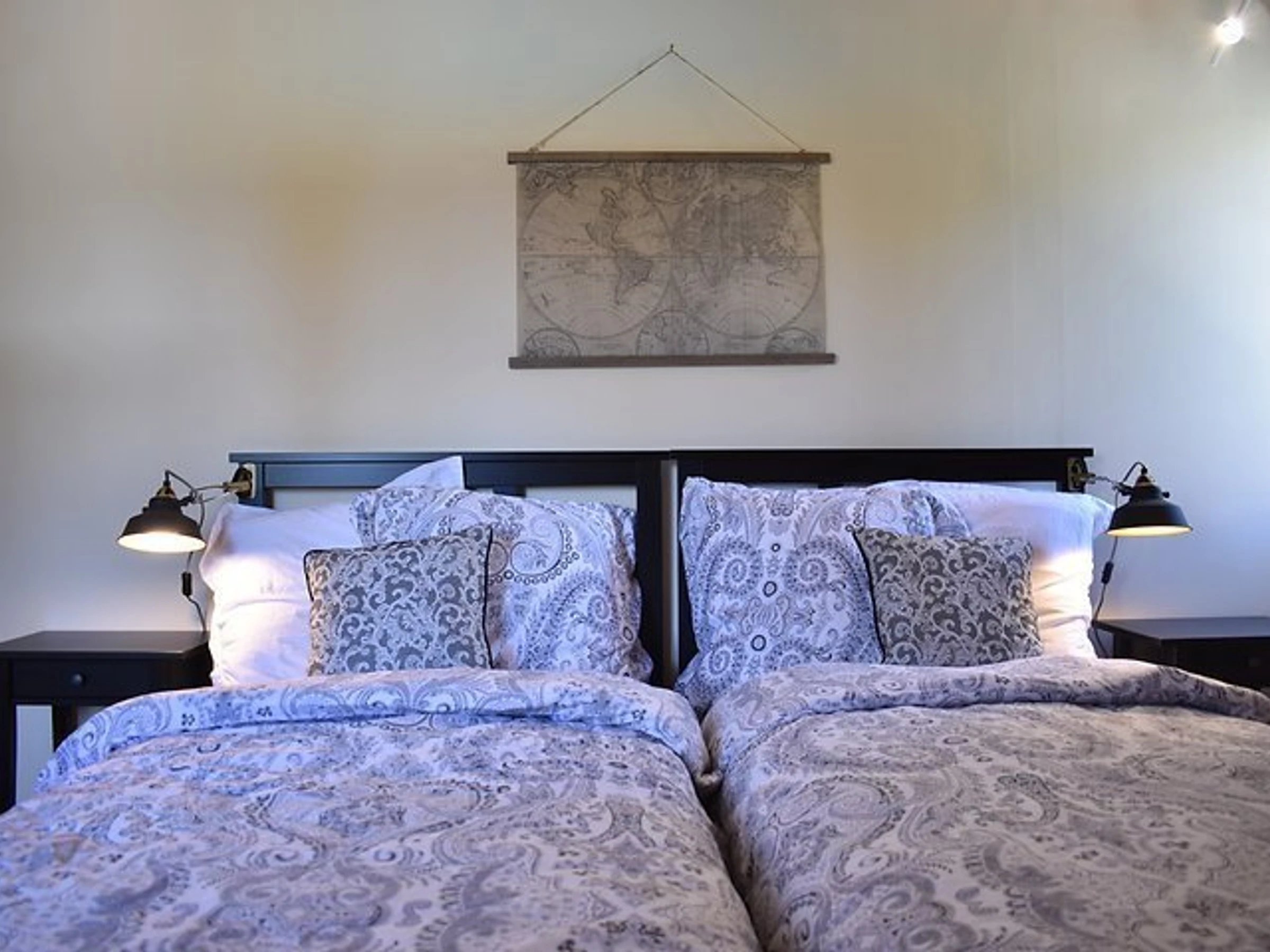 Depuis le salon, un escalier en bois massif mène au premier étage où se trouvent trois grandes chambres: deux chambres doubles et une chambre avec deux lits simples.