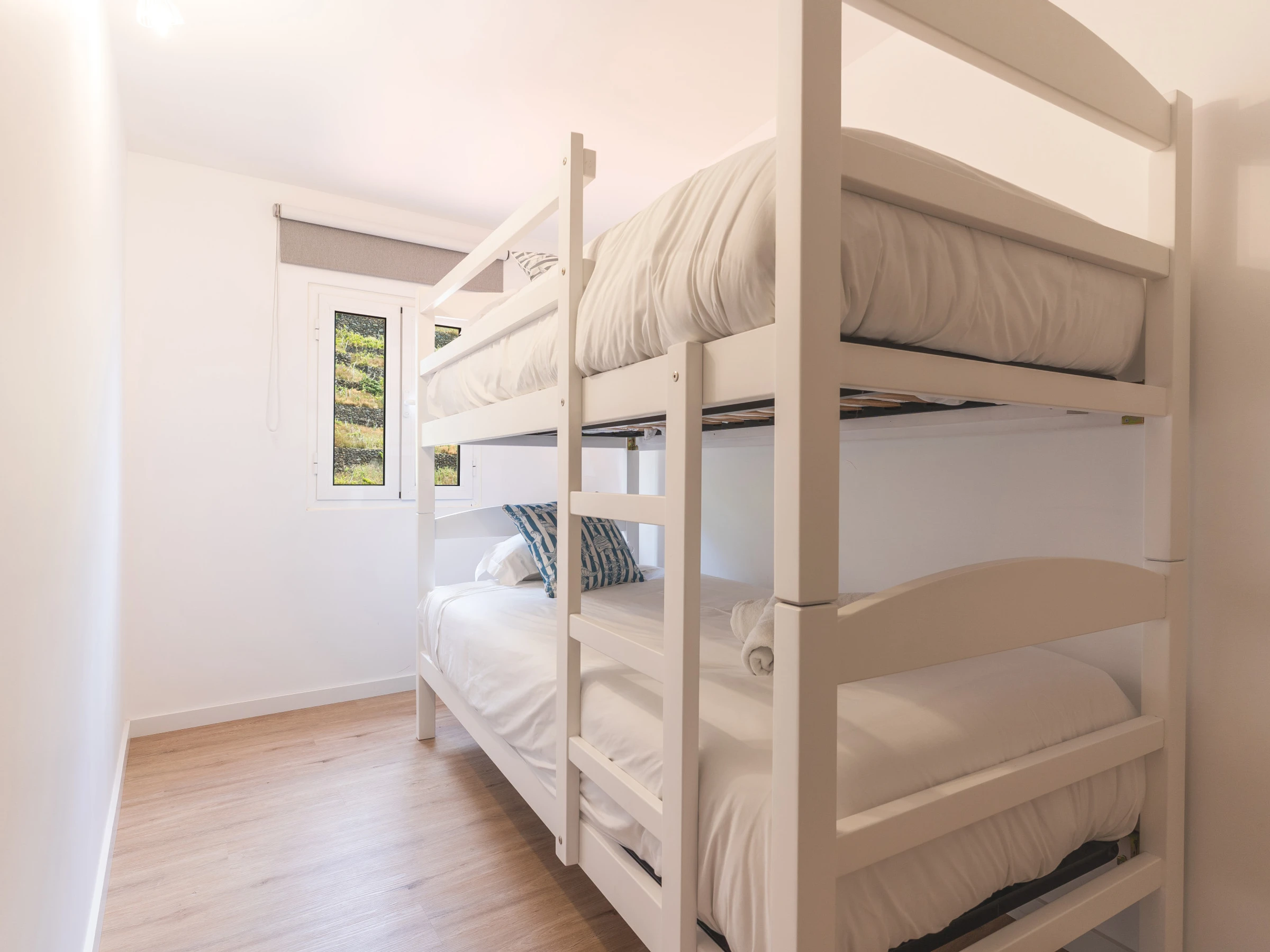 La maison dispose de trois chambres, dont deux avec lits queen-size et une avec lits superposés, ainsi que deux salles de bain modernes avec douche. La cuisine est entièrement équipée avec réfrigérateur, congélateur, four, micro-ondes, plaques de cuisson, couverts, assiettes et ustensiles essentiels pour cuisiner.