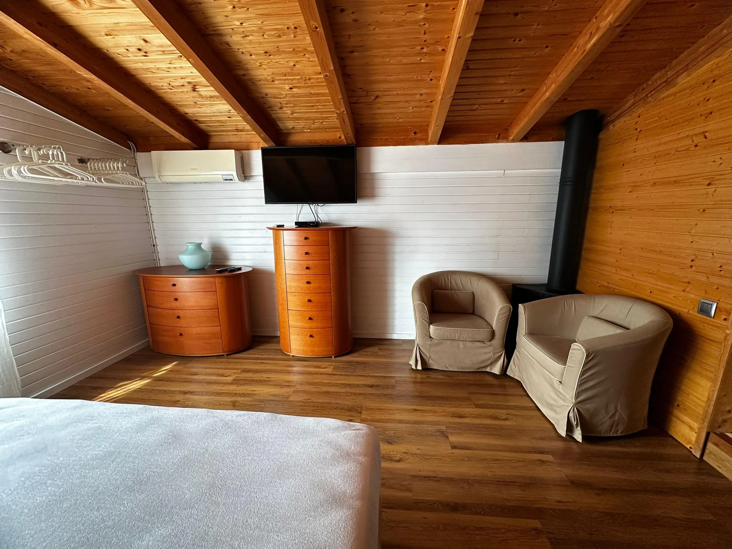 Villa Wood Dreams – Évadez-vous dans cette villa en bois accueillante à Calonge, avec jacuzzi et piscine privée. Située dans le quartier résidentiel Río de Oro, au cœur de la Costa Brava, elle est parfaite pour des vacances inoubliables. Villa Wood Dreams est une maison de vacances entièrement construite en bois, offrant un cadre naturel et confortable pour profiter de la Costa Brava en famille ou entre amis. Espace extérieur La villa dispose d’un grand jardin, d’une piscine privée et d’un espace barbecue avec coin repas couvert pour profiter des repas en plein air. Dans cette même zone se trouve également un jacuzzi avec vue sur la piscine. En montant quelques marches, vous découvrirez un petit espace chill-out en bois avec canapé et voilages légers, idéal pour se détendre tout en admirant la piscine et la montagne. Intérieur de la villa La maison est répartie sur deux étages : * Étage supérieur : une suite double avec salle de bain privée et douche, décorée avec de chaleureux détails en bois. * Rez-de-chaussée : cuisine américaine entièrement équipée avec électroménagers modernes (dont lave-vaisselle et micro-ondes), salle à manger et trois chambres : * Une suite double avec jacuzzi, douche et lavabo, avec accès direct à l’extérieur vers un espace lounge en bois avec coussins. * Deux chambres avec deux lits simples chacune. * Deux salles de bain avec douche, idéales pour une utilisation séparée par chaque chambre. Commodités et services La villa offre la climatisation, des ventilateurs de plafond, le wifi gratuit dans toute la maison et un parking privé. La terrasse et les espaces extérieurs bénéficient d’une vue sur la montagne, créant une atmosphère paisible pour se détendre et profiter du climat méditerranéen. En résumé, Villa Wood Dreams allie le charme d’une construction en bois aux équipements modernes et à un cadre naturel privilégié, en faisant un excellent choix pour des vacances sur la Costa Brava. Villas Cosette : Locations de vacances à Gérone, Playa de Aro et la Costa Brava Villas Cosette propose une sélection exclusive de logements de vacances sur la Costa Brava, allant de maisons et villas spectaculaires à des studios et lofts de grande qualité. Nos appartements de vacances sont conçus pour vous offrir les vacances que vous méritez, au milieu d'une beauté naturelle et d'un riche patrimoine. Playa de Aro est l'une des zones les plus appréciées pour le tourisme de vacances, où chaque moment passé au bord de la mer est tout simplement irremplaçable. C'est la destination idéale pour se déconnecter de la routine et commencer à profiter de l'expérience. Avec Villas Cosette, vous avez la garantie d'un service de haute qualité et d'un engagement à rendre votre séjour aussi confortable et mémorable que possible. Nous souhaitons que vous passiez des vacances parfaites et que vous vous immergiez dans la magie de la Costa Brava. Informations supplémentaires sur l'hébergement le jour de l'enregistrement à l'arrivée, le paiement suivant sera demandé : (il est recommandé de le payer avant votre arrivée) * Dépôt de garantie obligatoire de 1.000,00 € à restituer 5 jours après le départ, après avoir vérifié que tout est en ordre. * Supplément ménage obligatoire : 300,00€. * Taxe de séjour Obligatoire : 1€ par personne de plus de 16 ans. * Les serviettes et les draps sont fournis gratuitement.