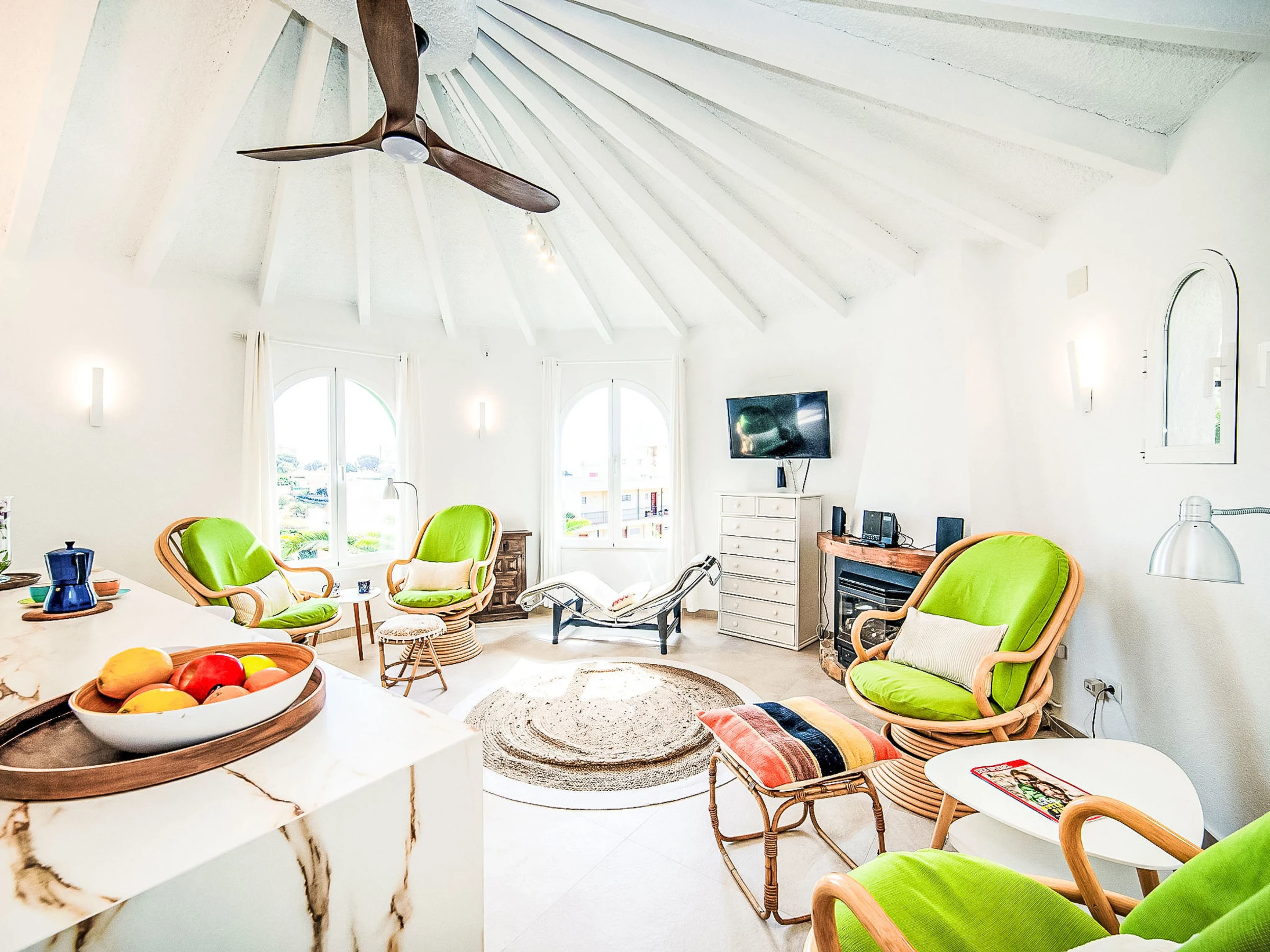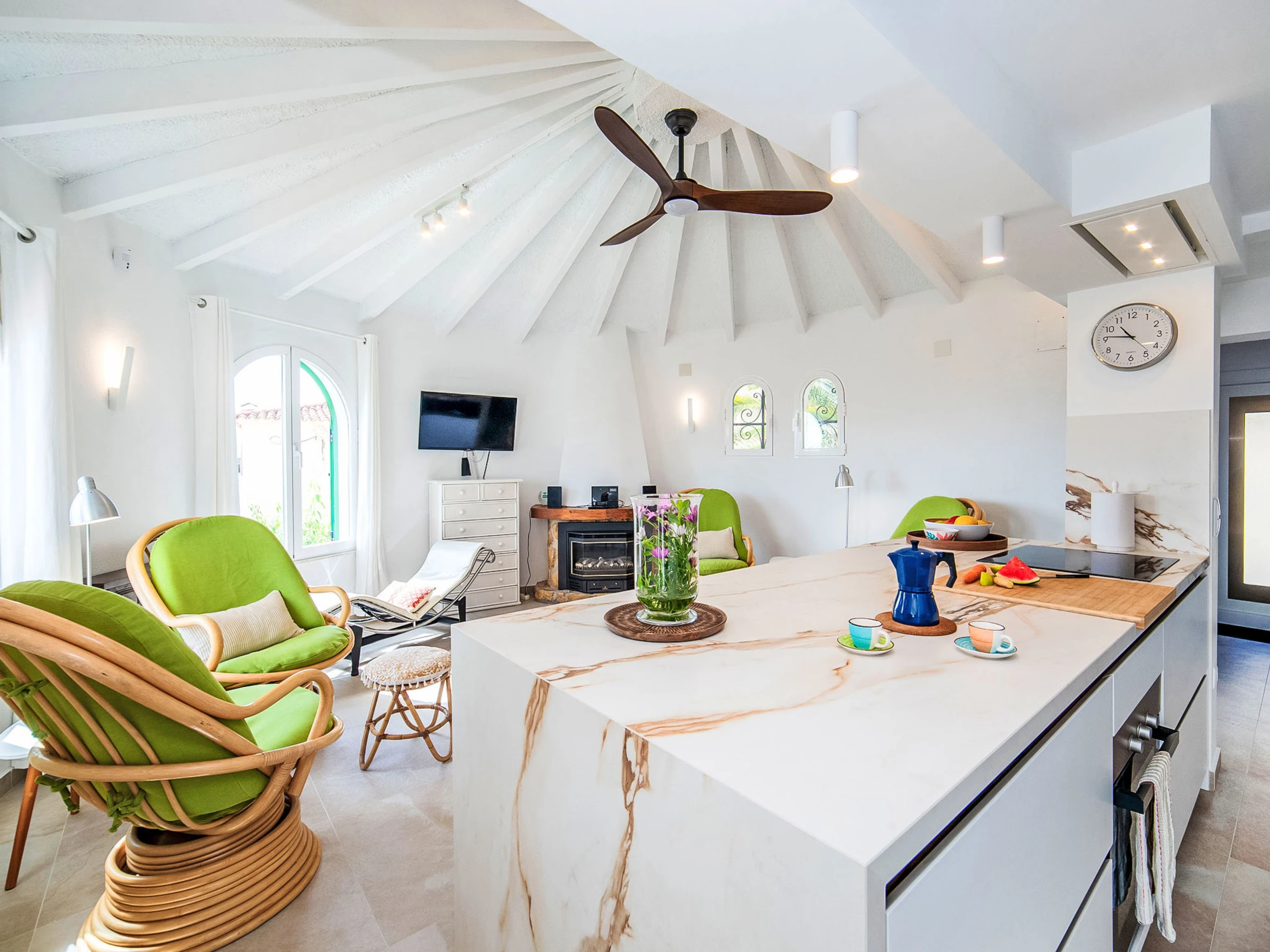 "Villa Sol", maison 6 pièces 150 m2 sur 2 niveaux. Spacieux, aménagement fonctionnel et confortable: séjour/salle à manger 40 m2 avec cheminée, TV (satellite), air-conditionné, ventilateur et chauffage à air chaud. Sortie sur la véranda. 1 chambre avec 2 lits (90 cm, longueur 190 cm), air-conditionné et chauffage à air chaud. 1 chambre avec 1 grand-lit (160 cm, longueur 200 cm), air-conditionné et chauffage à air chaud. Cuisine (4 plaques de cuisson, four, lave-vaisselle, micro-ondes, cafetière électrique, Capsules pour machine à café (Nespresso) (NON INCLUSES)). Bain/douche. Chauffage électrique. Possibilité de chauffage uniquement du 01.11. au 30.04, Énergie solaire. À l'étage inférieur: (escalier extérieur) séjour/salle à manger avec air-conditionné et chauffage à air chaud. Sortie sur la terrasse. 1 chambre avec 2 lits (90 cm, longueur 190 cm), air-conditionné et chauffage à air chaud. 1 chambre avec 1 lit (90 cm, longueur 190 cm), ventilateur. Petite cuisine ouverte (four, 4 plaques vitrocéramiques). Douche/WC. Chauffage électrique. Possibilité de chauffage uniquement du 01.11. au 30.04, Énergie solaire. Meubles de terrasse, barbecue. Vue partielle sur la mer et les montagnes. A disposition: lave-linge, chaise haute pour enfant, lit bébé jusqu'à 2 ans. Internet (Connexion WIFI, gratuit). Place de parking, garage sur le terrain près de la maison, hauteur 200 cm, largeur 290 cm. Adapté(e) aux familles. [hidden] // Reg. Nr.: ESFCTU00000302900026144700000000000000000[hidden]8