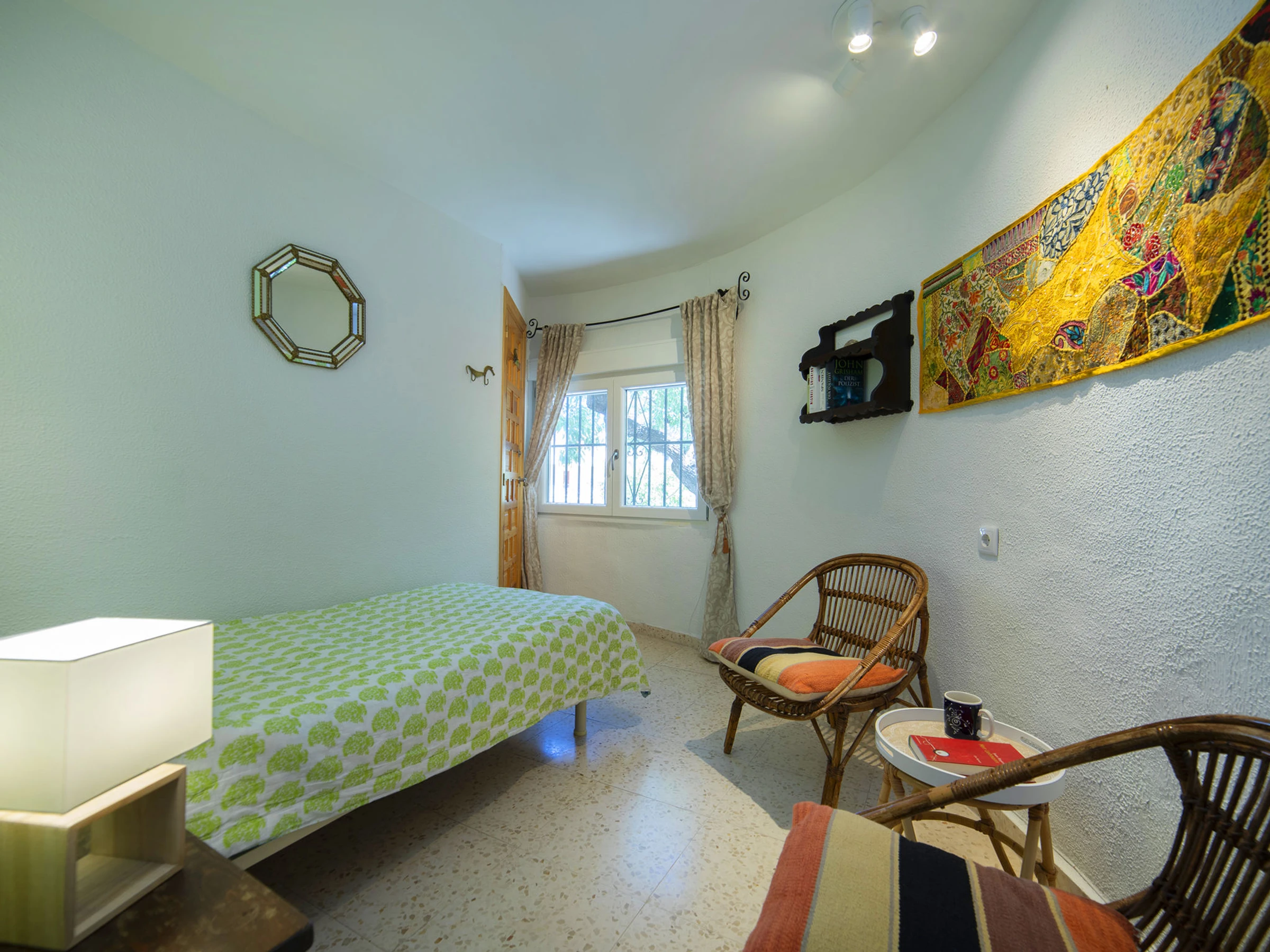 Manzanera: Maison accueillante, confortable "Villa Sol", de 2 étages. Dans la localité, à 2.2 km du centre de Calpe, dans l'arrondissement Manzanera, situation tranquille, ensoleillée quartier résidentiel, zone avec peu de trafic, à 1.1 km de la mer, à 1.4 km de la plage. A usage privé: terrain 615 m2 (clôturé), jardin entretenu avec fleurs et arbres, piscine (2 x 6 m, profondeur 120 - 155 cm, disponibilité saisonnière: [hidden] - [hidden] avec marches intérieures. Piscine de forme irrégulière. Douche extérieure, terrasse, barbecue. Infrastructures de la Maison: lave-linge. Place de parking près de la maison, garage individuel près de la maison. Magasins 1.5 km, magasin d'alimentation 1.5 km, supermarché 1.5 km, restaurant 1.2 km, boulangerie 750 m, centre à 18 minutes à pieds, arrêt de bus 700 m, plage de sable "Playa Puerto Blanco" 1.2 km (petit[e]), plage de rochers "Cala Manzanera" 1.1 km. Port plaisance 4.6 km, marina 4.6 km, terrain de golf (9 trous) 11.5 km, ecole de surf 4.6 km, ecole de voile 4.6 km, tennis 2.1 km. Attractions à proximité: Aqualandia, Mundomar, Terra Mítica, Terra Natura, Benidorm Palace (Benidorm). Région de randonnées: Peñon d'Ifach 4.8 km. Veuillez noter: équipement pour bébés (inclus).