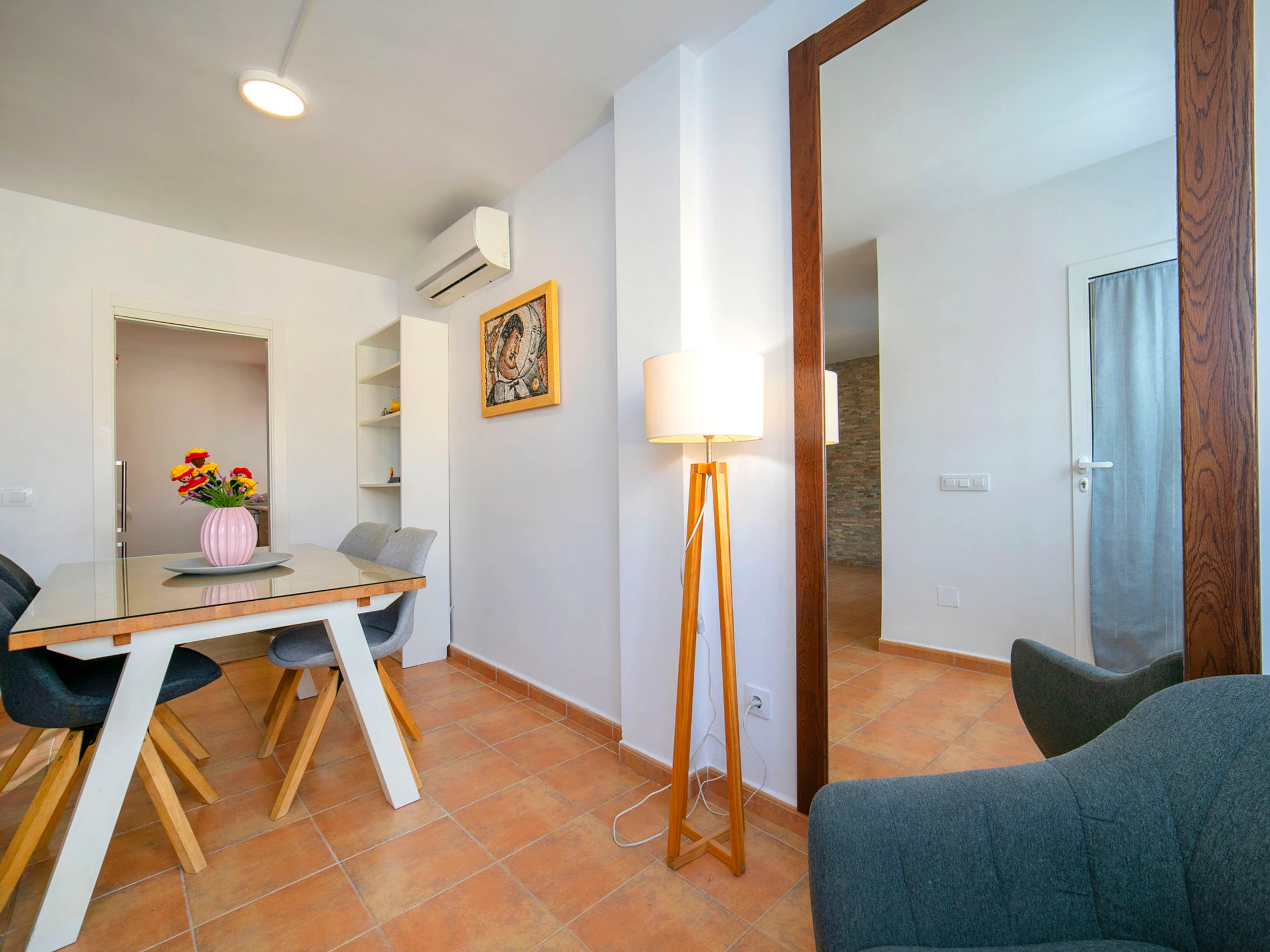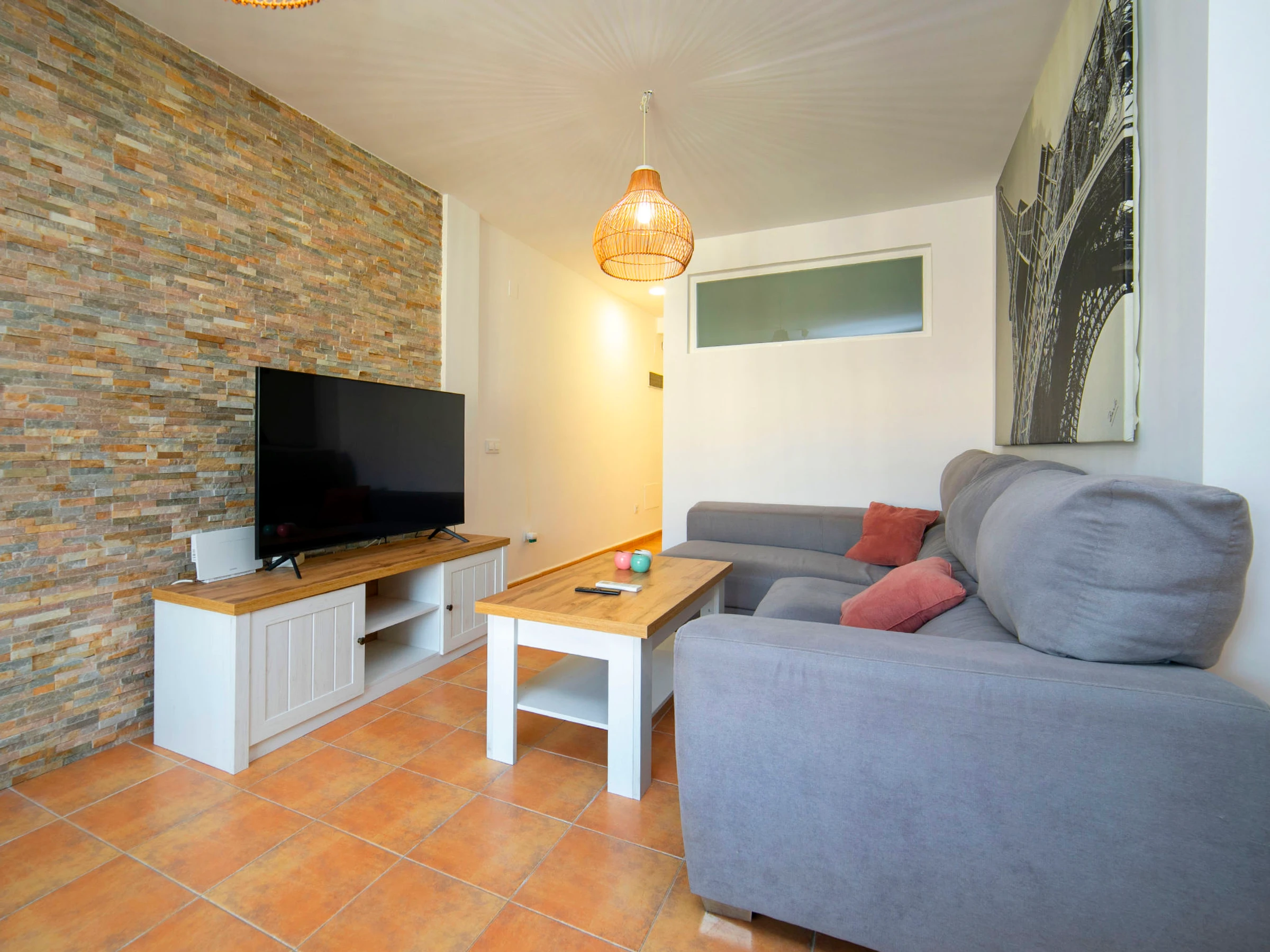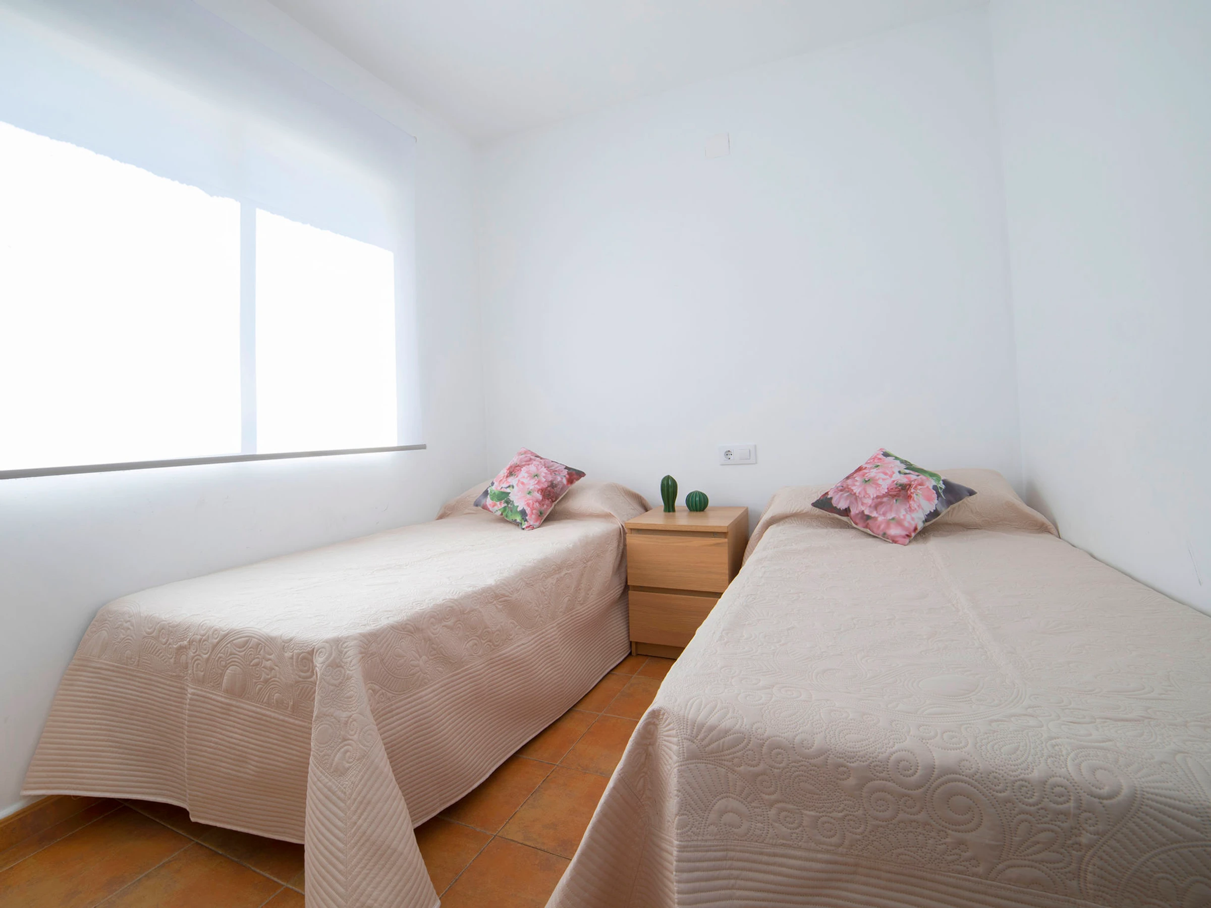 "Pueblo Casanova", apt 3 pièces 87 m2, en sous-sol. Spacieux et clair, aménagement confortable et agréable: séjour/salle à manger avec Télévision numérique, air-conditionné et chauffage à air chaud. Sortie sur la terrasse. 1 chambre avec 1 grand-lit (1 x 160 cm, longueur 200 cm), air-conditionné et chauffage à air chaud. 1 chambre avec 2 lits (90 cm, longueur 200 cm). Cuisine (four, lave-vaisselle, grille-pain, bouilloire électrique, micro-ondes, cafetière électrique). Douche/WC. Belle vue sur la localité. A disposition: lave-linge, fer à repasser, sèche-cheveux. Internet (Connexion WIFI, gratuit). Place de parking (couvert). Adapté(e) aux familles. 1 animal/ chien de petite taille autorisé. [hidden] // Reg. Nr.: ESFCTU0000030290005600380000000000000CV-VUT0487180-A3