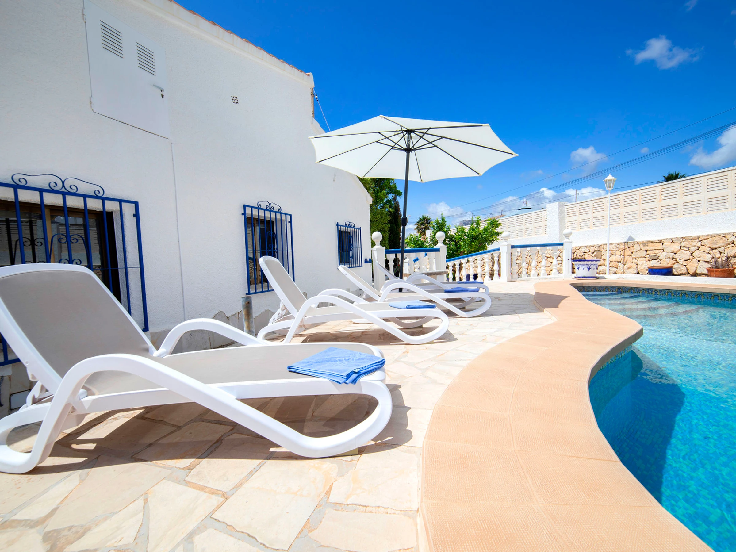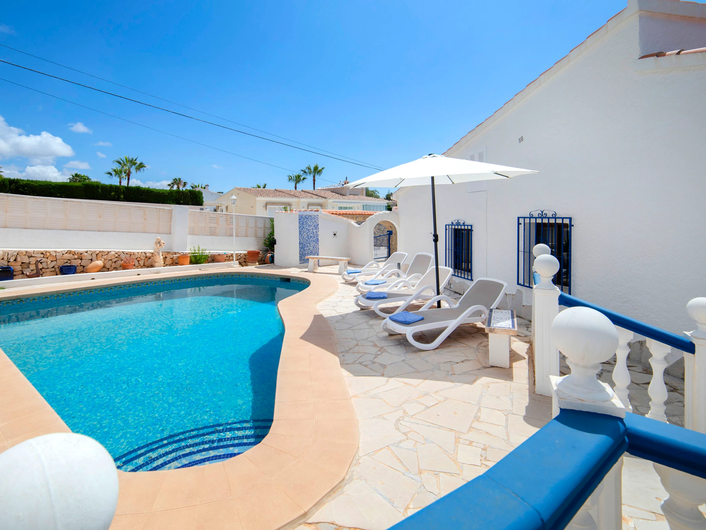 Cometa I à 2 km de Calpe: Villa accueillante "Irene". Dans la localité, à 3 km du centre de Calpe, dans l'arrondissement Partida Cometa I, situation ensoleillée, à 2.2 km de la mer, à 2.2 km de la plage. A usage privé: terrain 607 m2 (clôturé), piscine en forme d’haricot (4 x 6 m, profondeur 150 - 180 cm, disponibilité saisonnière: [hidden] - [hidden] avec marches intérieures. Douche extérieure, place de parking (pour 2 voitures, couvert). Supermarché 1.8 km, restaurant 1.4 km, bar 1.4 km, arrêt de bus "Parada Bus" 850 m, plage de sable "Playa de La Fossa" 2.2 km. Port plaisance 3.3 km, marina 3.3 km, ecole de voile 3.3 km. Attractions à proximité: Aqualandia 25 km, Terra Mitica 35 km. Région de randonnées: Salinas de Calpe 2 km, Peñón d'Ifach 2 km.