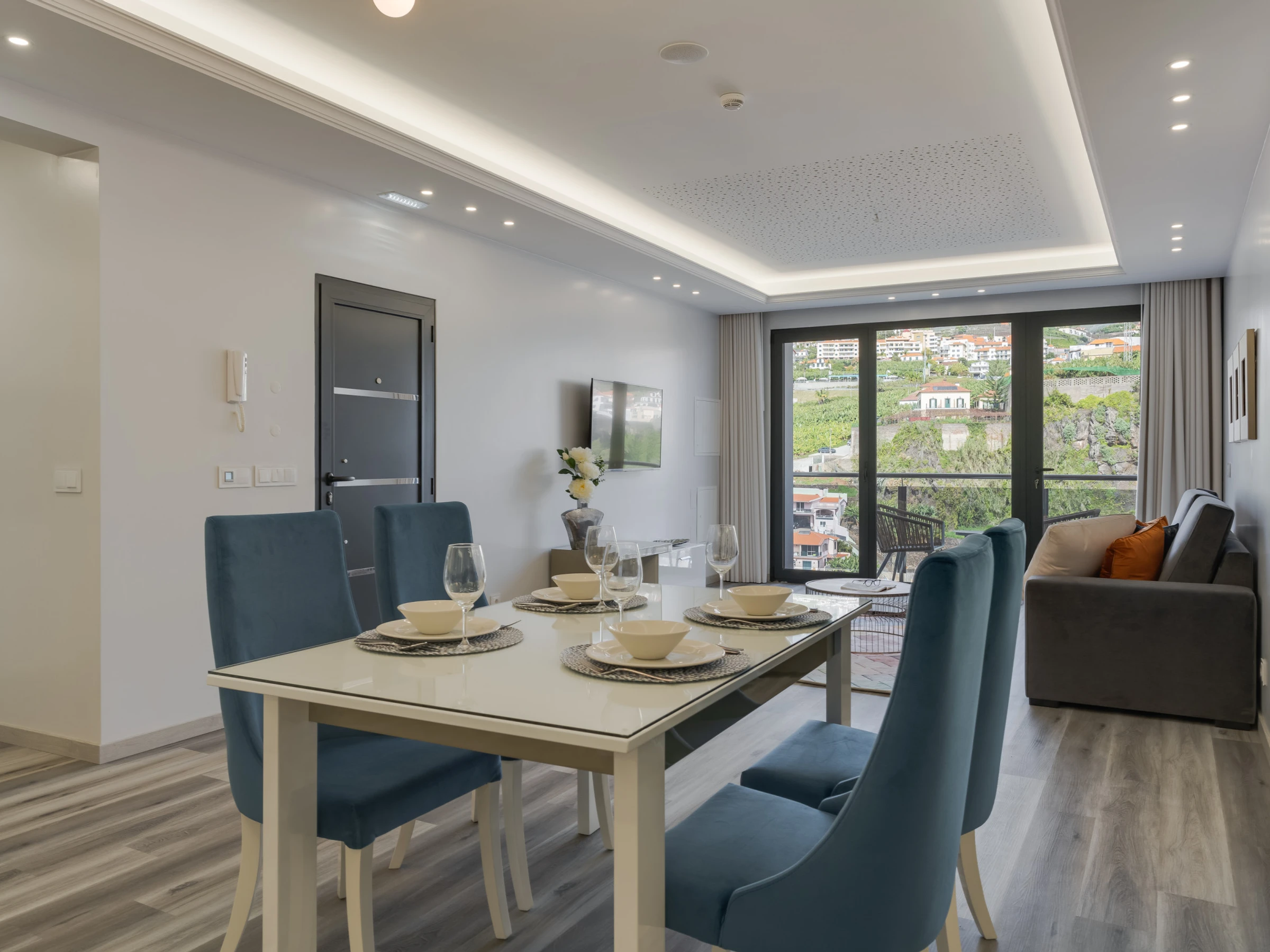 L'intérieur est conçu pour la détente et la commodité, avec une salle de bains bien équipée avec douche et un balcon offrant une vue imprenable sur le paysage montagneux de Madère. La cuisine est entièrement équipée avec des appareils modernes, notamment un réfrigérateur, un congélateur, un four, un four micro-ondes, une plaque de cuisson, un lave-vaisselle et tous les ustensiles de cuisine nécessaires, vous invitant à savourer le plaisir des repas faits maison.